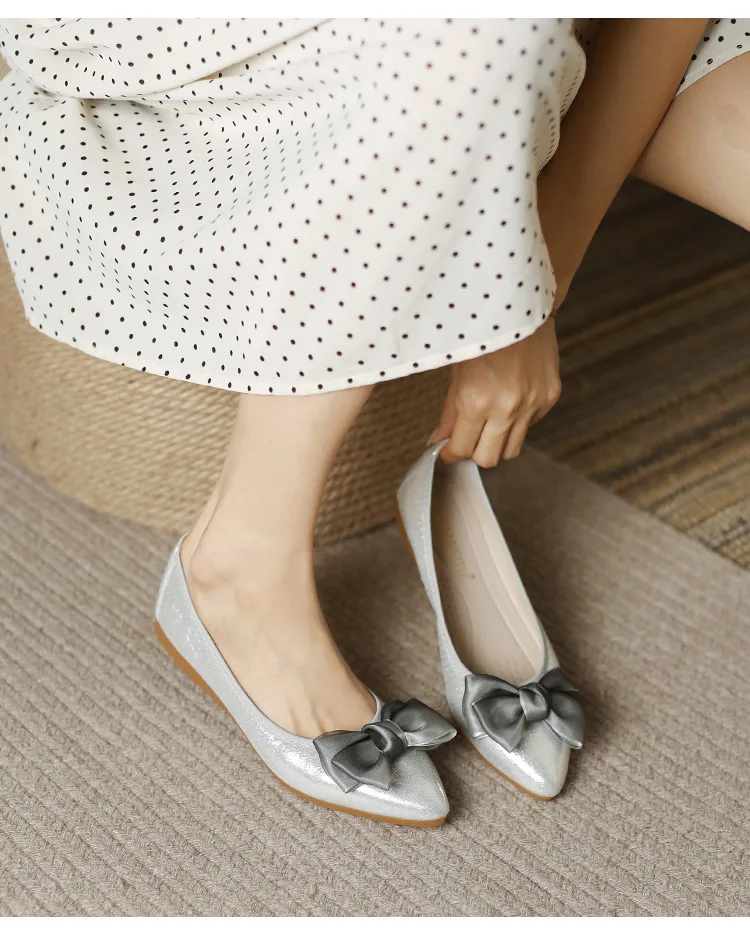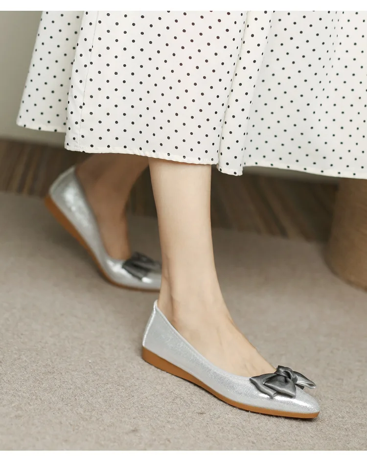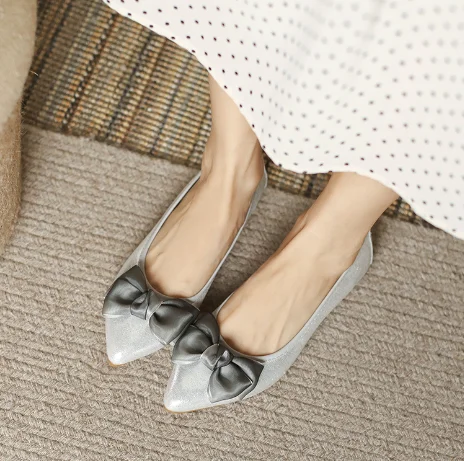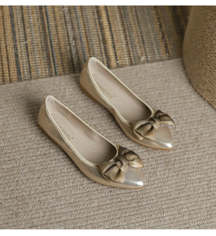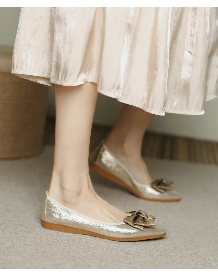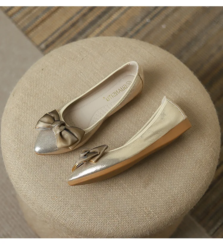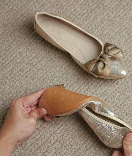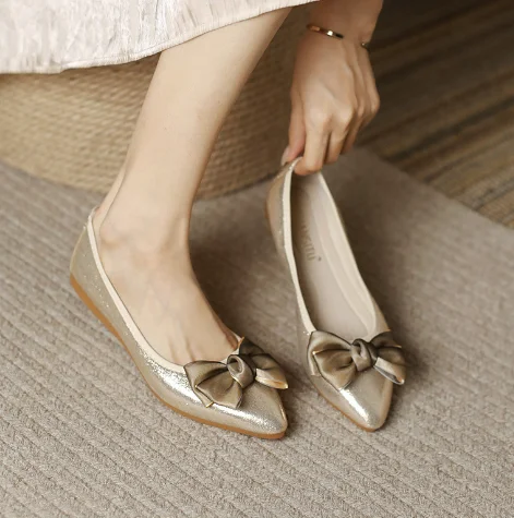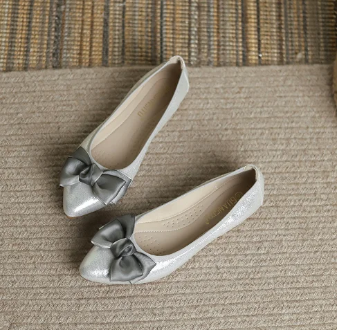 MQTIME - Breathable Air Mesh Flat Shoes Women Gold Silver Loafers Low Price Big Bow Ballet Slip-On Oversize 45-32 22cm Pointy Mouth