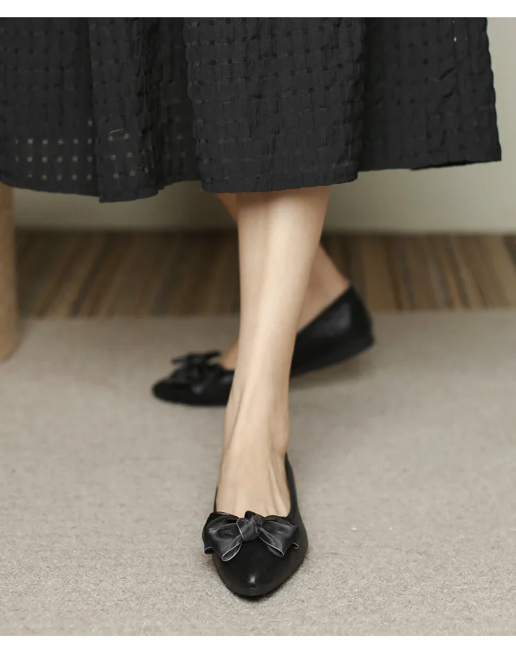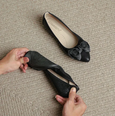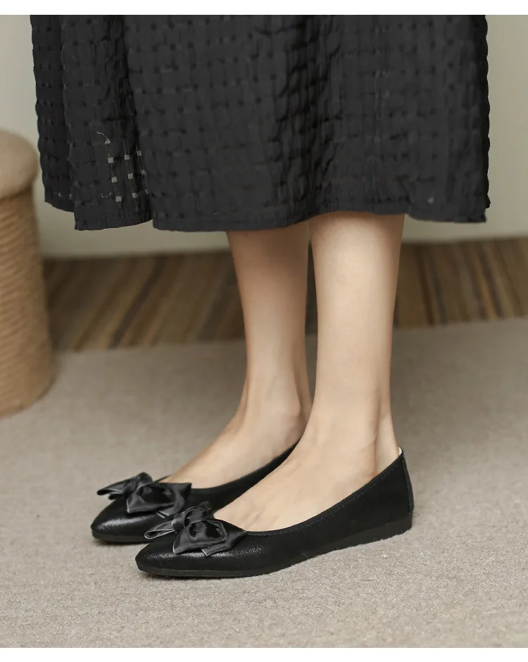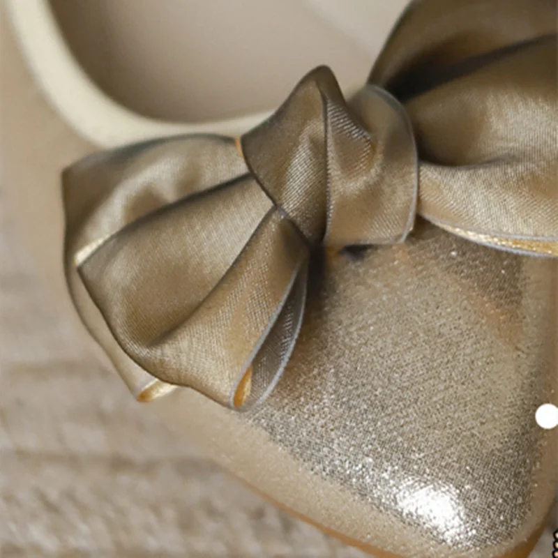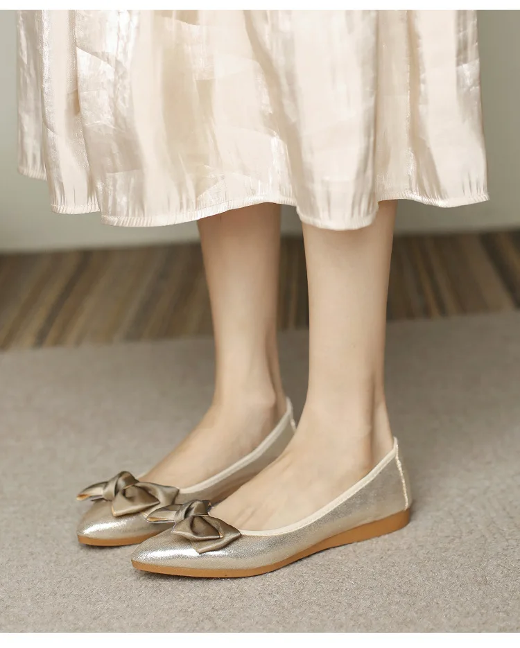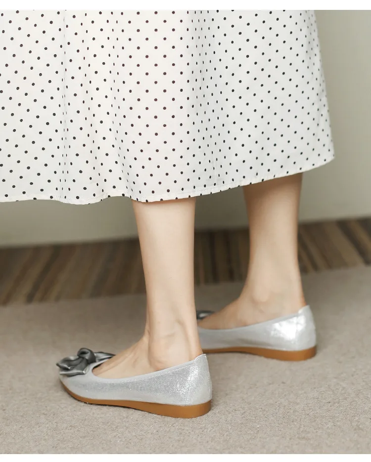 MQTIME - Breathable Air Mesh Flat Shoes Women Gold Silver Loafers Low Price Big Bow Ballet Slip-On Oversize 45-32 22cm Pointy Mouth
