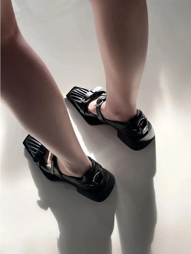 MQTIME - Dark black sweet cool style niche design sense, personalized leather shoes, thick heels, women's spring and autumn Mary Jane sho