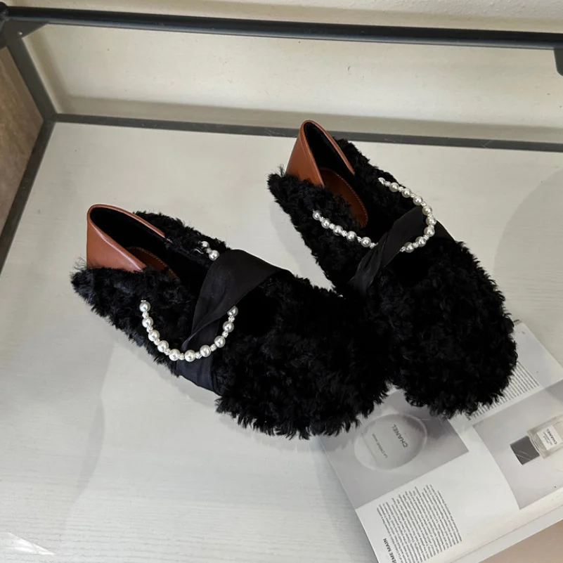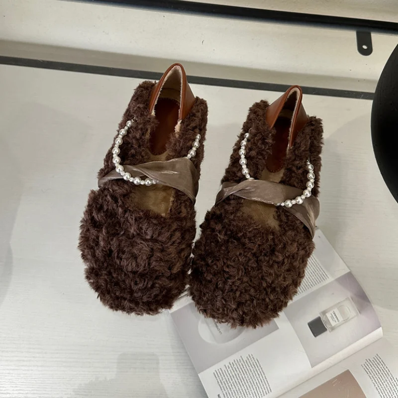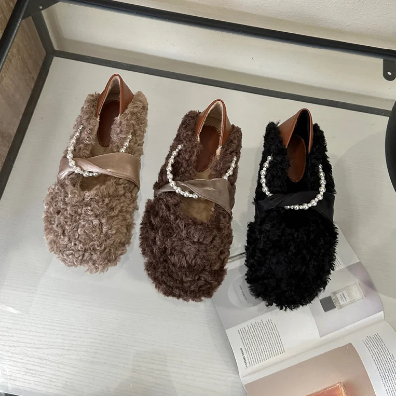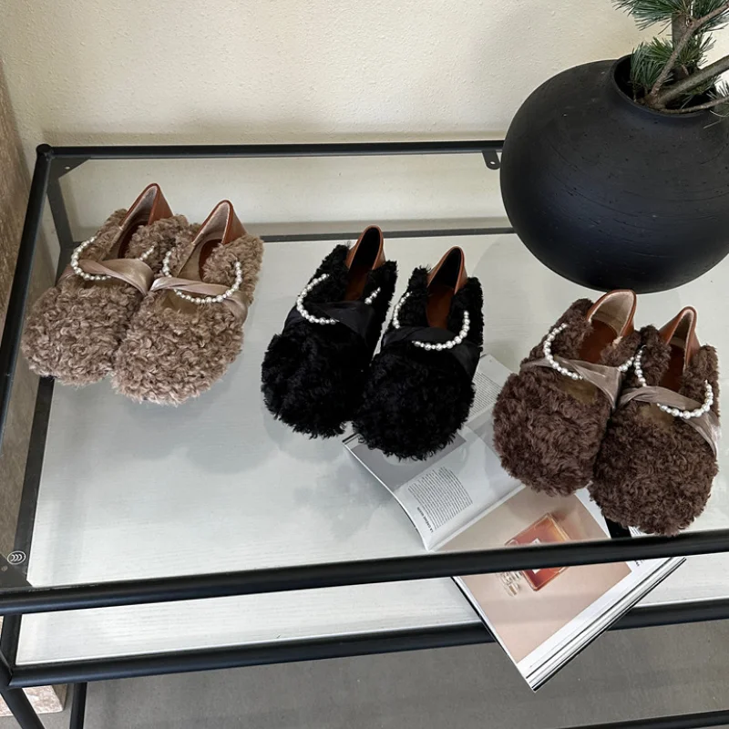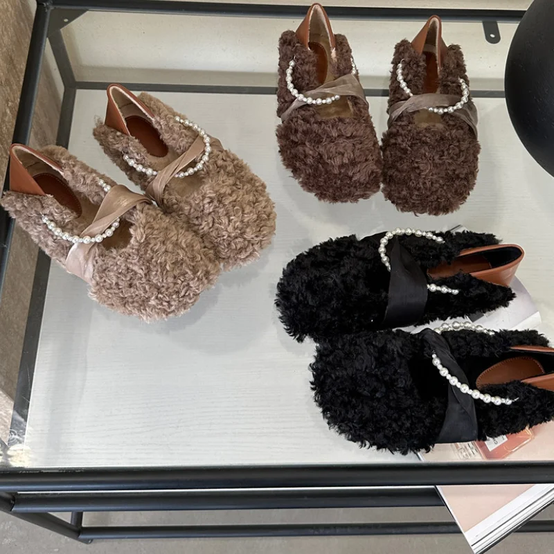 MQTIME - Designer Lambwool Moccasins Shoes Femme Winter Warm Cotton Shoes Loafers Comfy Curly Sheep Fur Flats Ballets Woman
