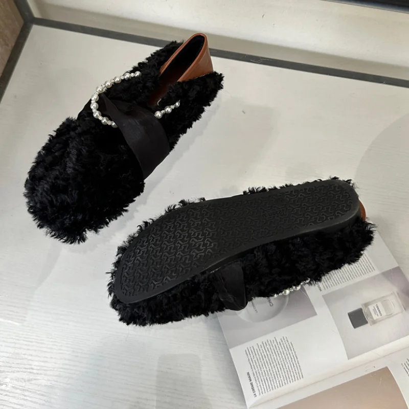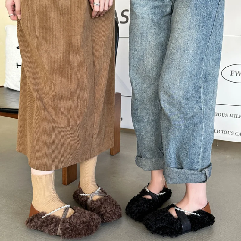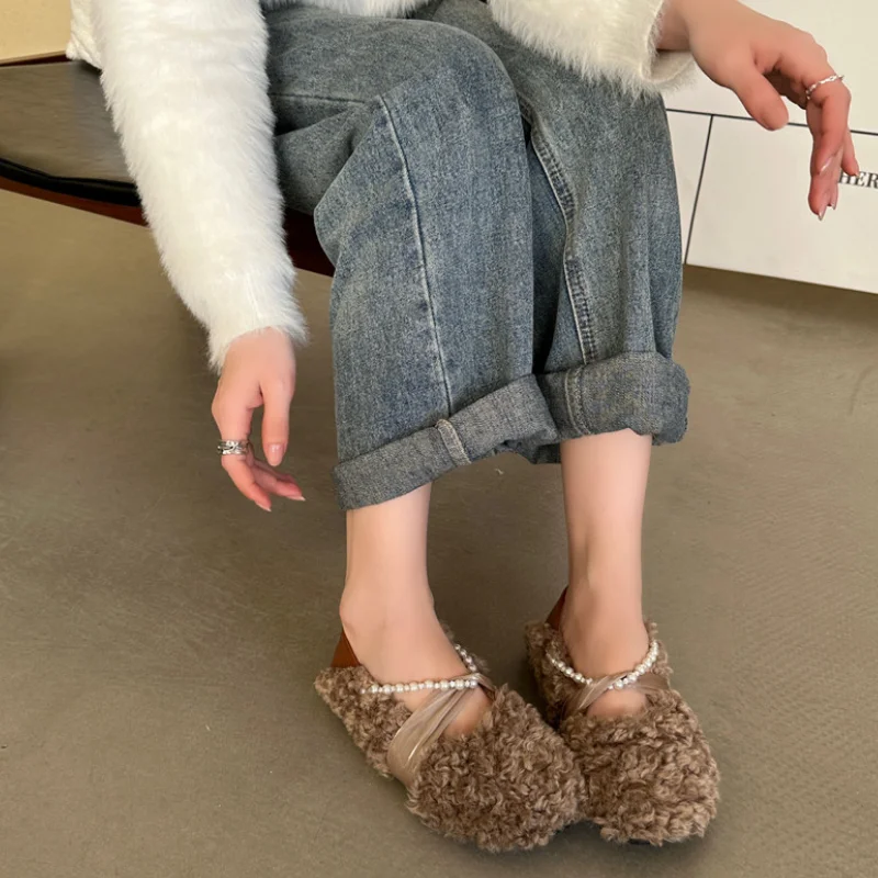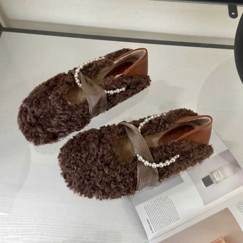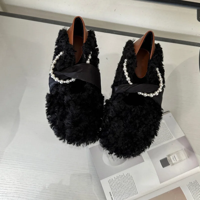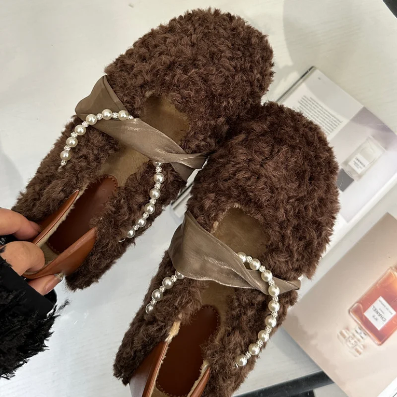 MQTIME - Designer Lambwool Moccasins Shoes Femme Winter Warm Cotton Shoes Loafers Comfy Curly Sheep Fur Flats Ballets Woman