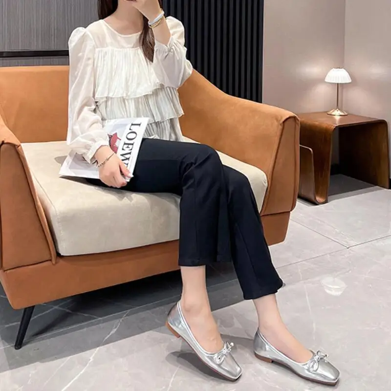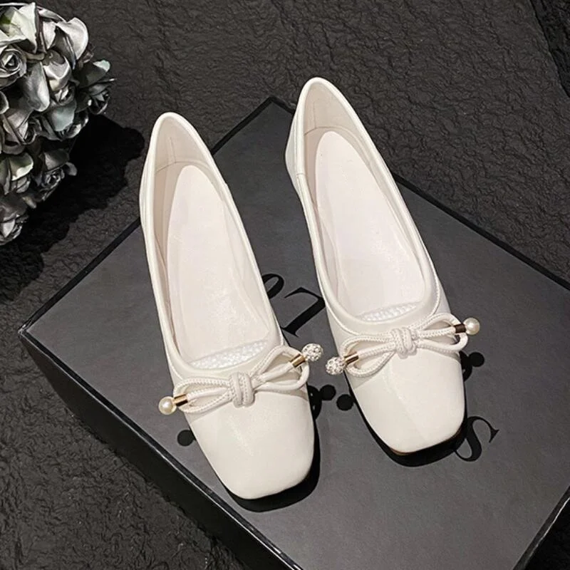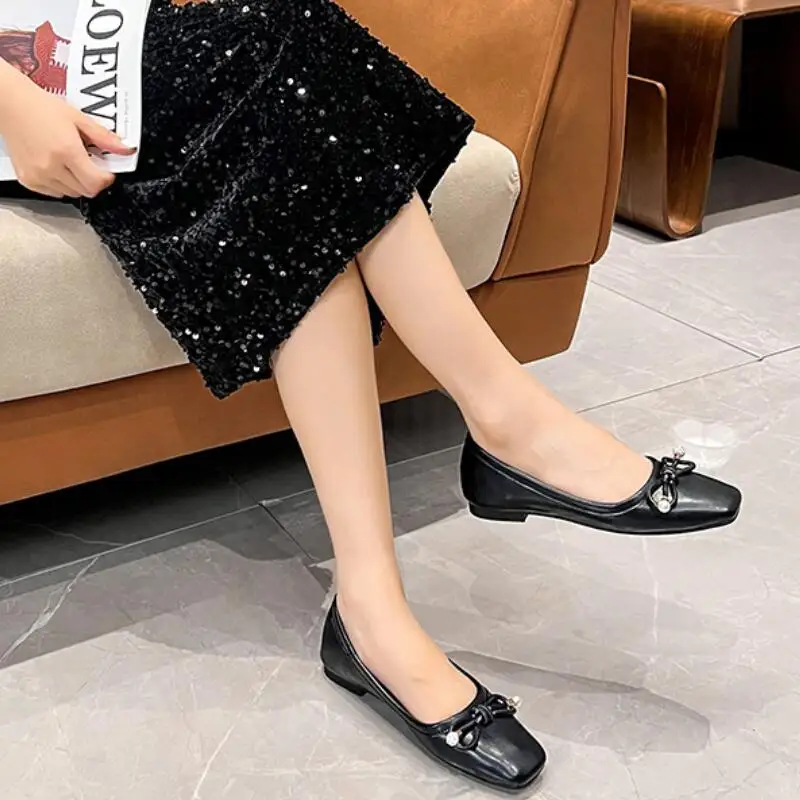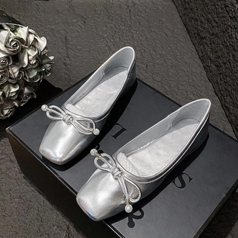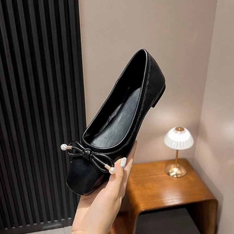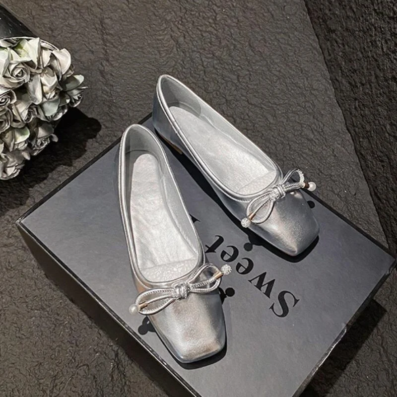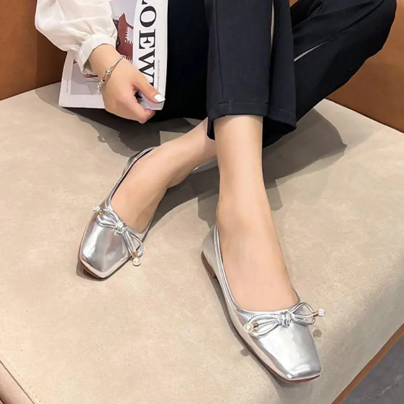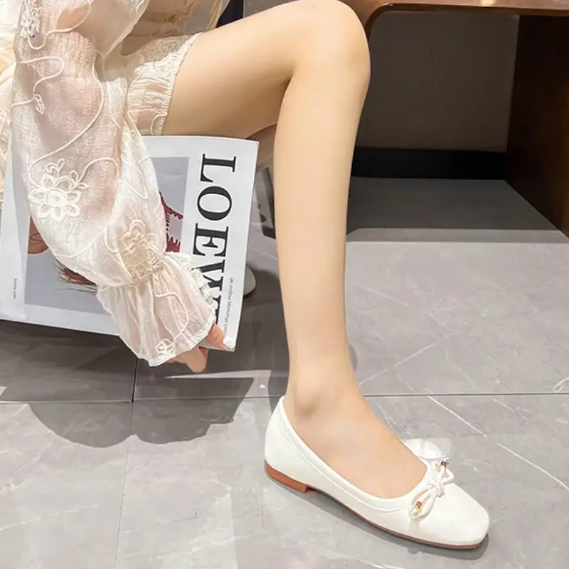 MQTIME - Fashion Bowknot Flats Shoes Woman Microfiber Leather Comfy Square Toe Slippers Soft Sole Loafers Ladies Ballerina Moccasins 2024