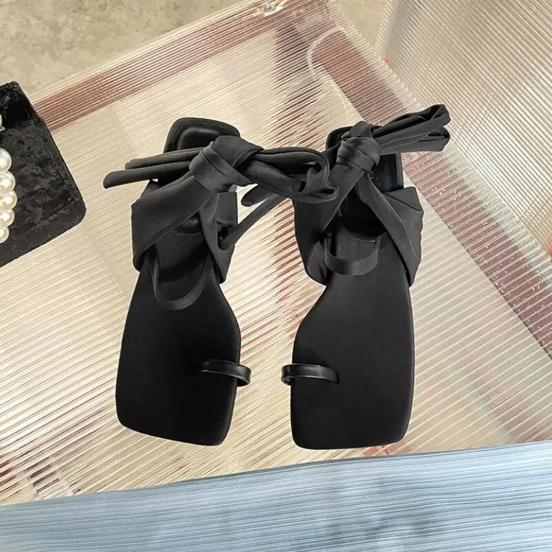 MQTIME - Fashion Rome Sandals Women Summer Lace Up Cross-Tied Stiletto High Heels Peep Toe Shoes Female Square Heel Sandal Zapatos Mujer