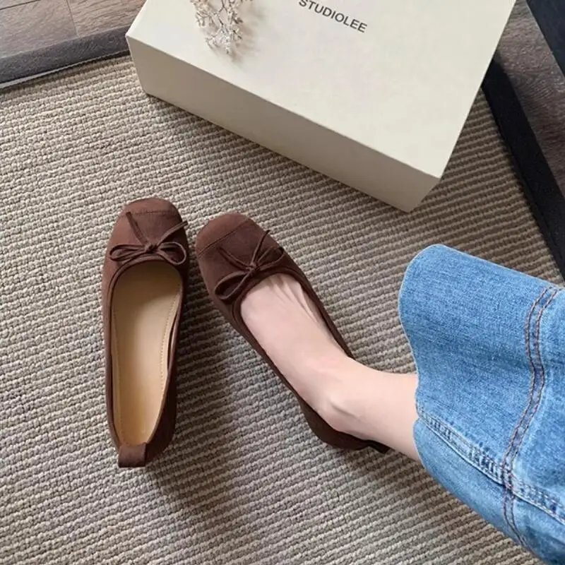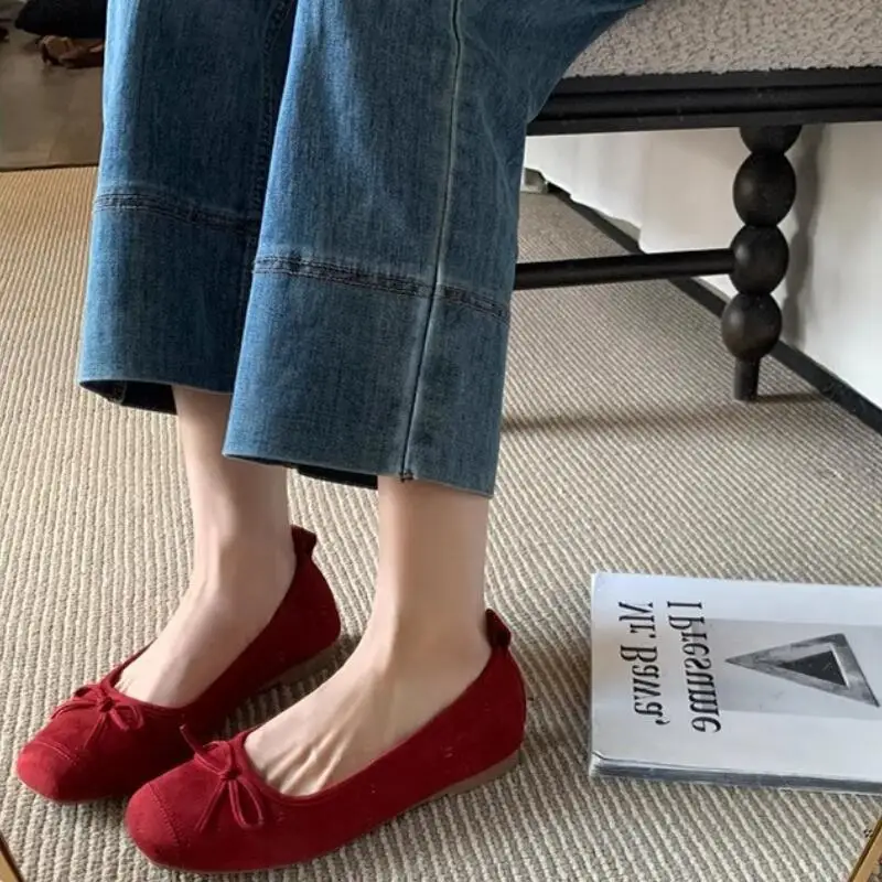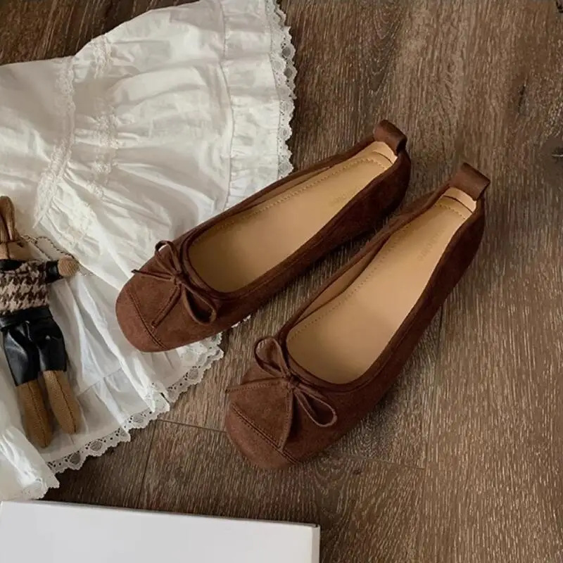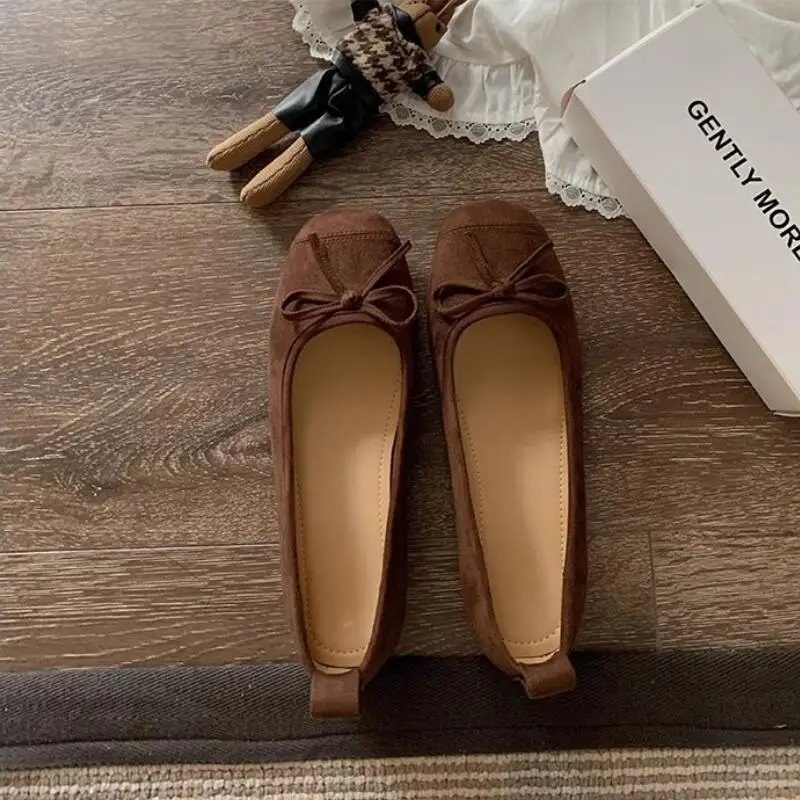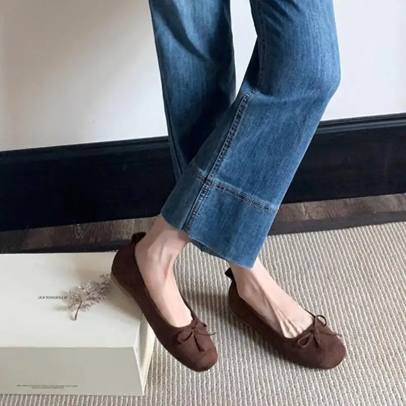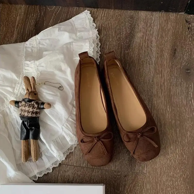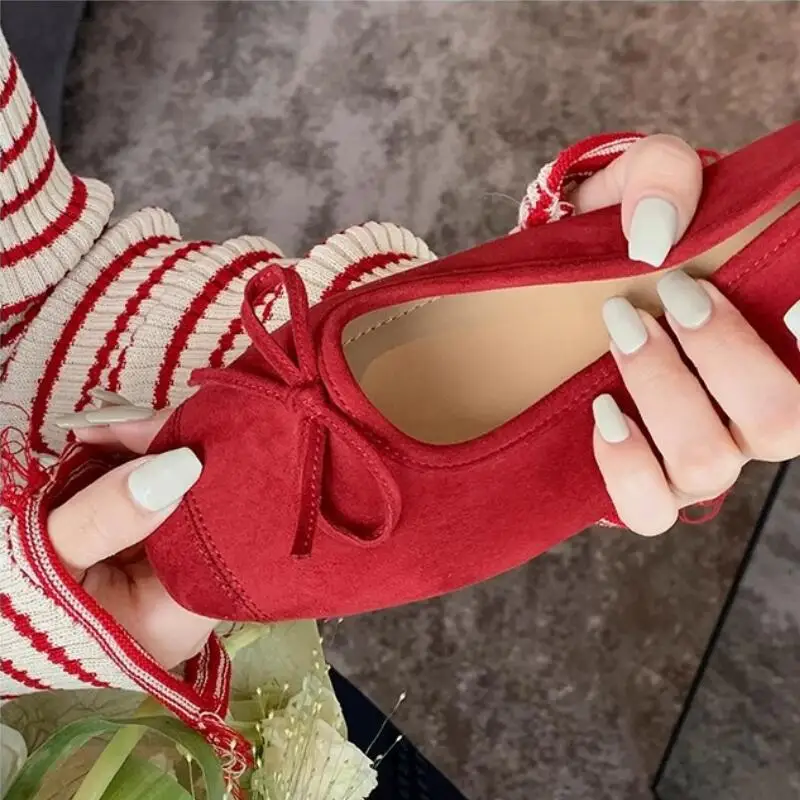 MQTIME - New Autumn Women Ballet Flat Shoes Fashion Suede Shallow Butterfly-Knot Ladies Outdoor Comfort Soft Sole Mary Jane Shoes