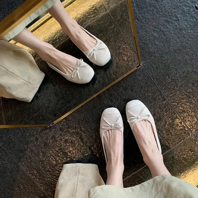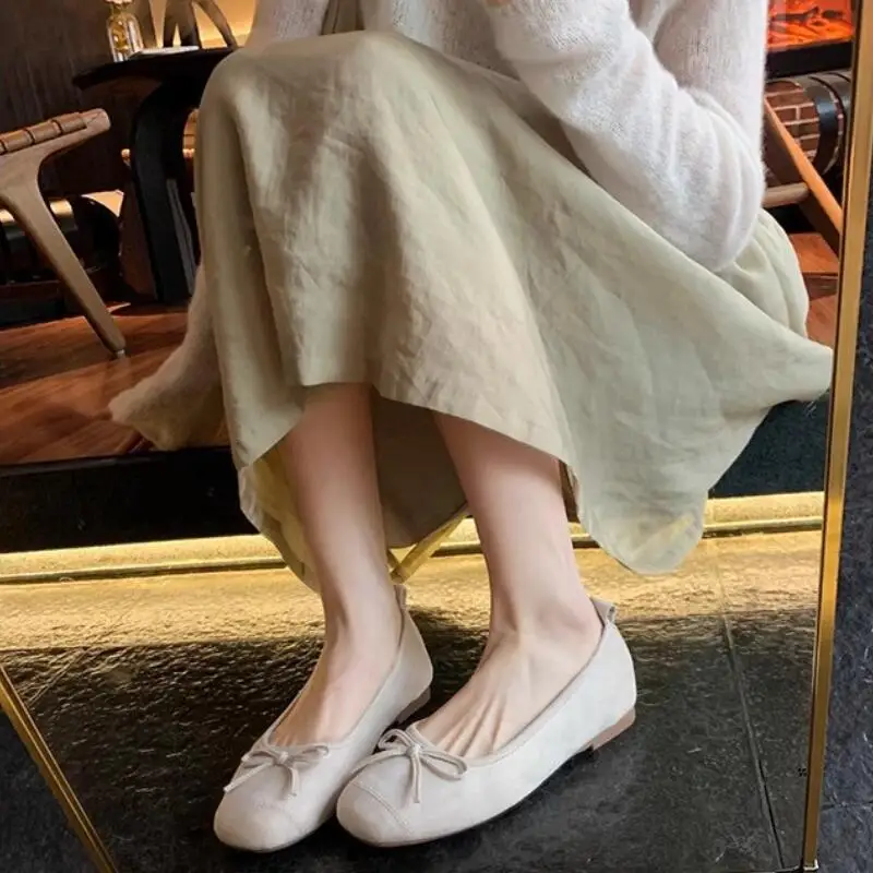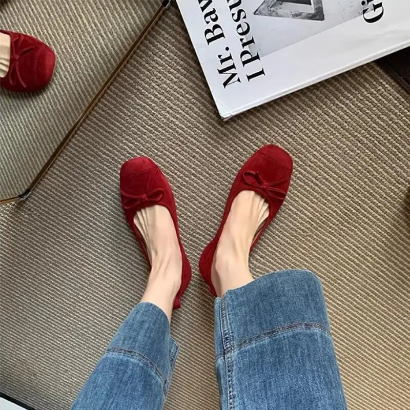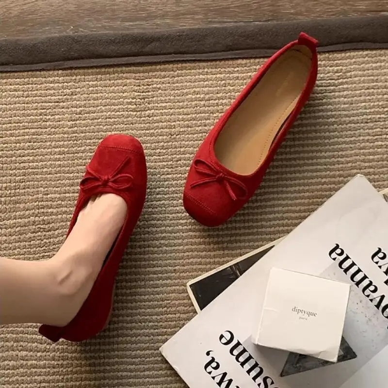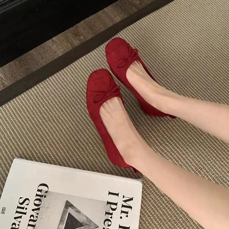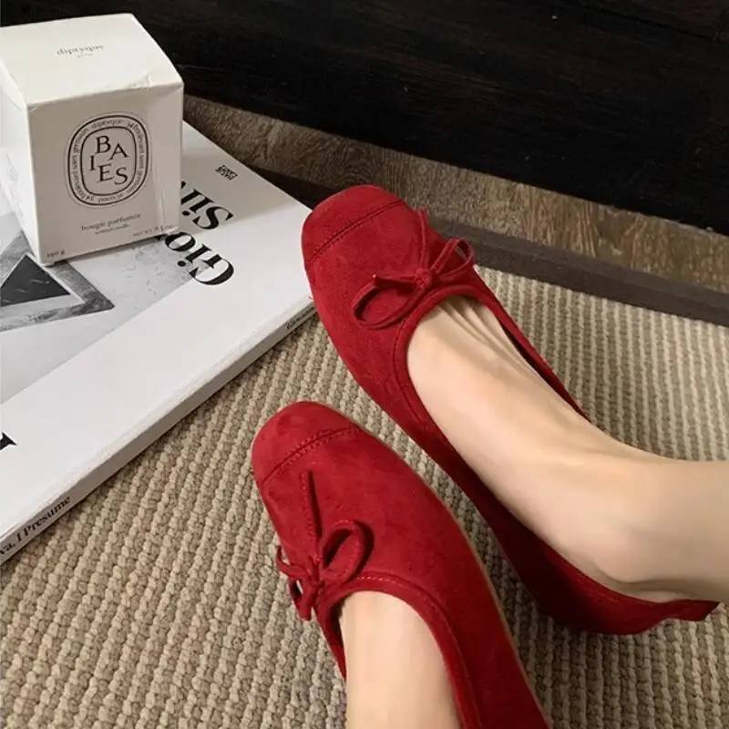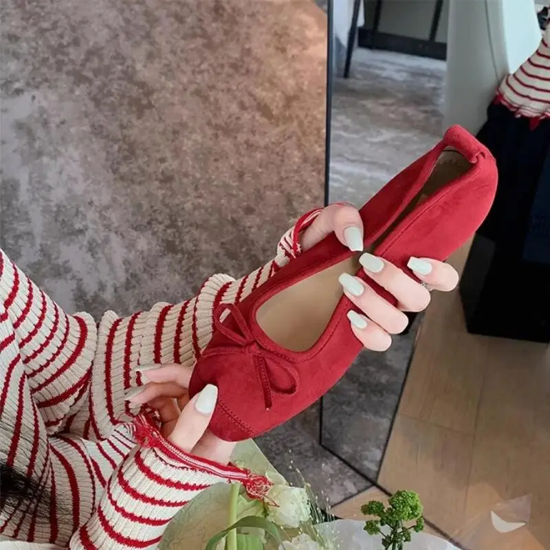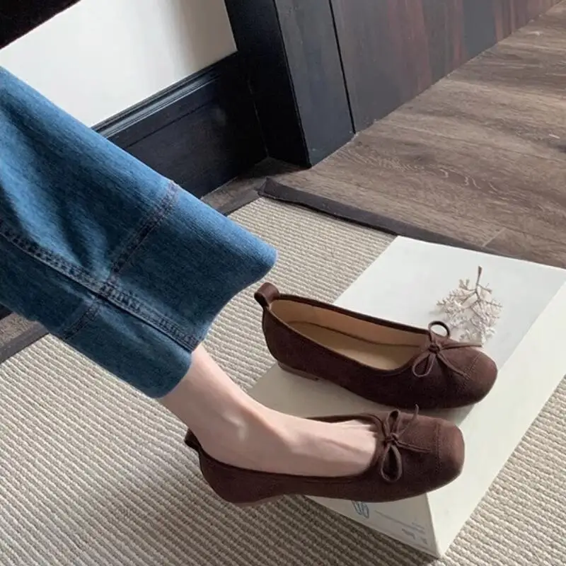 MQTIME - New Autumn Women Ballet Flat Shoes Fashion Suede Shallow Butterfly-Knot Ladies Outdoor Comfort Soft Sole Mary Jane Shoes