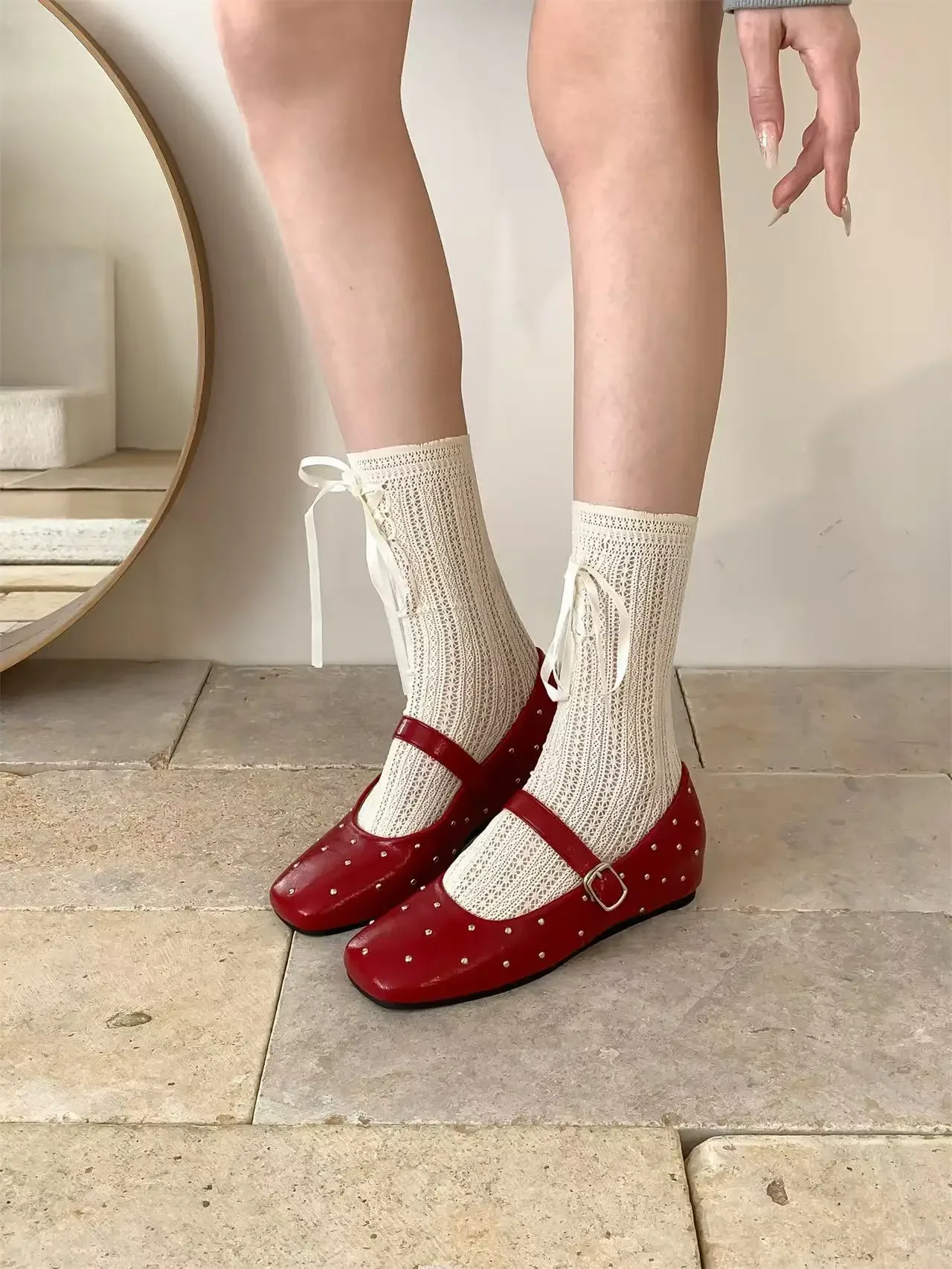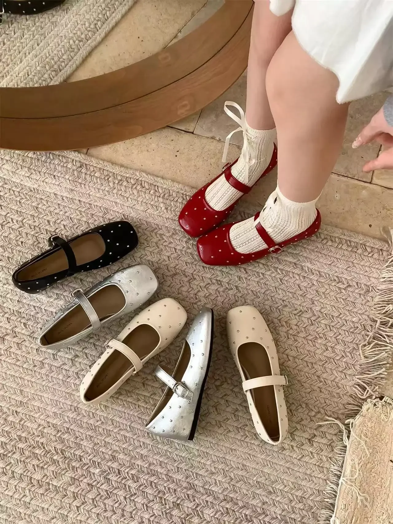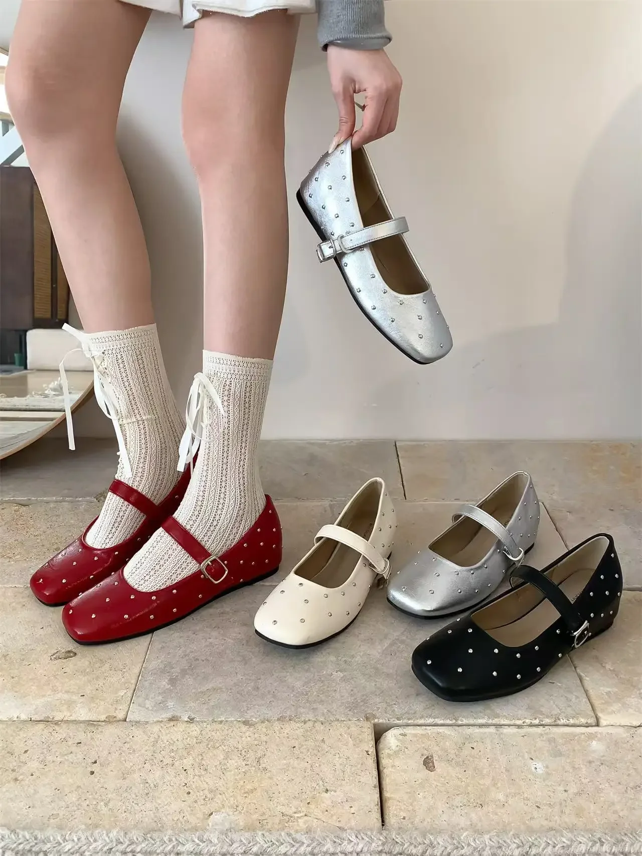 MQTIME - New Spring Women Pumps Round Toe Low Heel Shoes Leather Shoes for Women rivet Buckle Strap Mary Janes Ladies Shoes