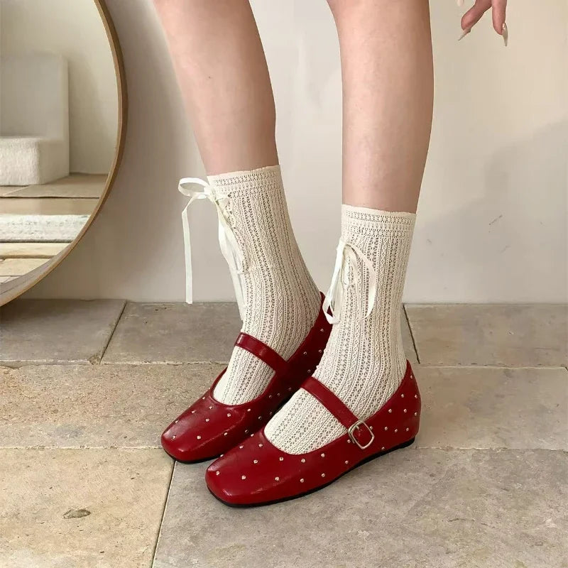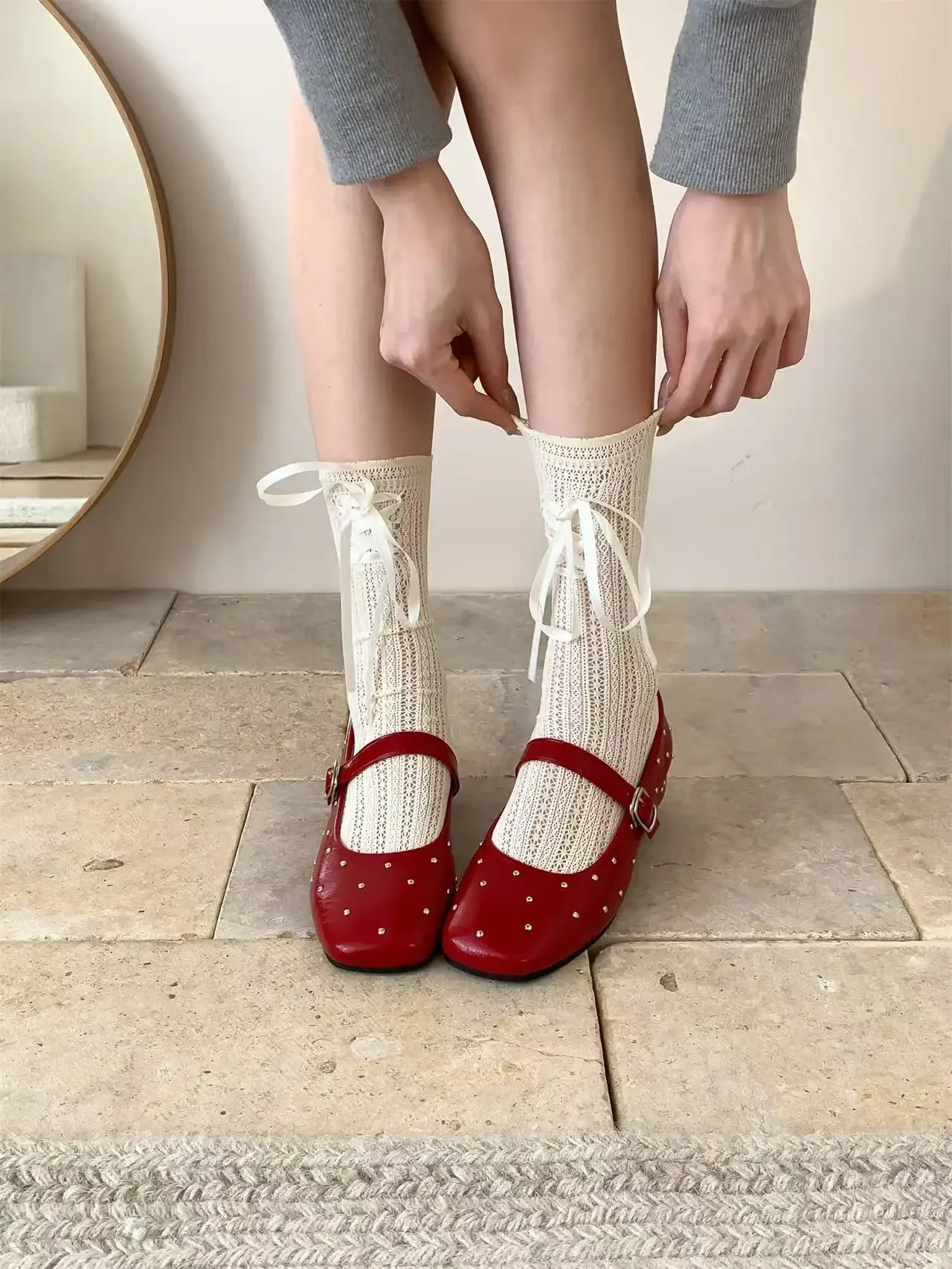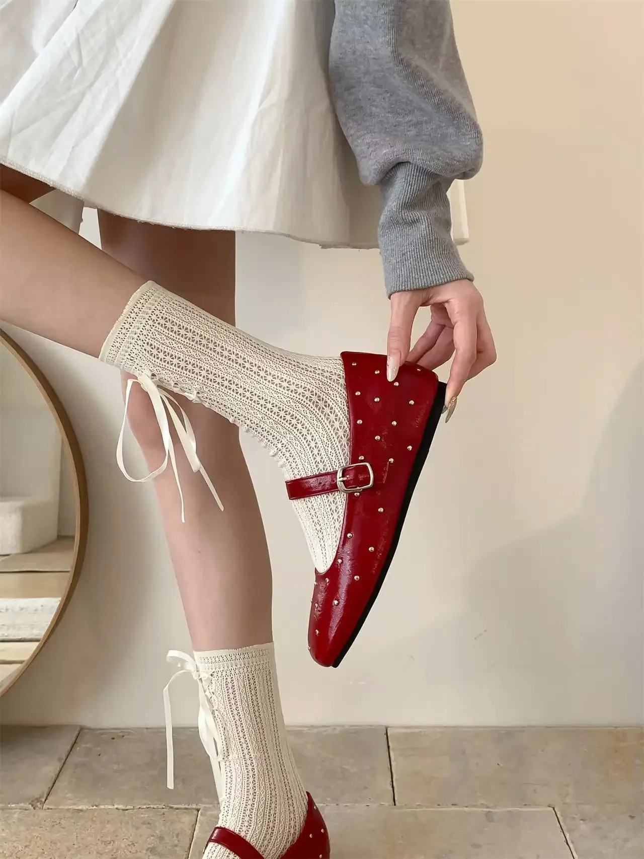 MQTIME - New Spring Women Pumps Round Toe Low Heel Shoes Leather Shoes for Women rivet Buckle Strap Mary Janes Ladies Shoes