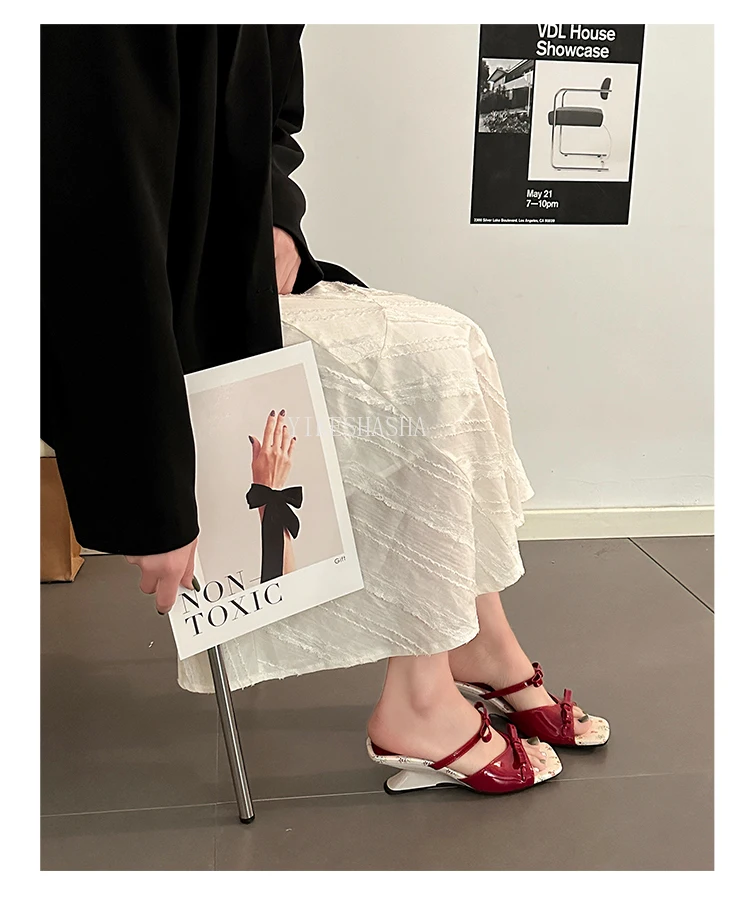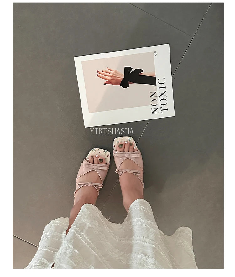 MQTIME - New Summer High Heels Fashion Flower Pink Bow Wedge Sandals for Women Wear Sandalias De Mujer