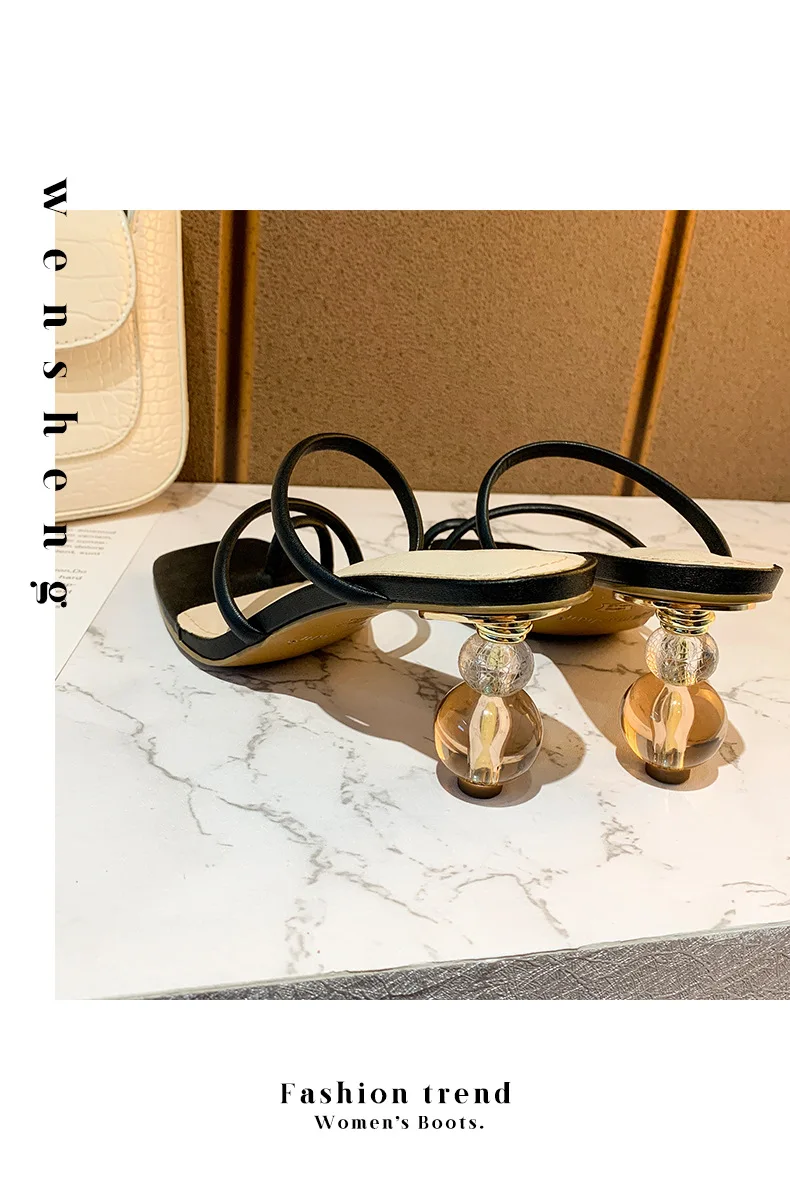 Mqtime New Women's SandalsSquare Head Solid Color Women's Shoes with Open Toe Shaped Heel Half Slippers