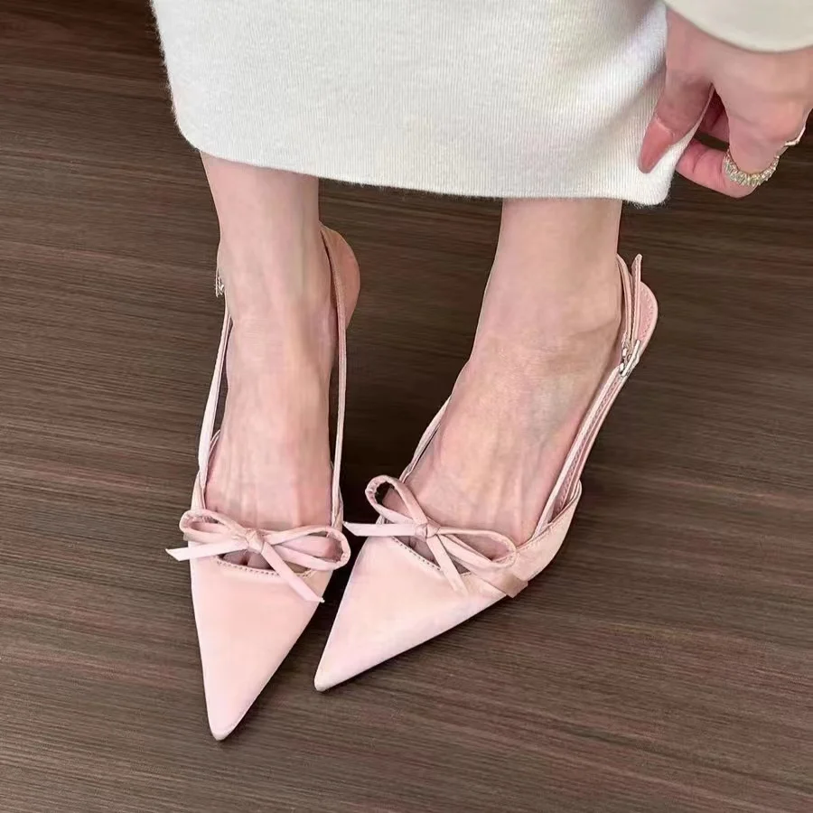 MQTIME - Pointy Fashion Single-shoe Women New Summer Stiletto Sandals French with Skirt Temperament Pink High Heels Kawaii Shoes