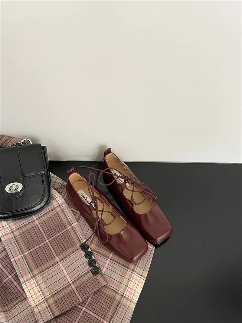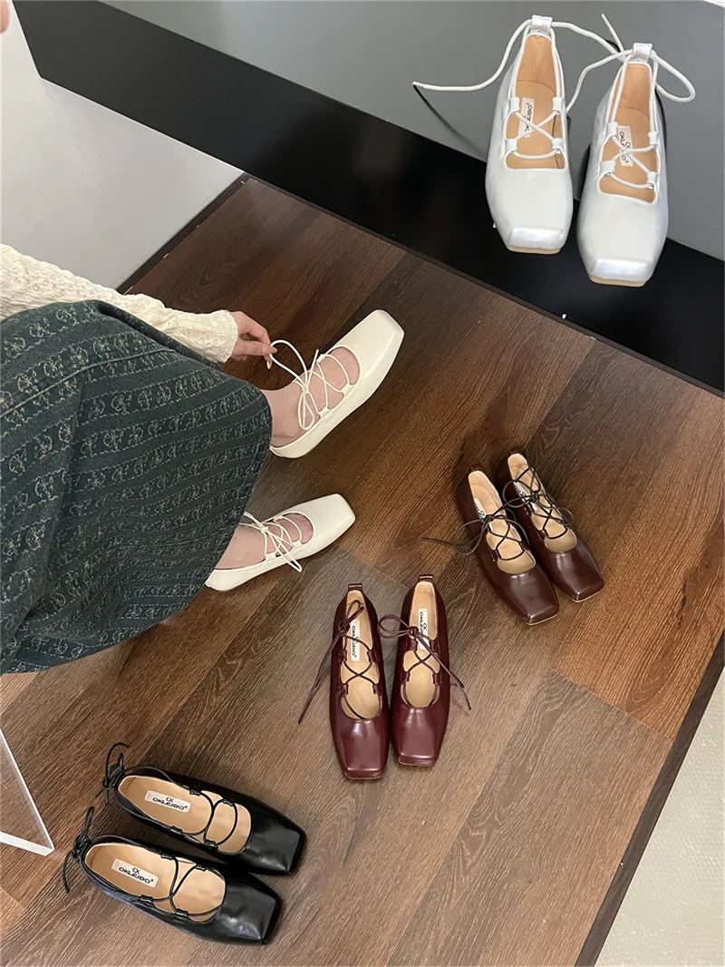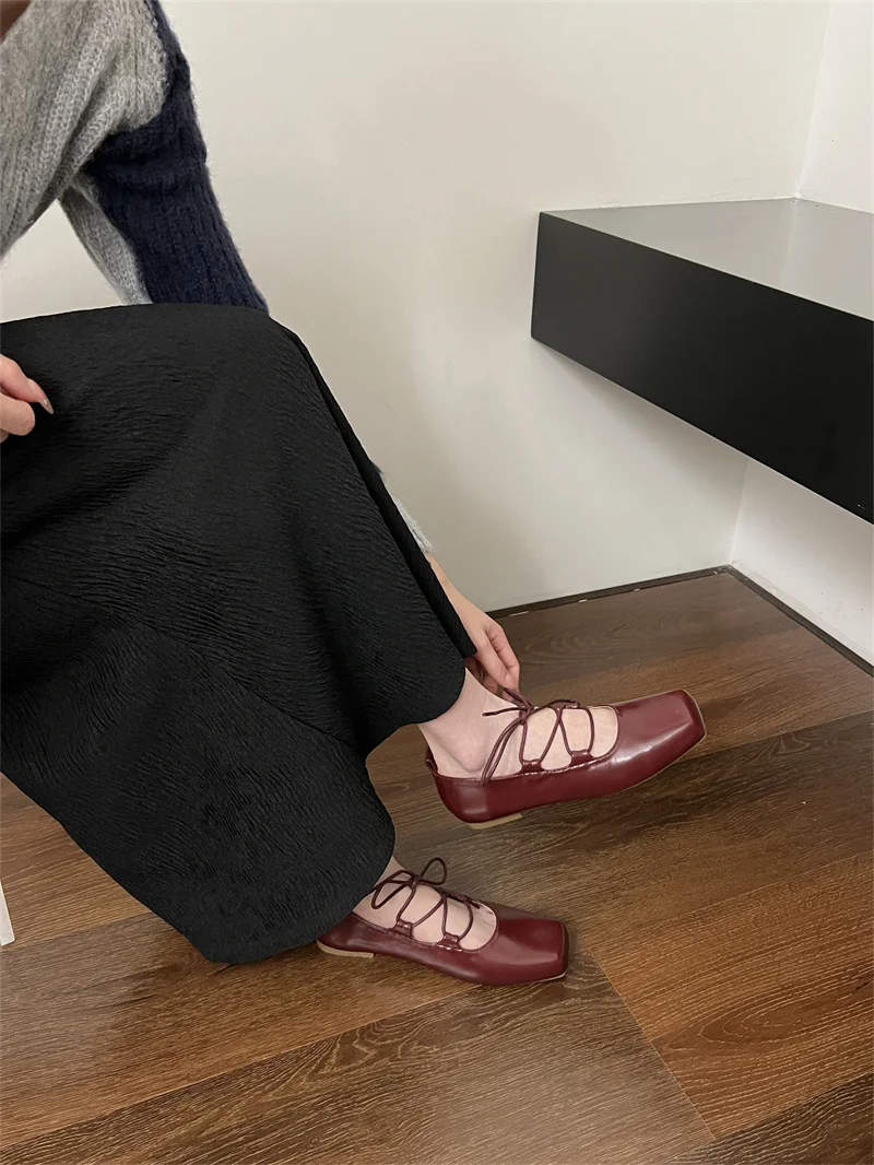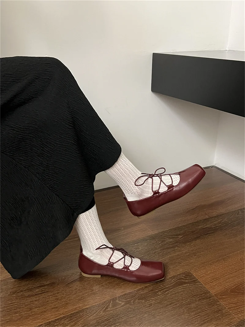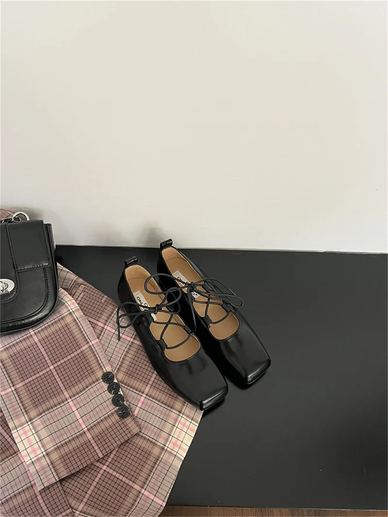 Mqtime Red Ballet Flats Square Toe Mary Janes 2024 New In Black PU Leather Women Ballerina Shoes