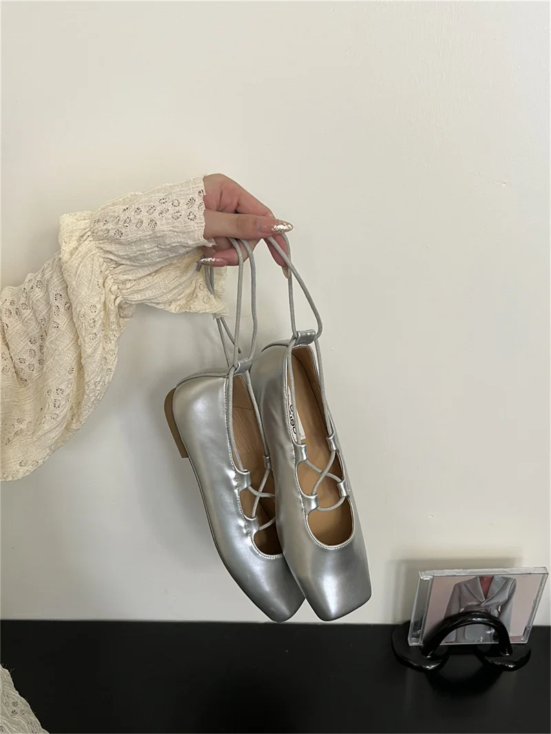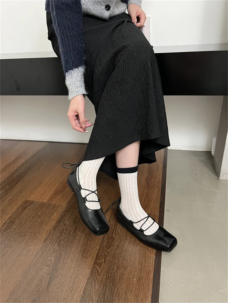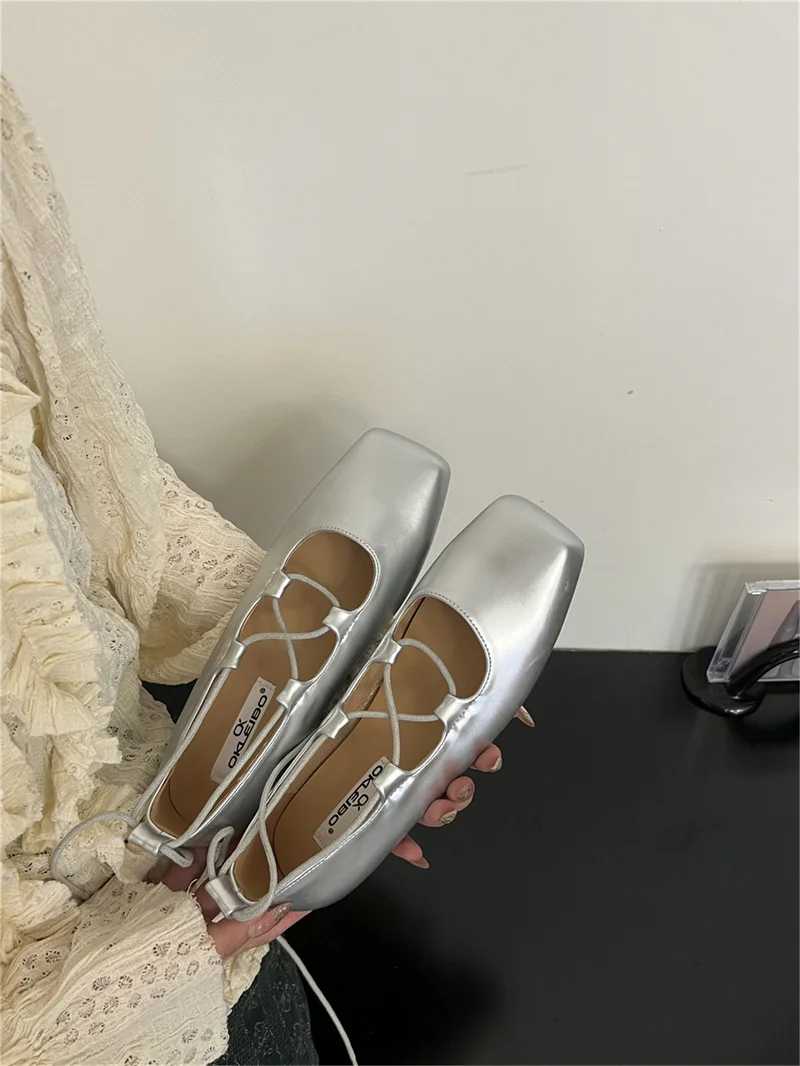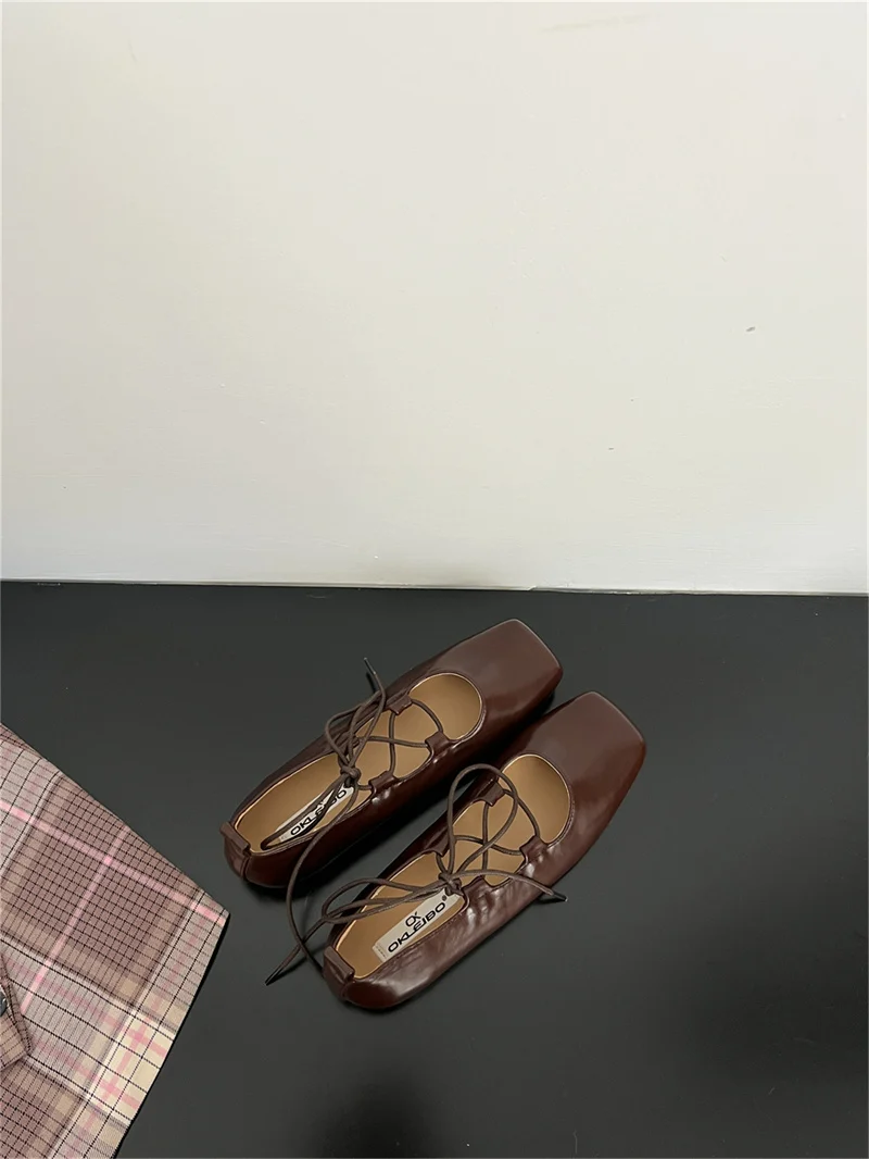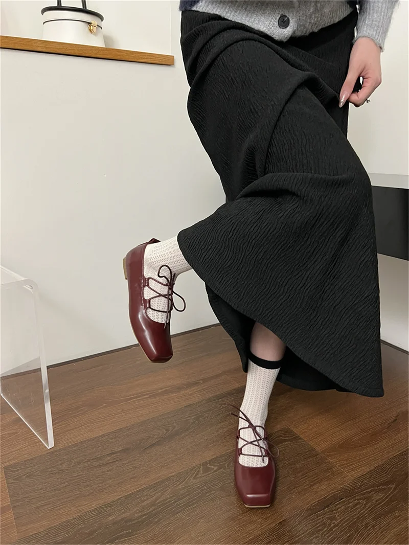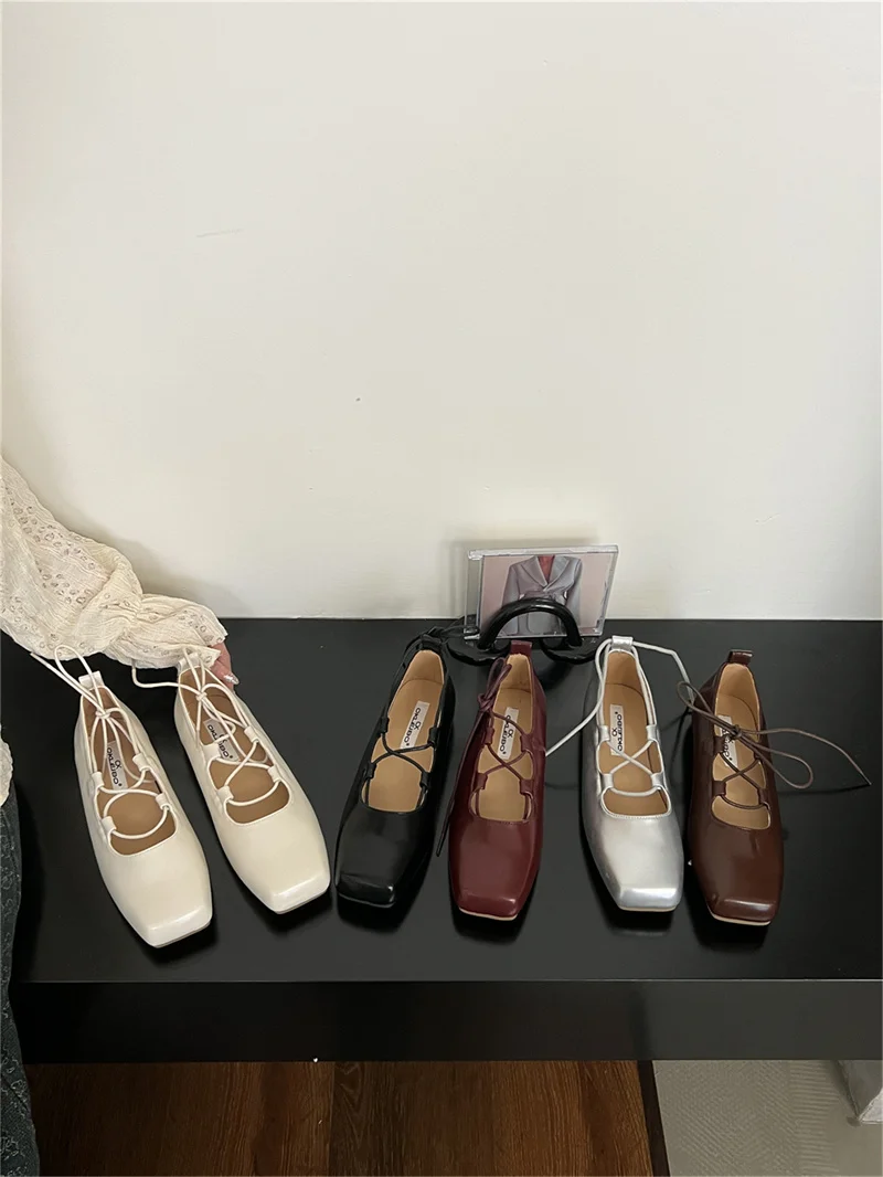 Mqtime Red Ballet Flats Square Toe Mary Janes 2024 New In Black PU Leather Women Ballerina Shoes