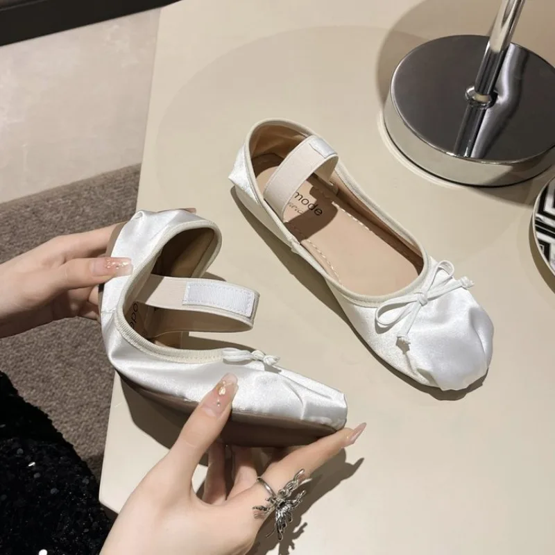 MQTIME - Spring New Bow Ballet Flat Shoes Female Temperament Mary Jane Ballerina Shallow Mouth Single Shoes Luxury Shoes