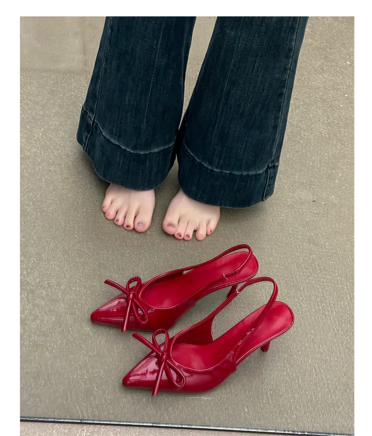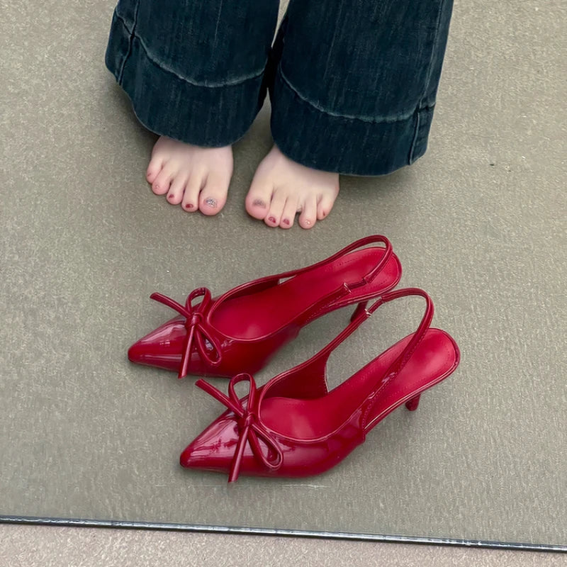 MQTIME - Summer High Heel Women Sandals Shoes Fashion Shallow Butterfly-knot Shoes Elegant Wedding Party Shoes