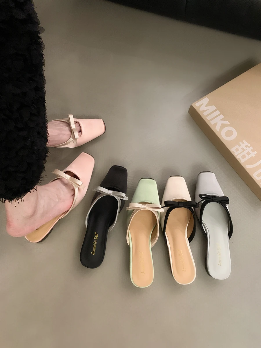 MQTIME - Summer New Women Slipper Fashion Shallow Slip On Mules Shoes Flat Soft Heel Outdoor Dress Sandal Shoes Lazy Beach Slides Loafers