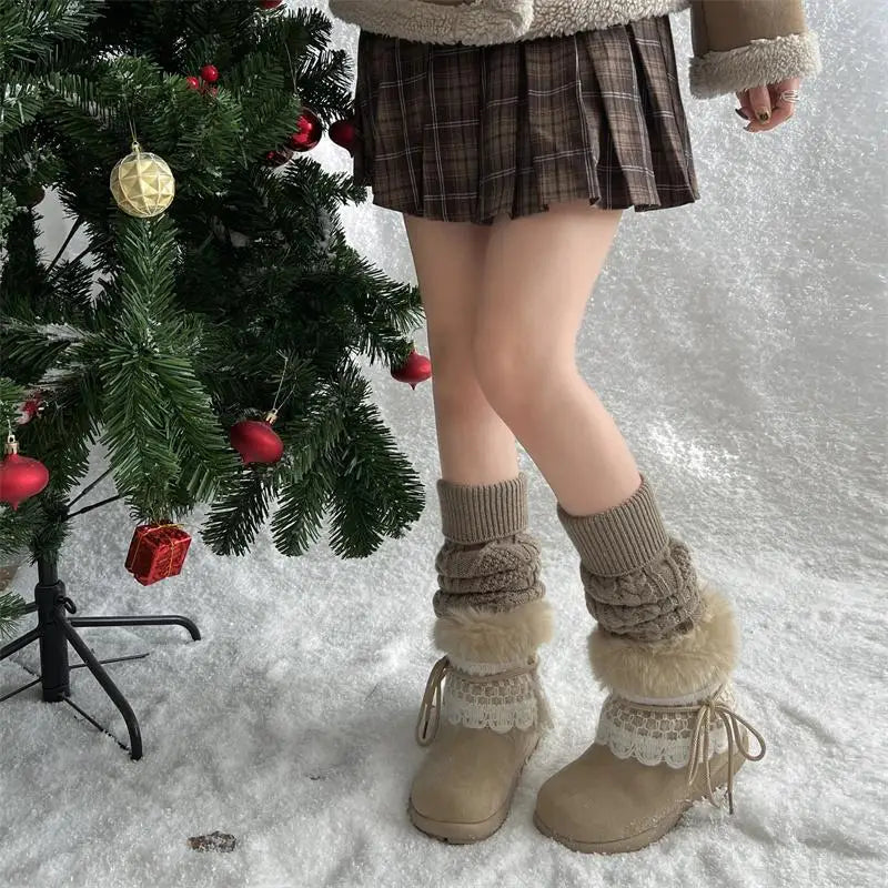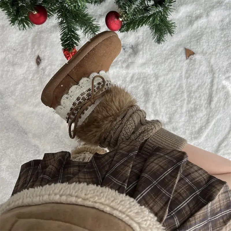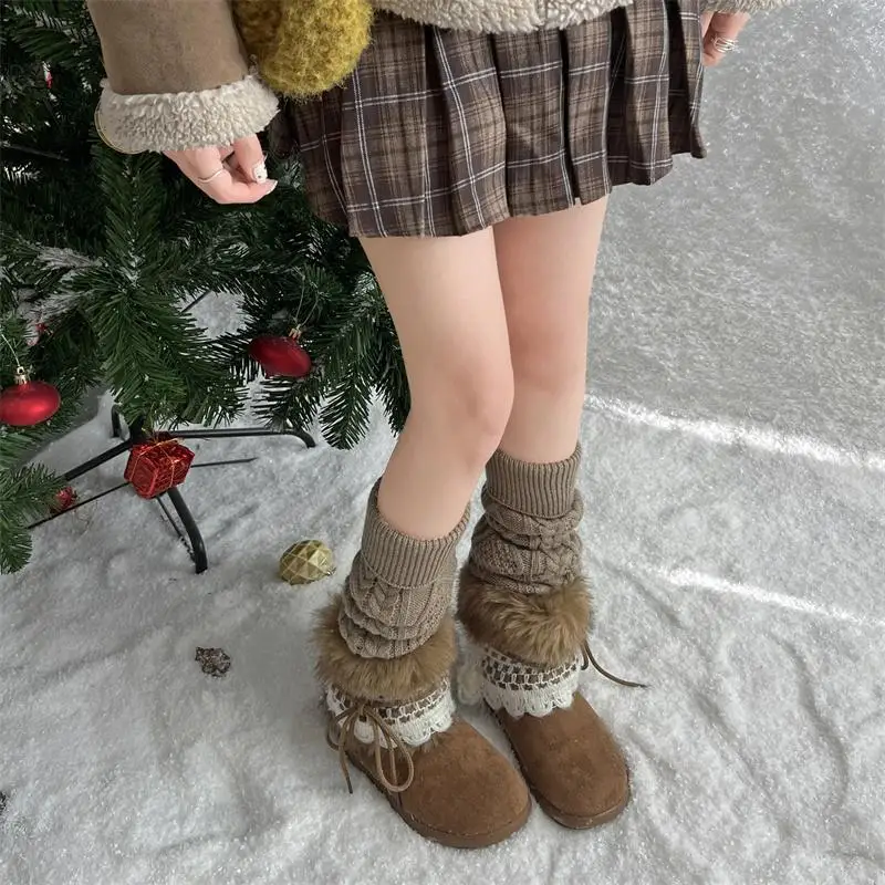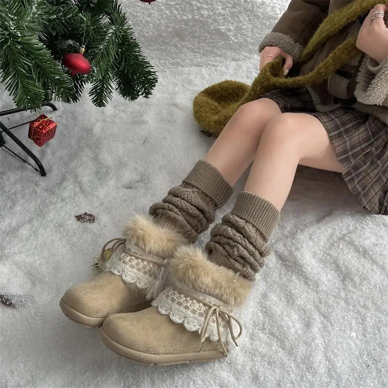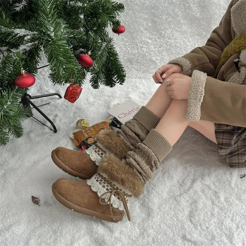 MQTIME - Sweet Lace Decoration Furry Suede Snow Boots Women Winter Thick Bottom Fluffy Fur Ankle Boots Warm Plush Designer Shoes