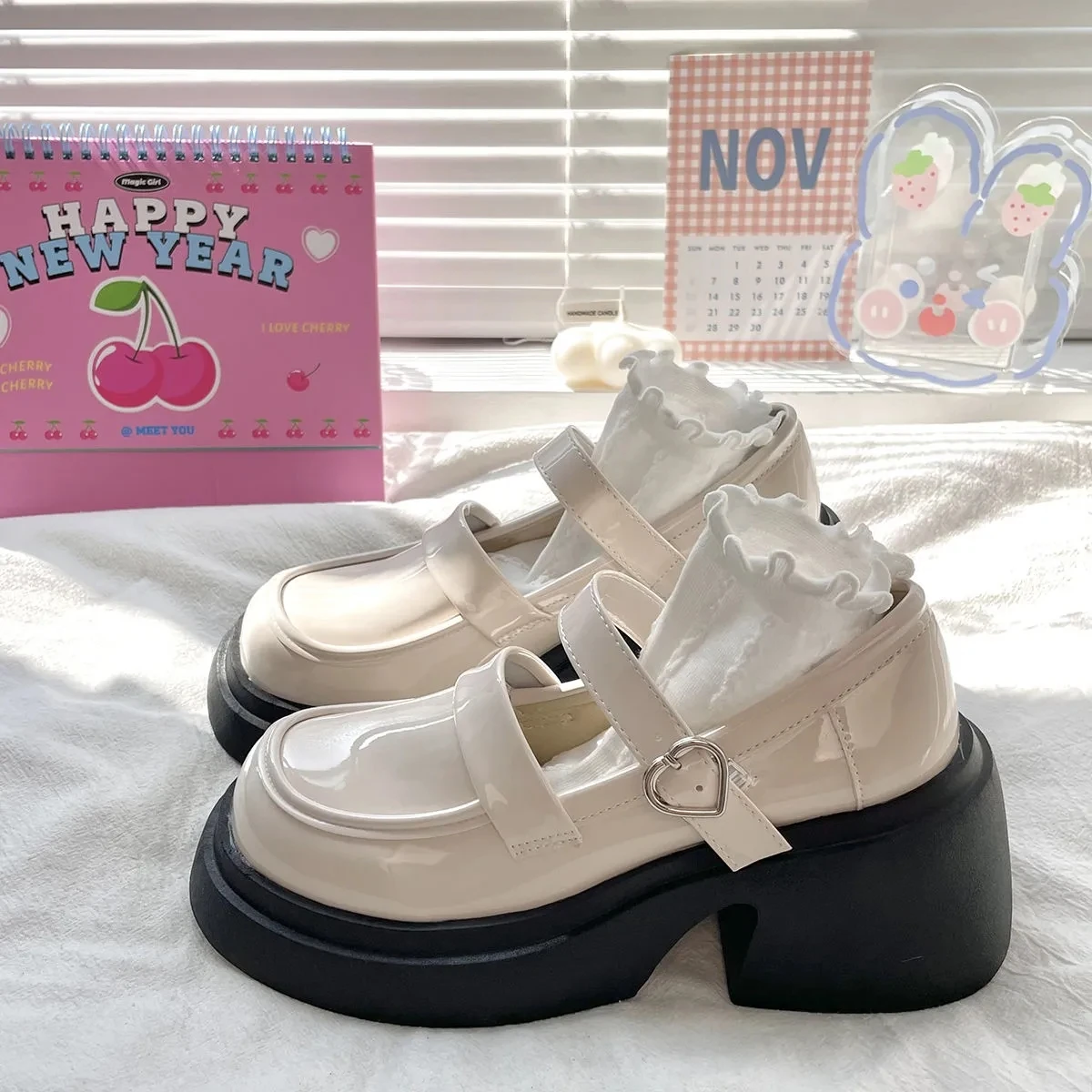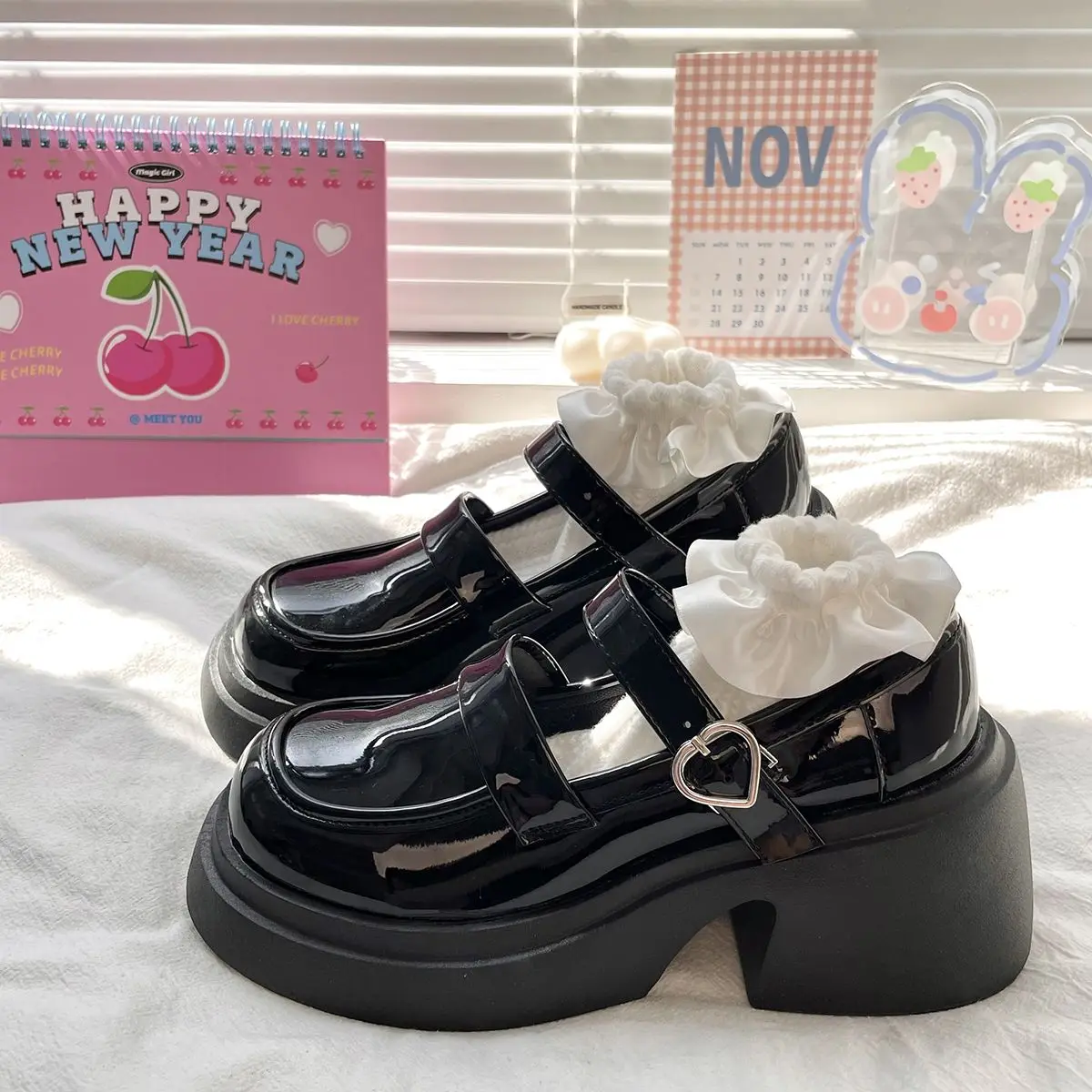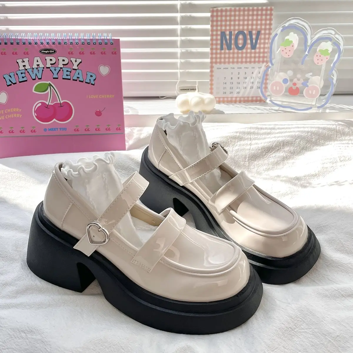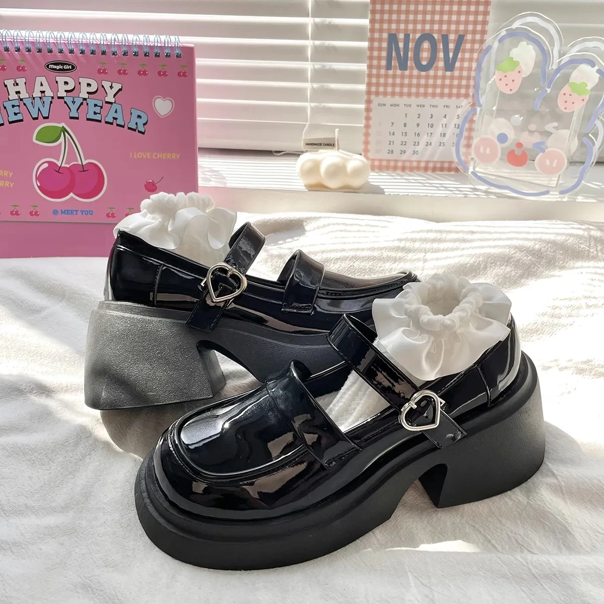 MQTIME - Women Platform Basic Mary Jane Shoes Prepppy Style Leather Heart Lolita Shoes Japanese Jk Female High Heel Shoes