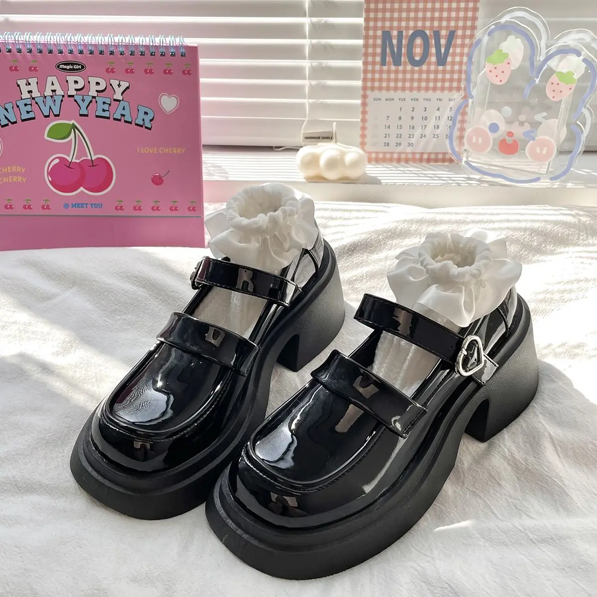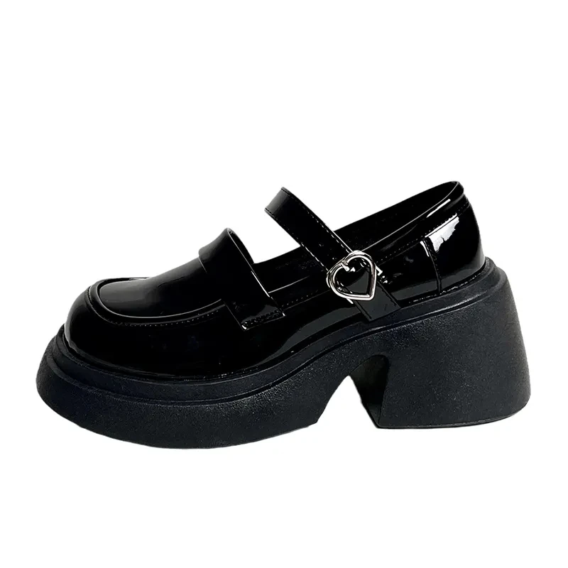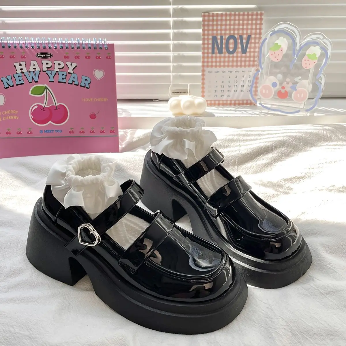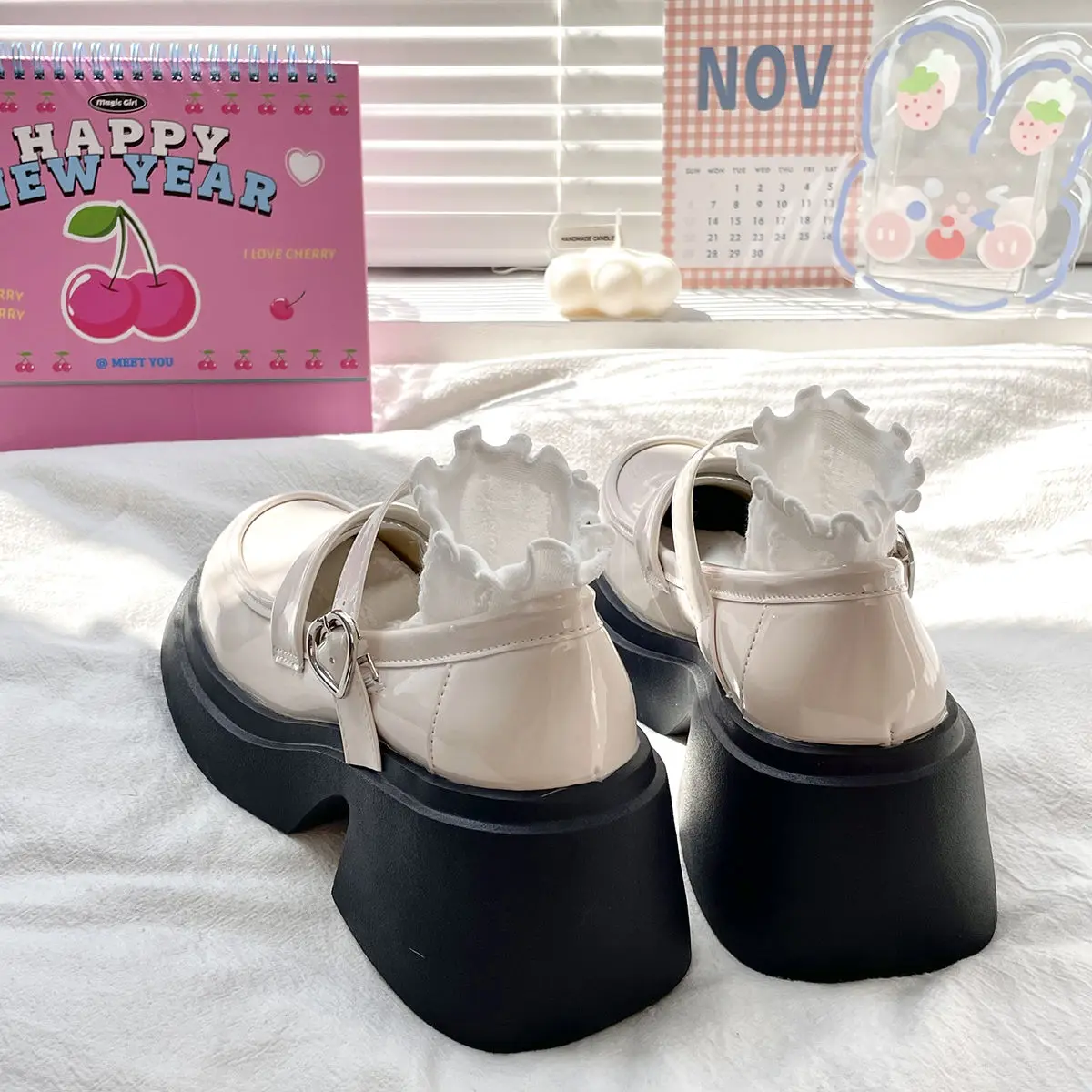 MQTIME - Women Platform Basic Mary Jane Shoes Prepppy Style Leather Heart Lolita Shoes Japanese Jk Female High Heel Shoes