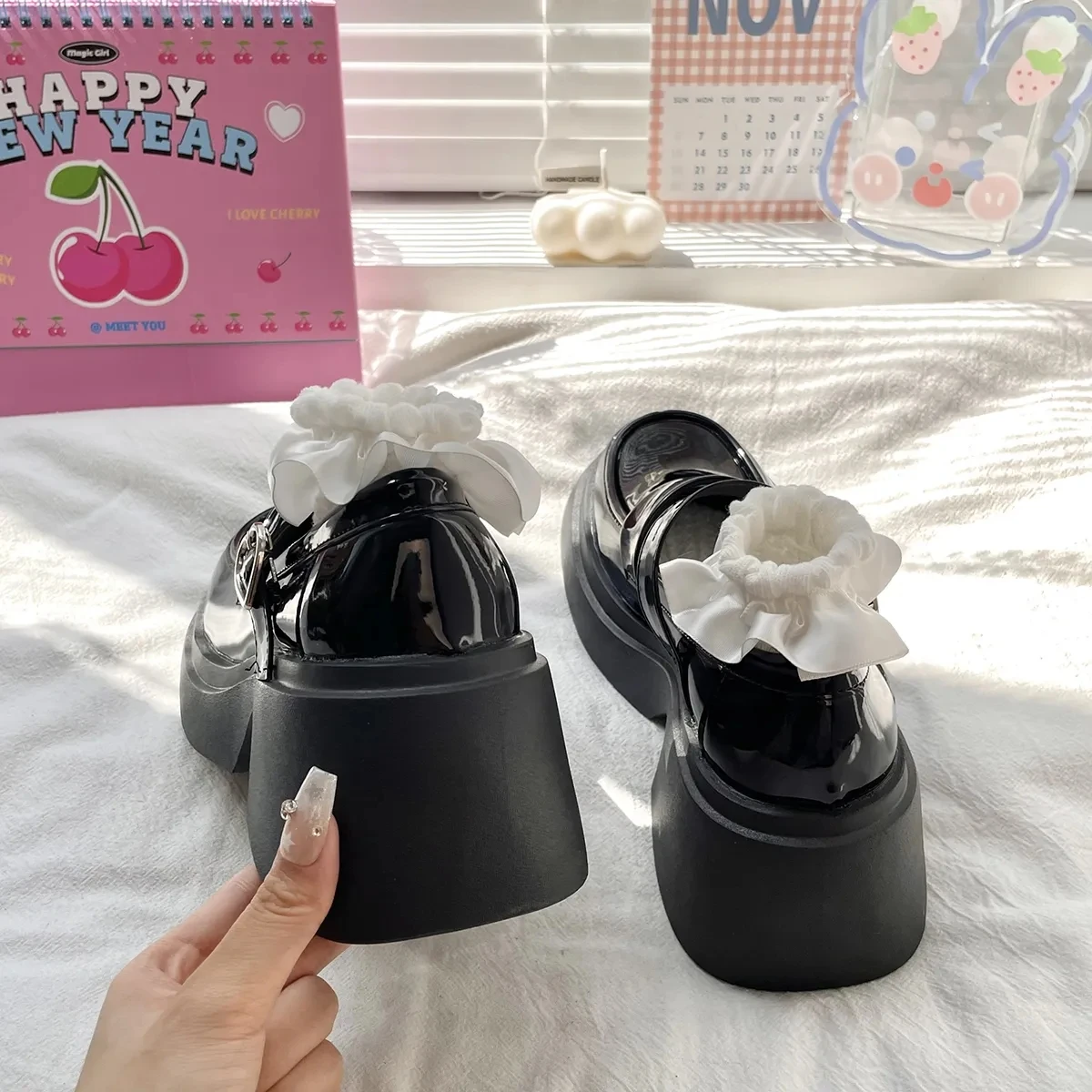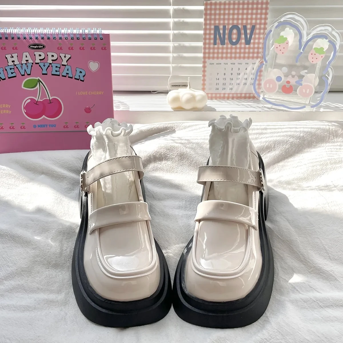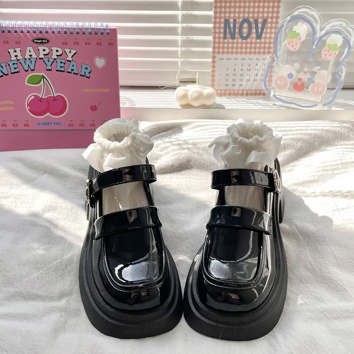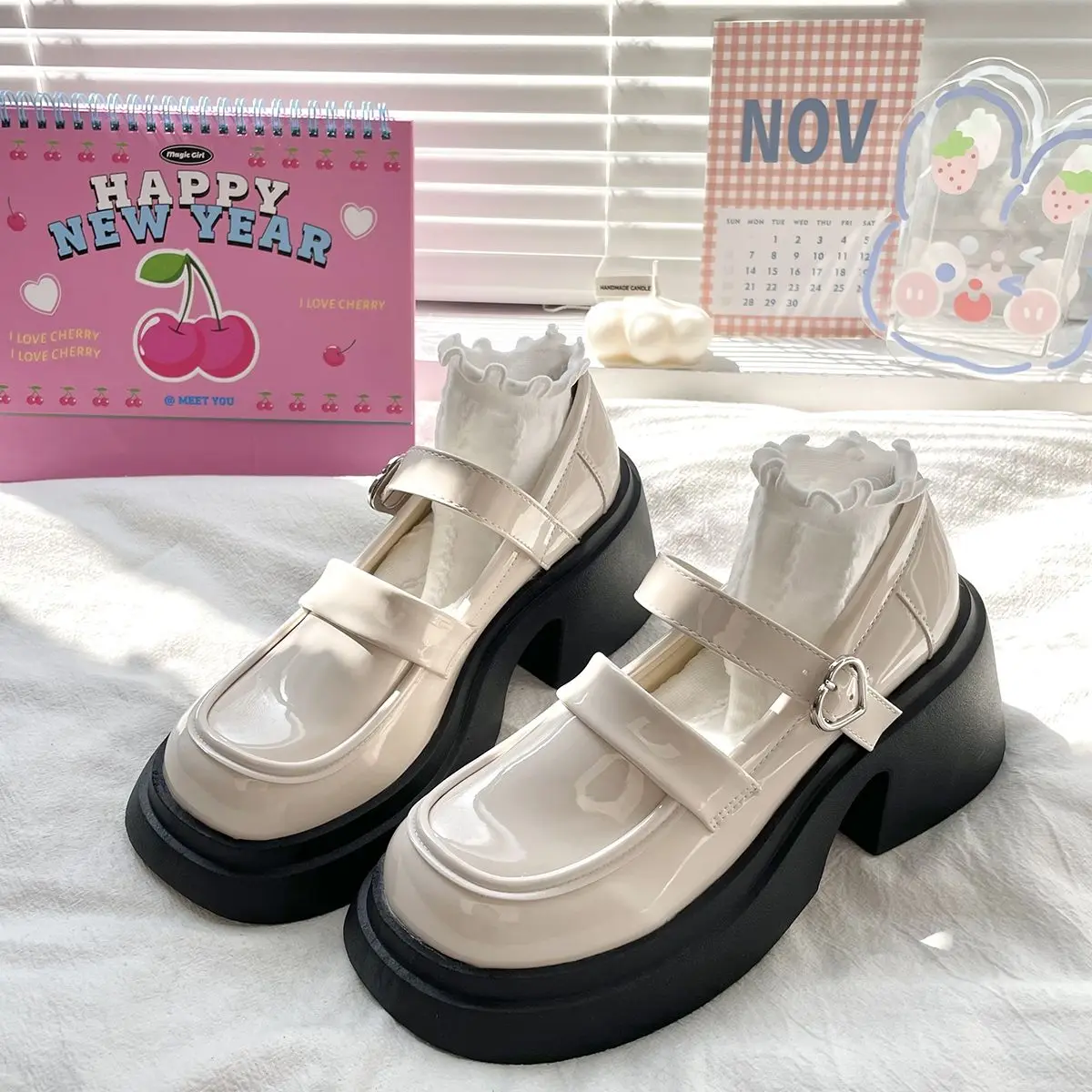 MQTIME - Women Platform Basic Mary Jane Shoes Prepppy Style Leather Heart Lolita Shoes Japanese Jk Female High Heel Shoes