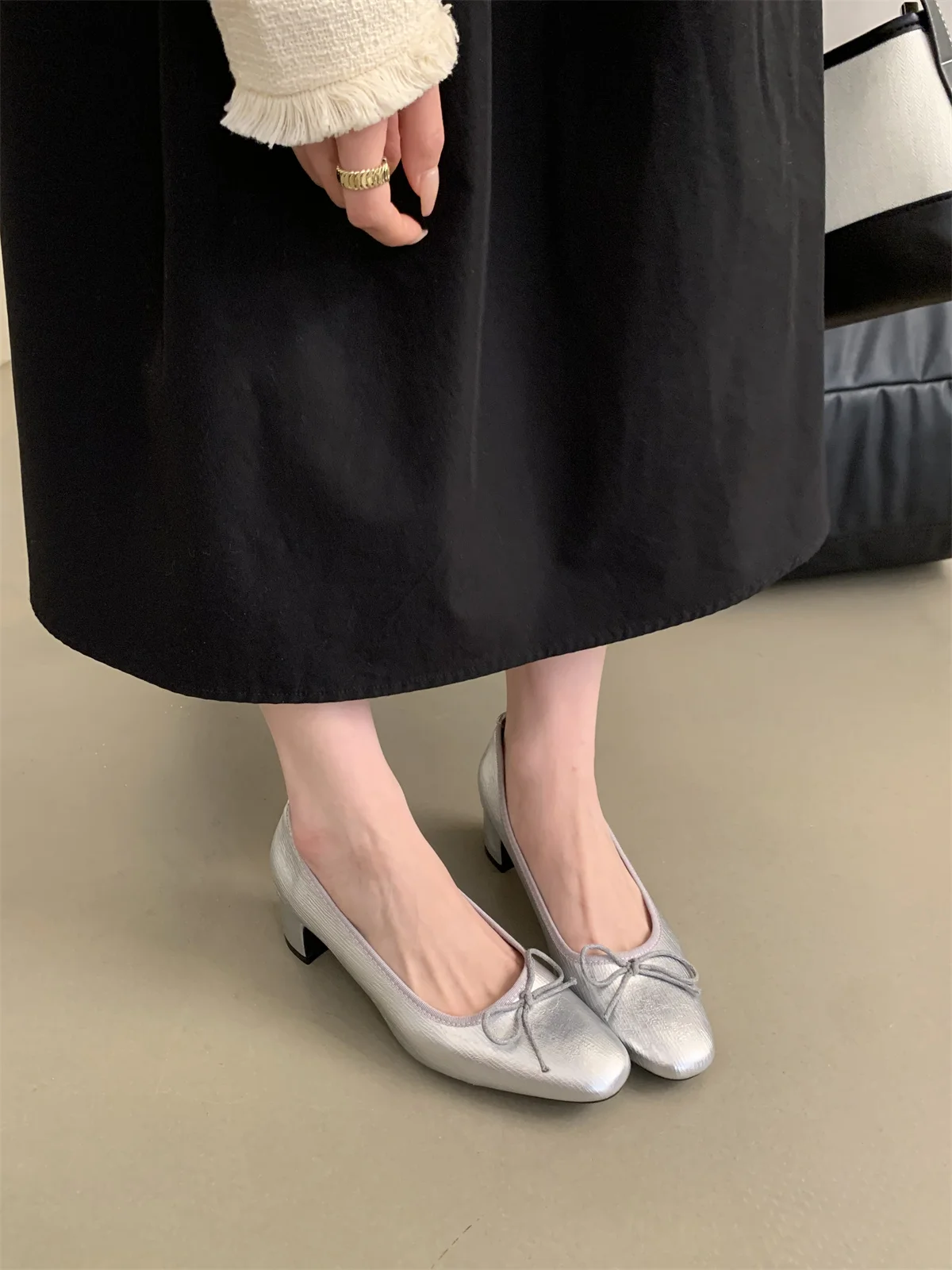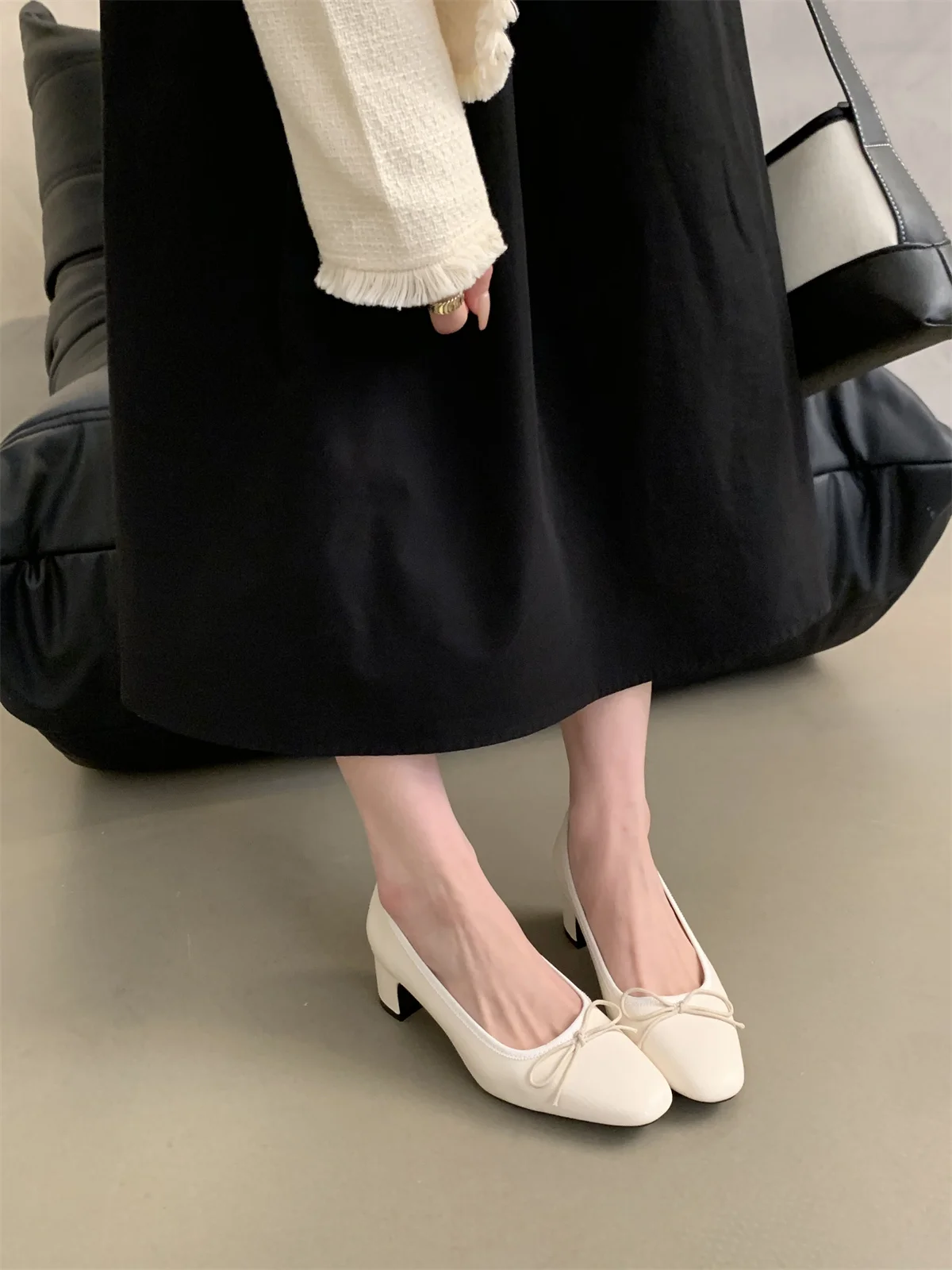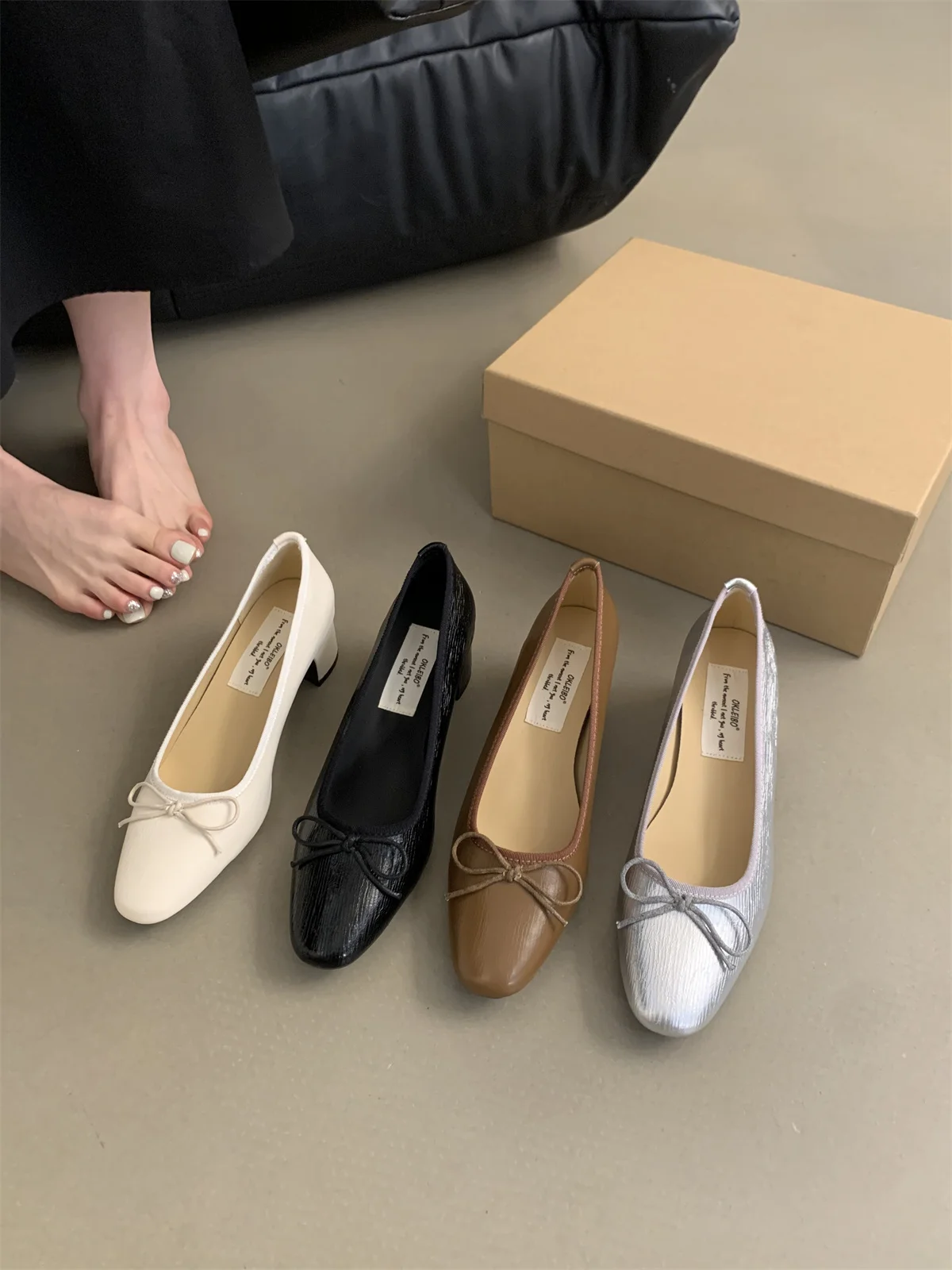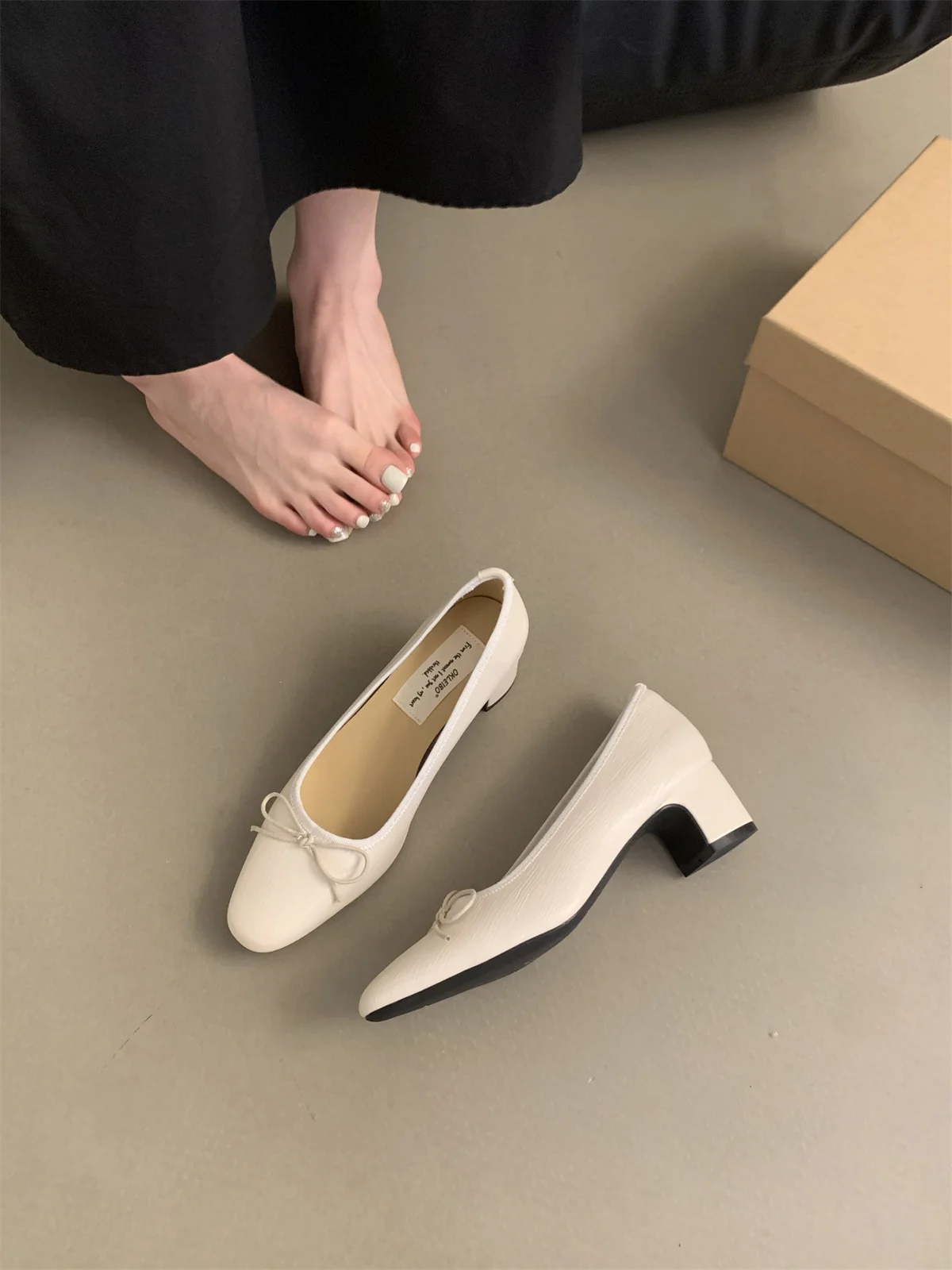 MQTIME - Women’s Shoes Chunky Low Heel Dress Shoes Ladies Slip on Boat Shoes Solid color Basic Pump Single Shoes for Women Office Spring