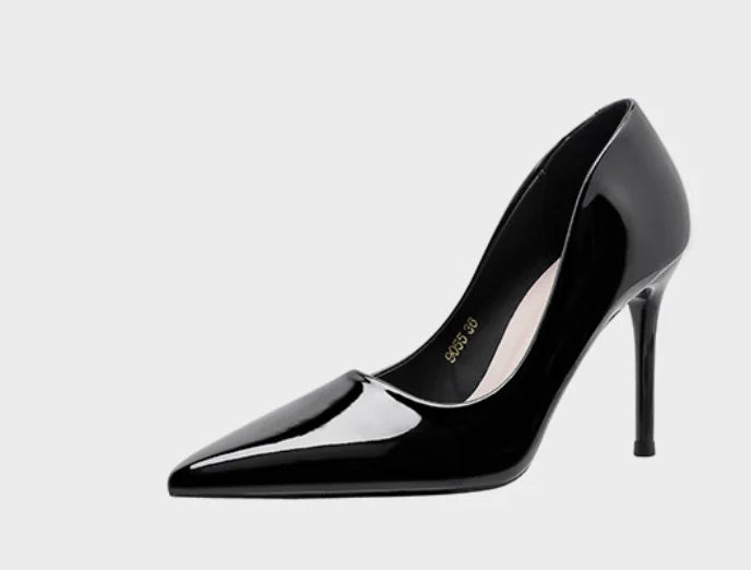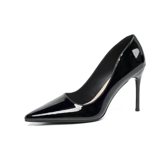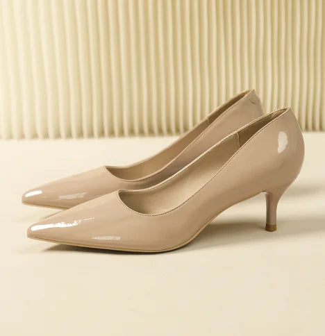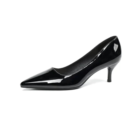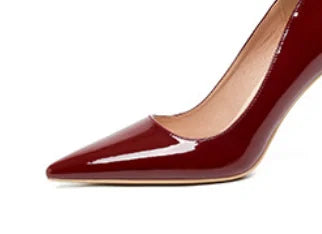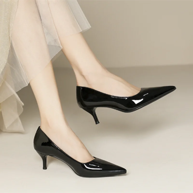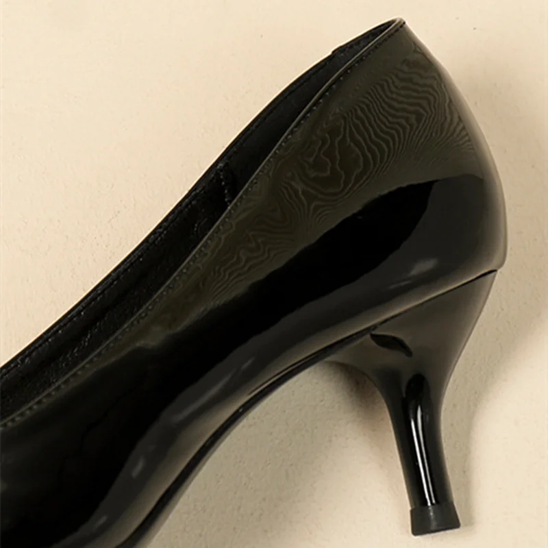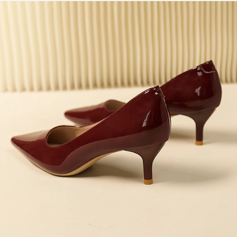 MQTIME - Women Sexy Null 5cm Kitten Heels Pumps For Narrow Feet Pointy Toe Patent Leather Slip-Ons For Dressing EU35-41 25cm Wine Black