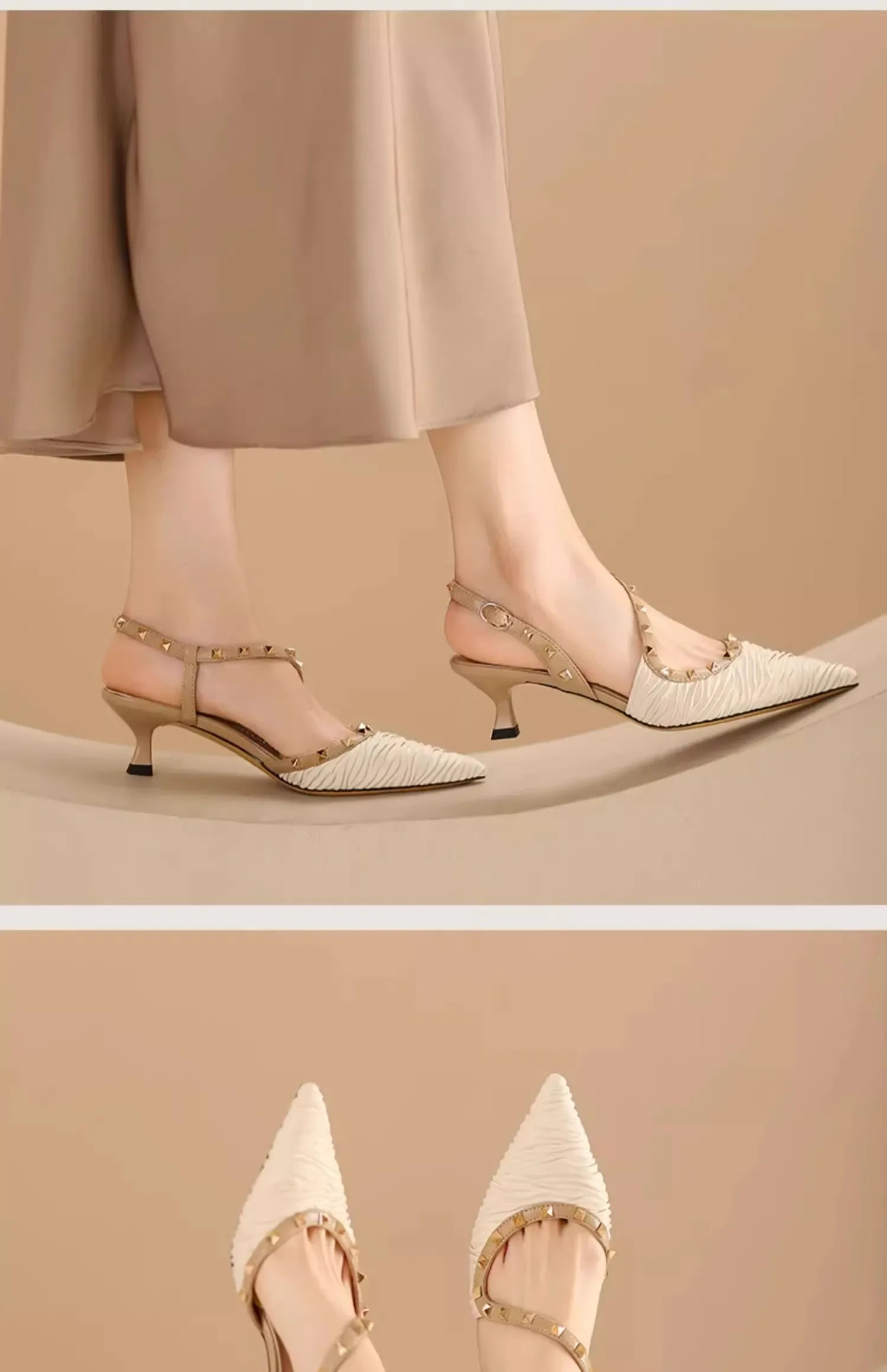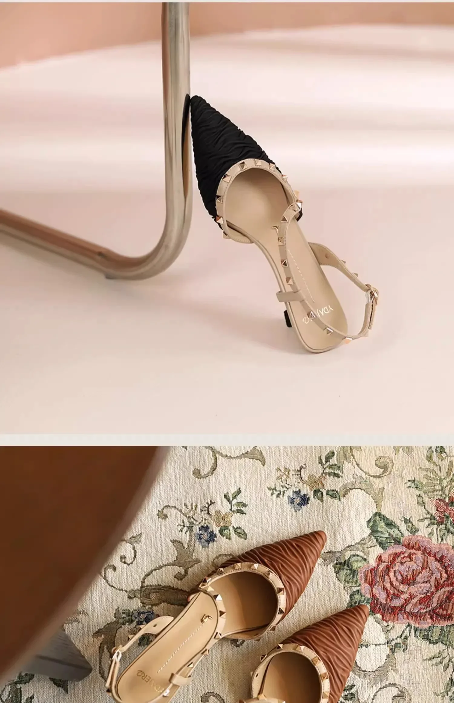 MQTIME  -  Women's Sandals Summer New High Heel Pointed Head Rivet Buckle Slippers Casual Temperament Fine Heel Sandals