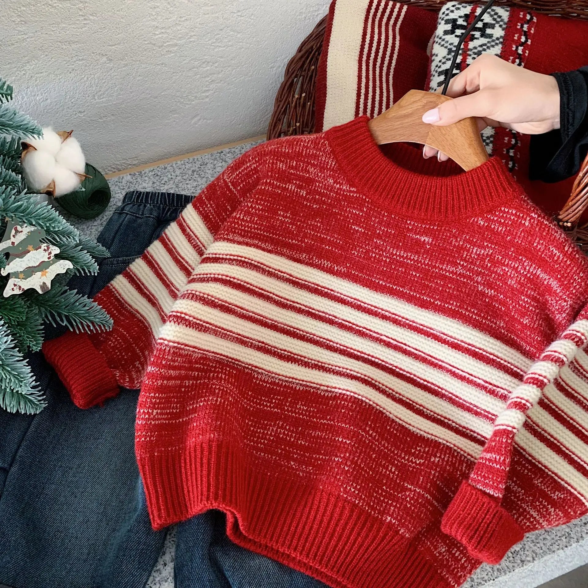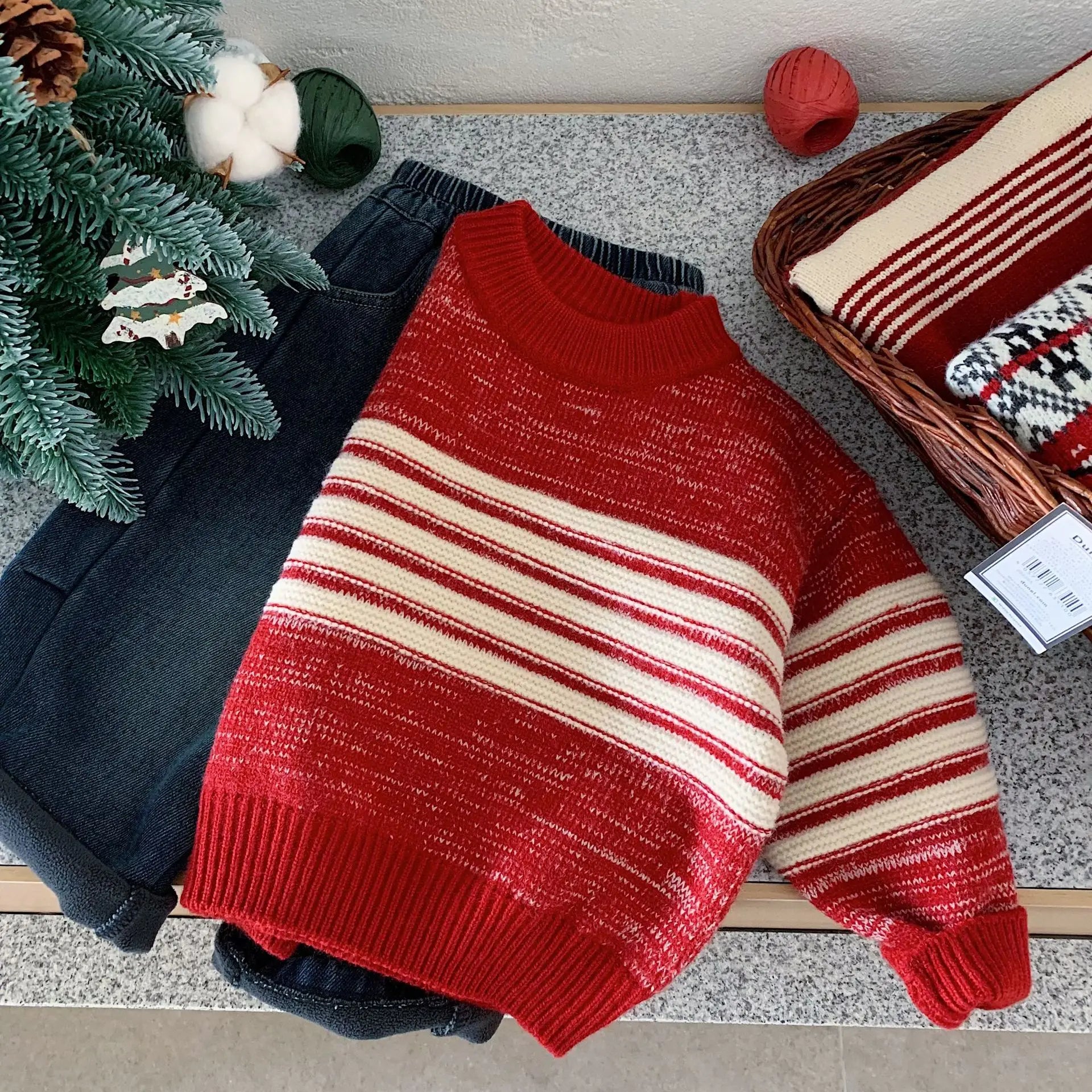 MQTIME - Winter Kids Baby Boys Knitwear Versatile Striped Thicken Warm Toddler Boys Pullovers Christmas Infant Boys Knitwear