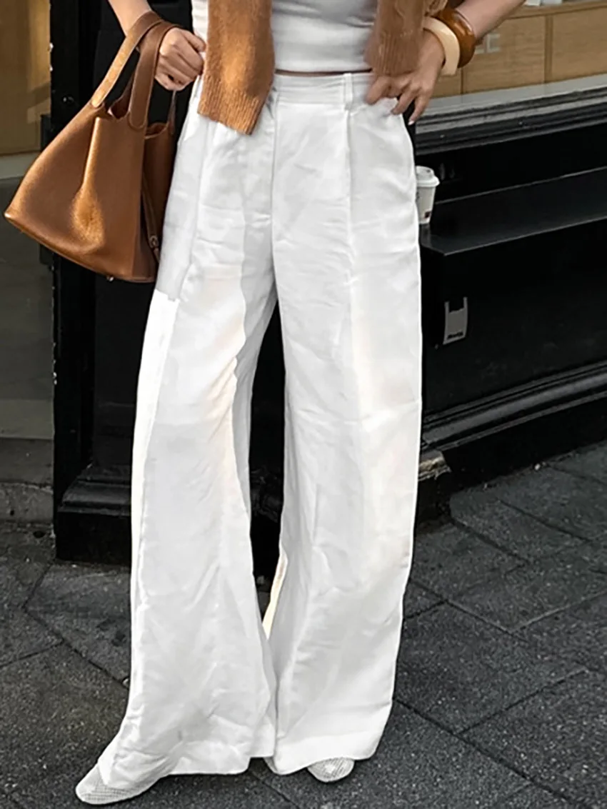 MQTIME - Cotton pants, white fashionable wide leg pants, spring and summer new styles, cross-border versatile, casual commuting