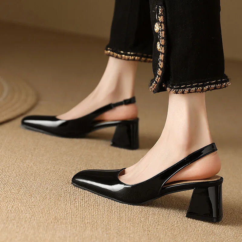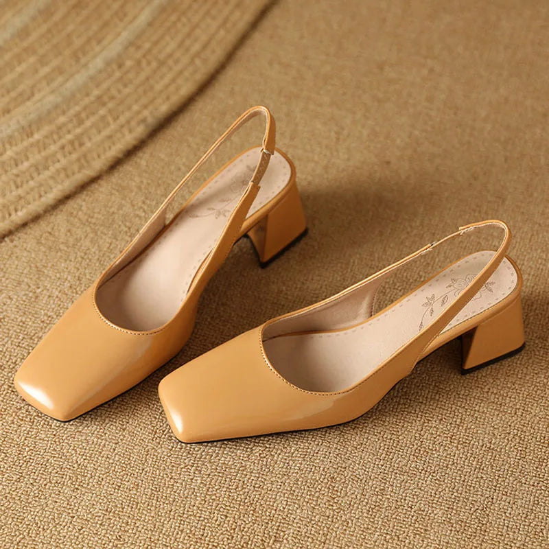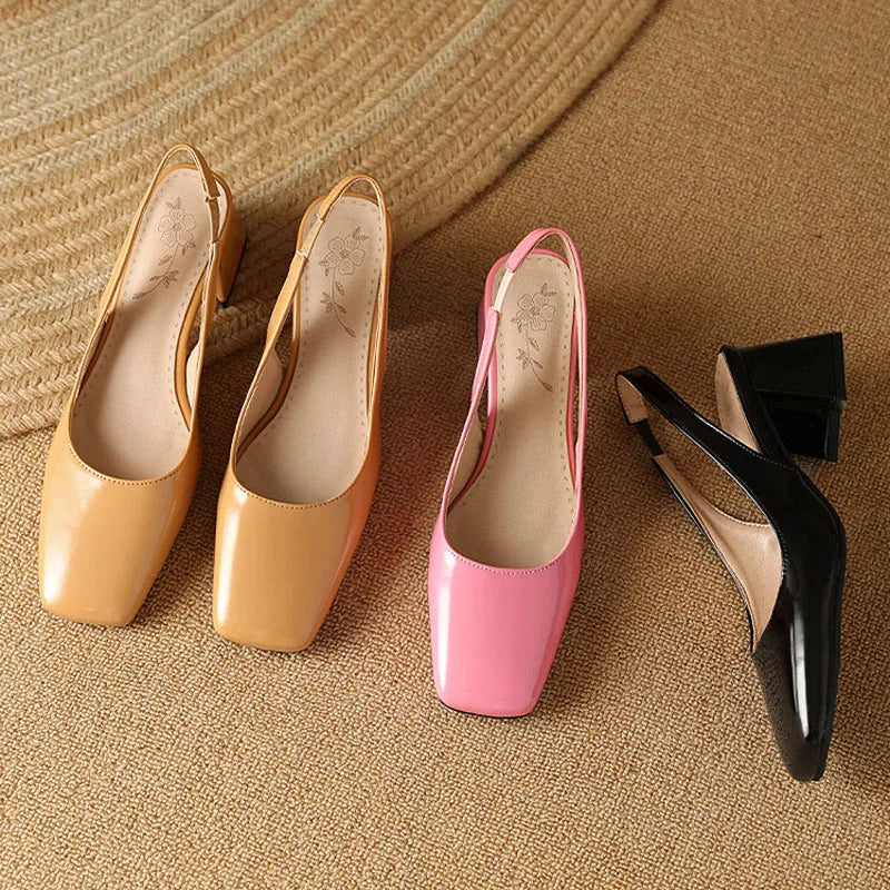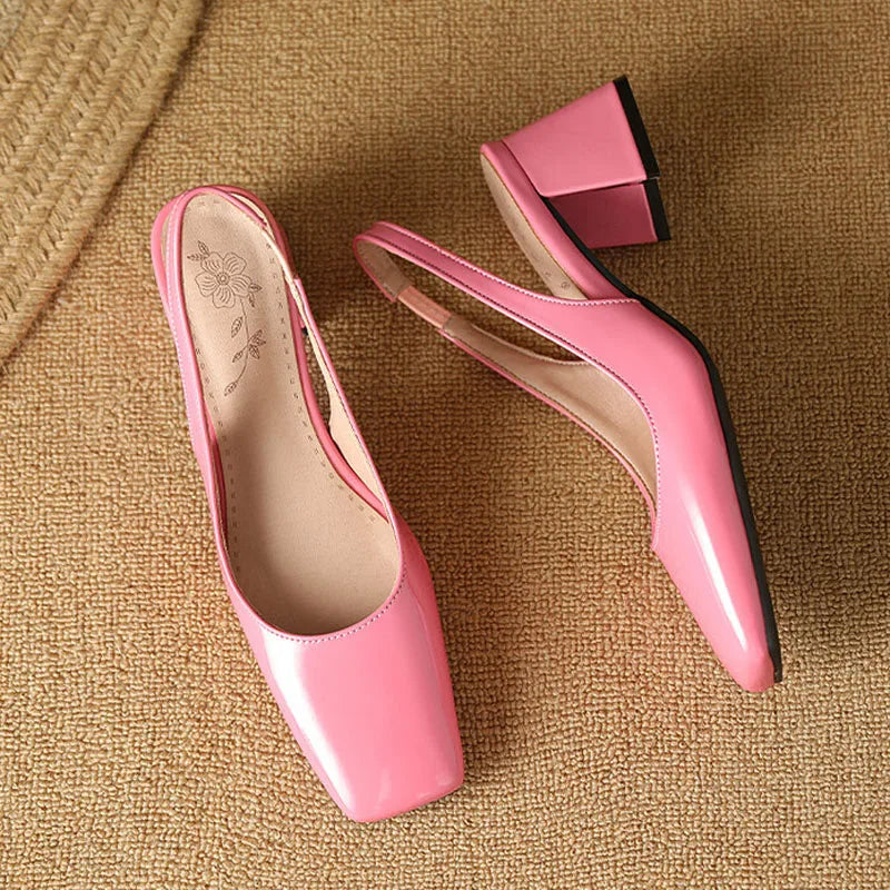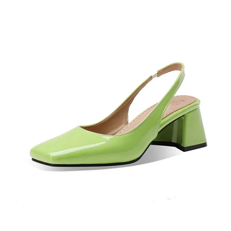 MQTIME - Square Toe Design Patent Leather Women Shoes Chunky Heels Summer Women's Pumps Slingbacks Candy Colors Sandals for Women WSH5310