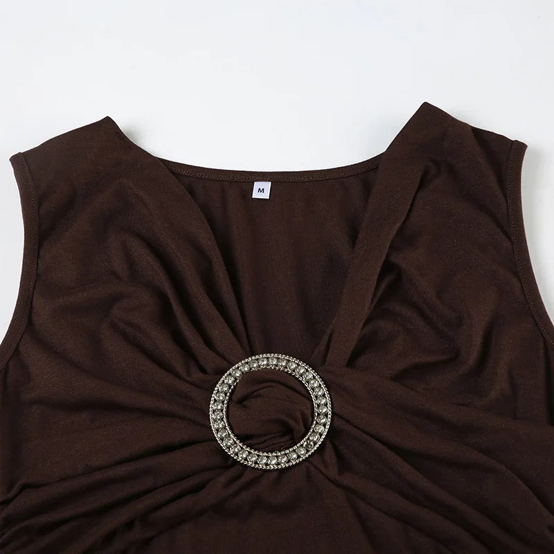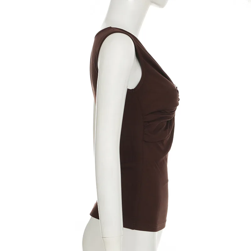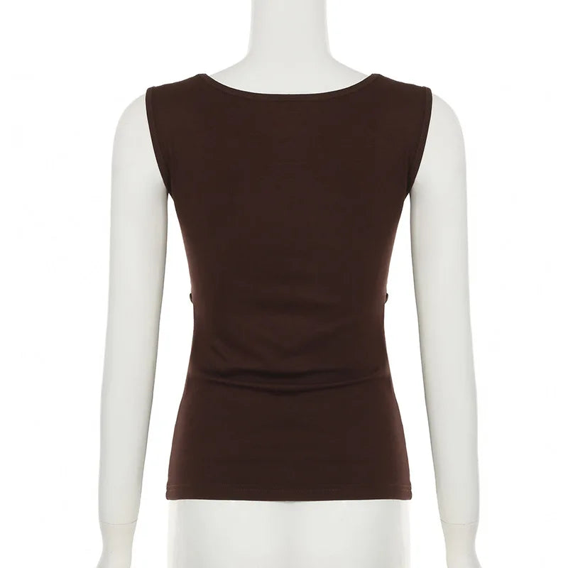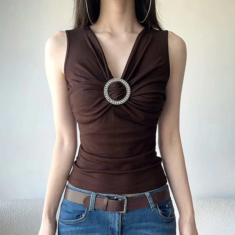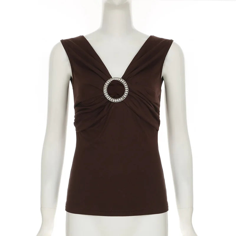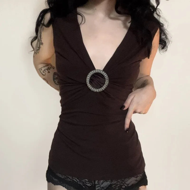 MQTIME - 2000s Aesthetic Circular Design Sleeveless T-shirts Elegant Fashion V-neck Slim Tank Top Women Acubi Solid Blouse Vests