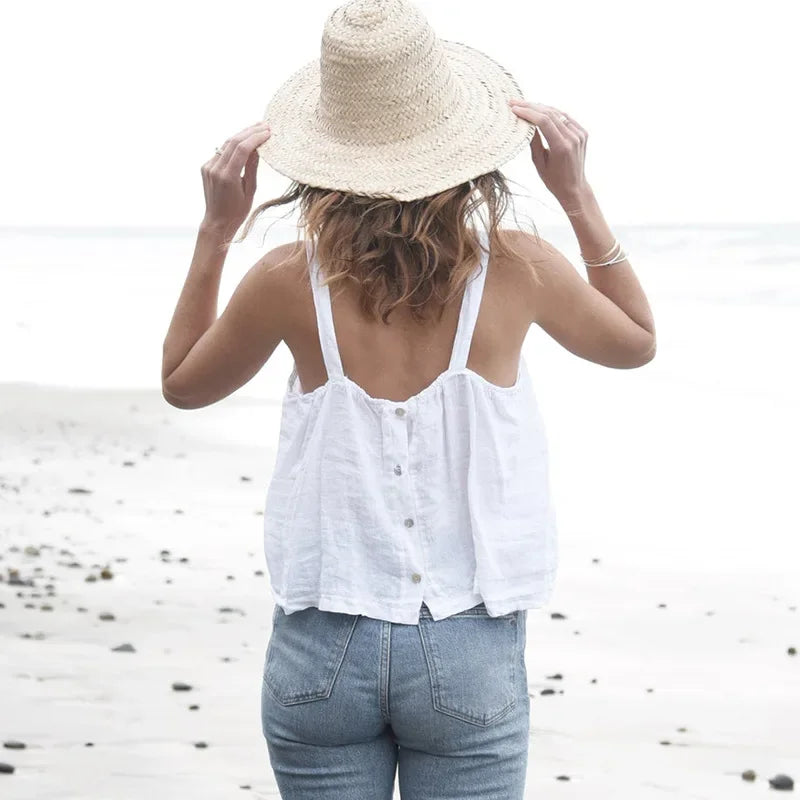 MQTIME - 100% Linen Tops Button Down Solid Color Crop Tops Femme Boho Camis Holiday Solid Color Tank Tops Holiday Vest