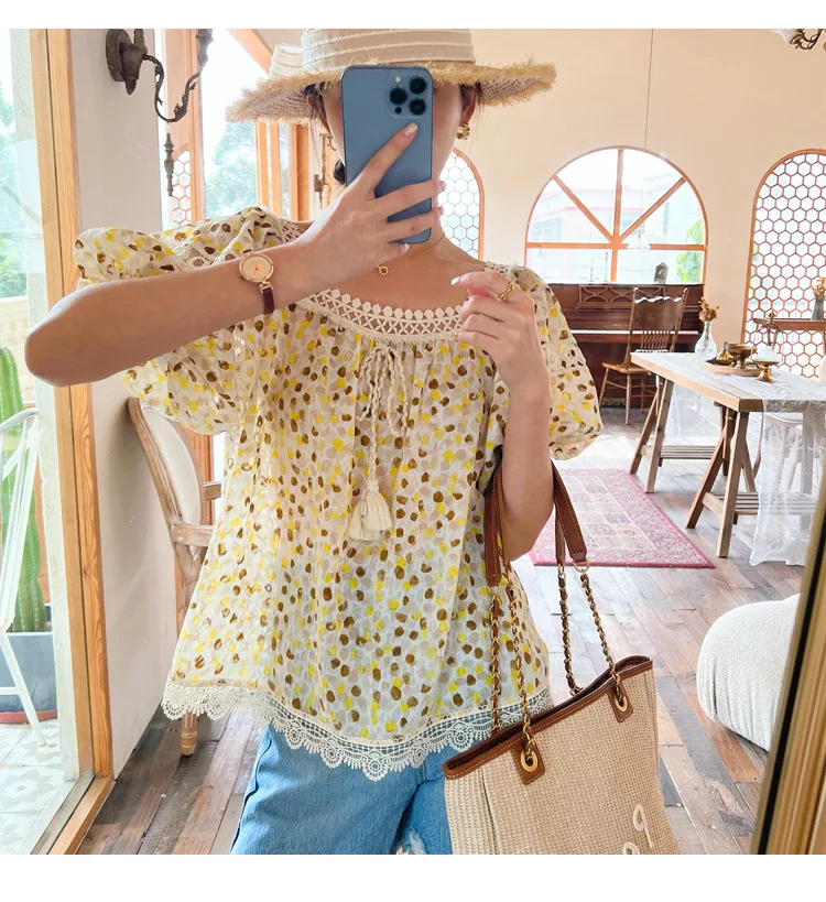 Mqtime Floral Chic Summer Blouse Shirt Chiffon Loose Tassels Lace Up Off The Shoulder Sexy Blouse Holiday Women Casual Tops