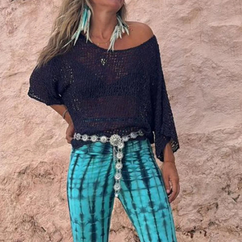MQTIME - New Hollow Out Knitted O Neck Sunscreen Tops Casual Solid Color Long Sleeve Loose Pullovers Spring Summer New See-through Blouse