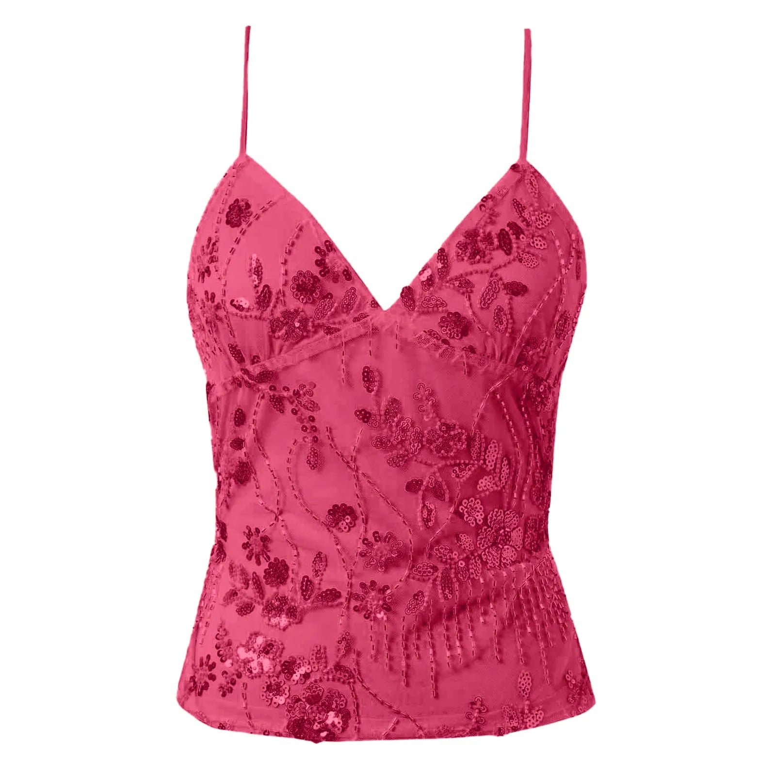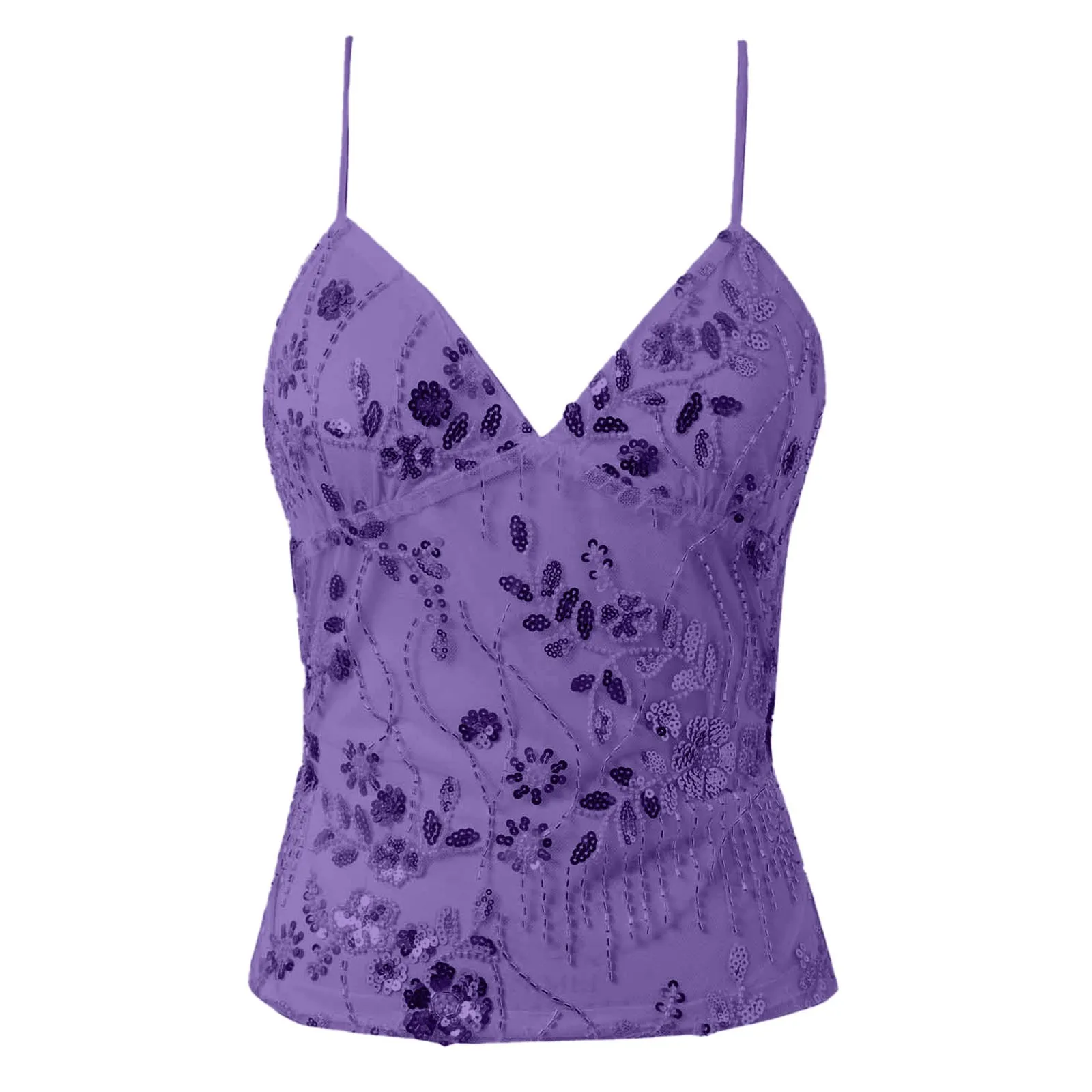 MQTIME - Sequins Beaded Women's Camisoles Tanks Top Lightweight Summer Flower Embroidery Tops Vacation Spring Summer Party Wear Vests