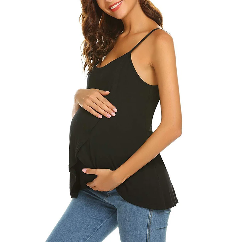 Mqtime Women Pregnant Strappy Vest Nursing Tops Maternity Breastfeeding T-Shirt Summer Fashion Pregnancy Wear