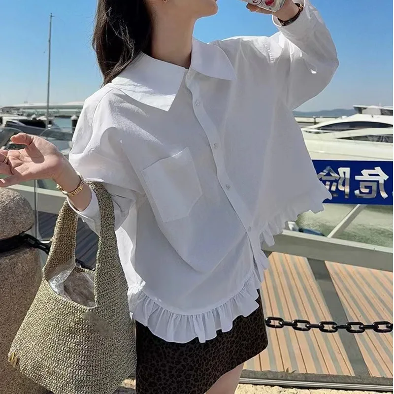 MQTIME - Women Vintage Plaid Shirts Spring Summer Fashion Streetwear Female Loose Single-breasted Tops Casual Lapel Long Sleeve Blouse