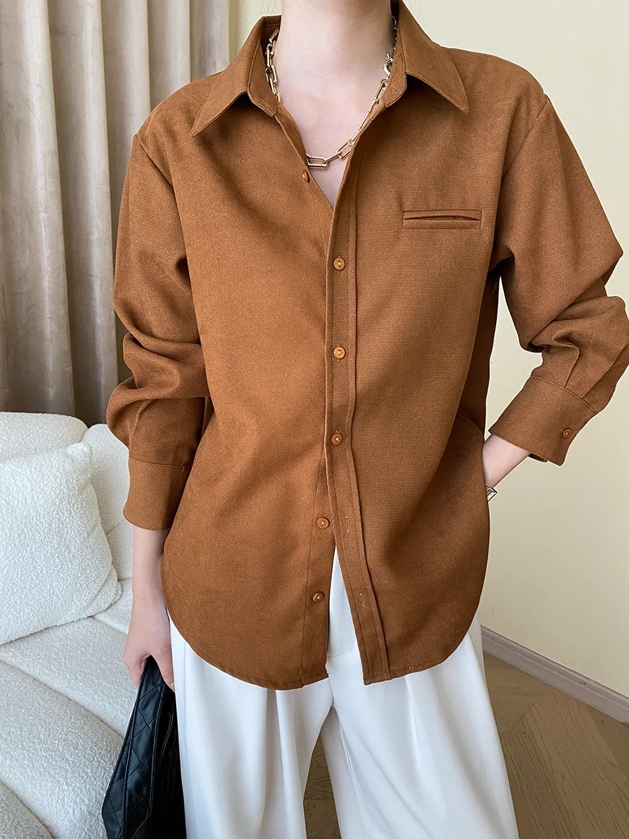 MQTIME - Women's High Quality French Solid Simple Straight Versatile Sina Coarse Texture Sanding Overlapping Shirt Tops for Ladies