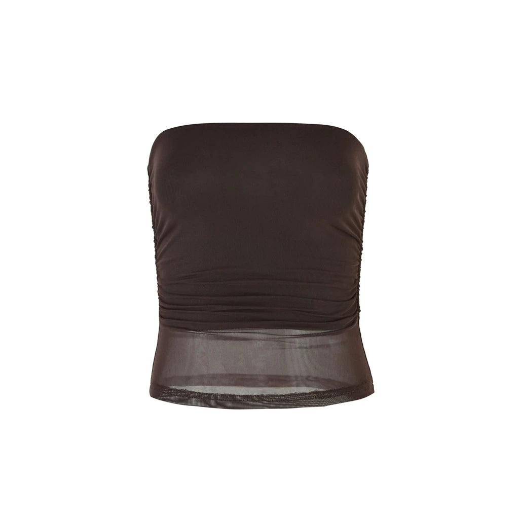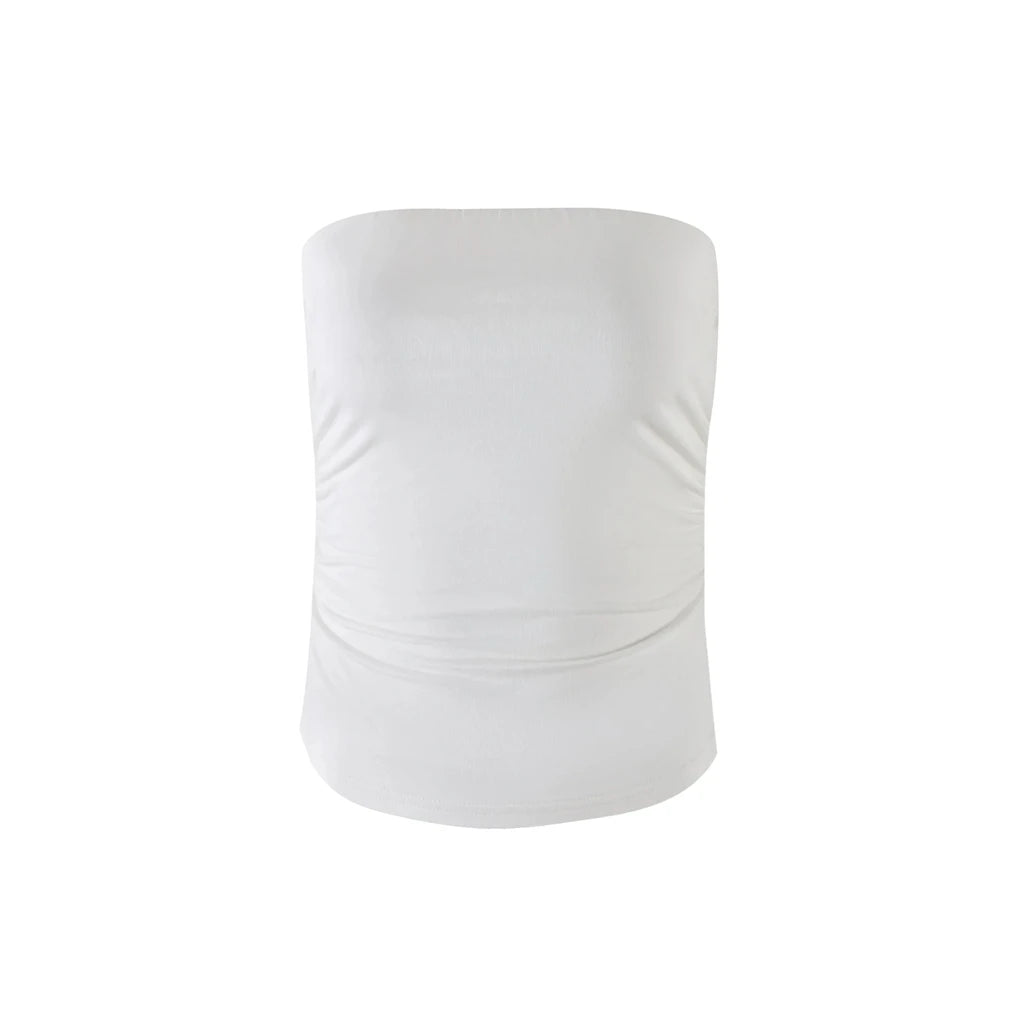 MQTIME - Women's Summer Strapless Bandeau Tops Stylish Solid Color Sheer See-Through Slim Fit Ruched Backless Crop Tube Vest