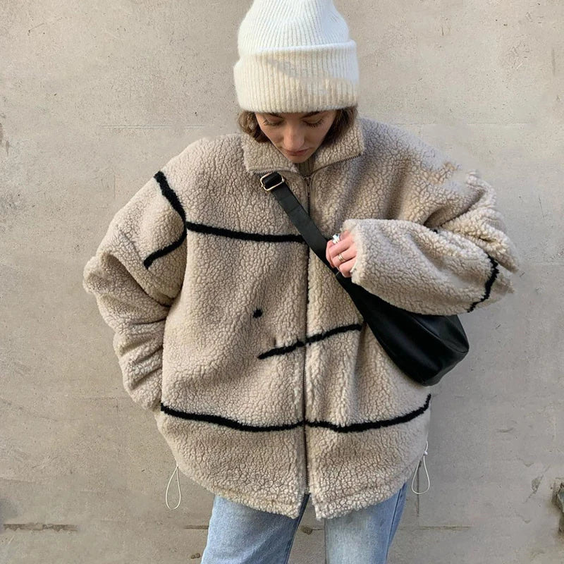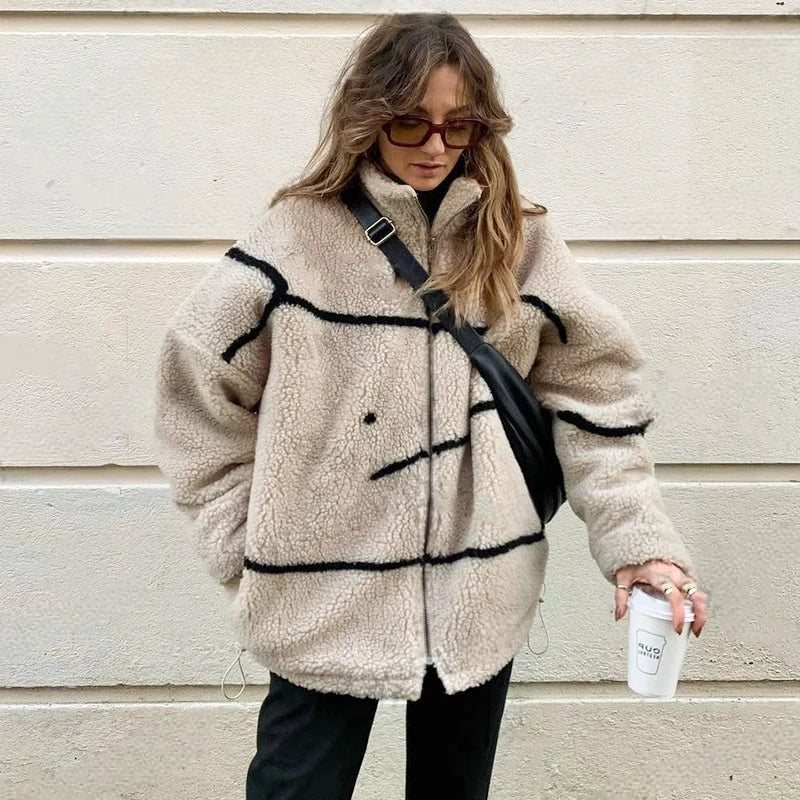 MQTIME - American retro khaki stand up collar lambhair jacket for women, trendy ins winter thick cotton jacket, versatile