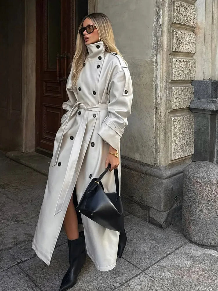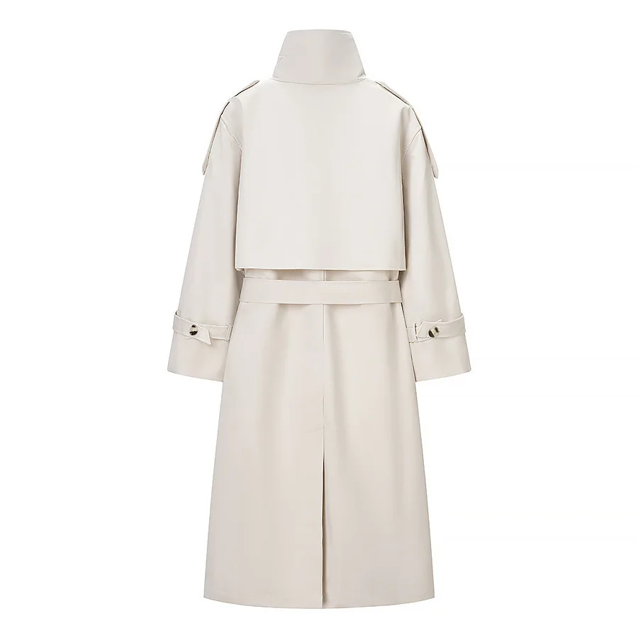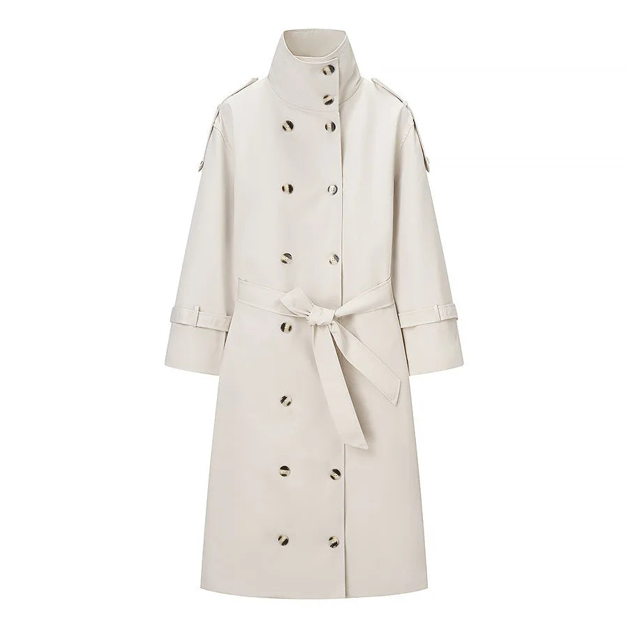 MQTIME - Autumn New Beige Lapel Long Trench Coats With Belt Fashion Double Breasted Loose Women Windbreaker Winter Female Overcoat