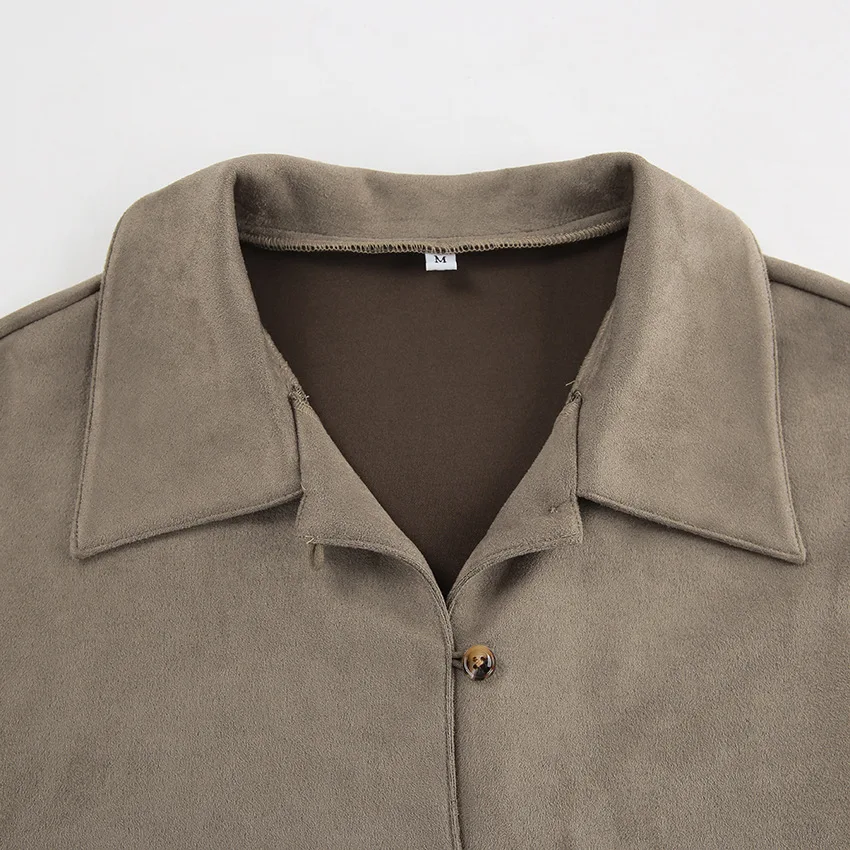 MQTIME - Vintage Brown Suede Shirt Fall-winter Small Loose Midi Cardigan Top Women