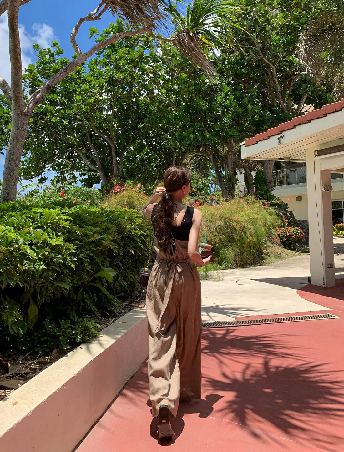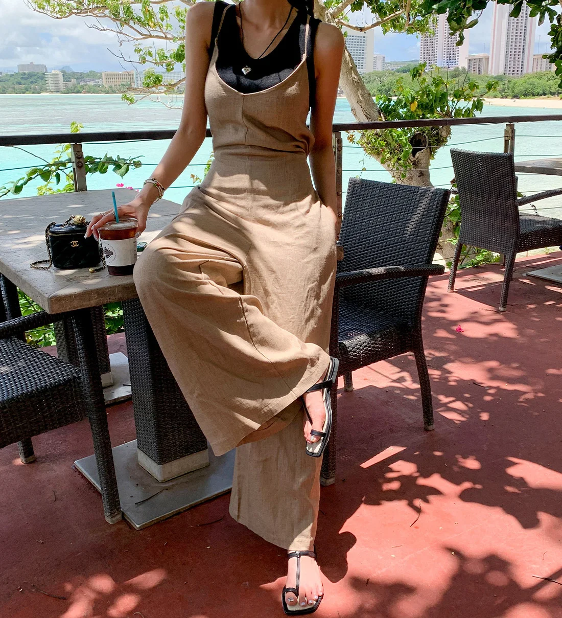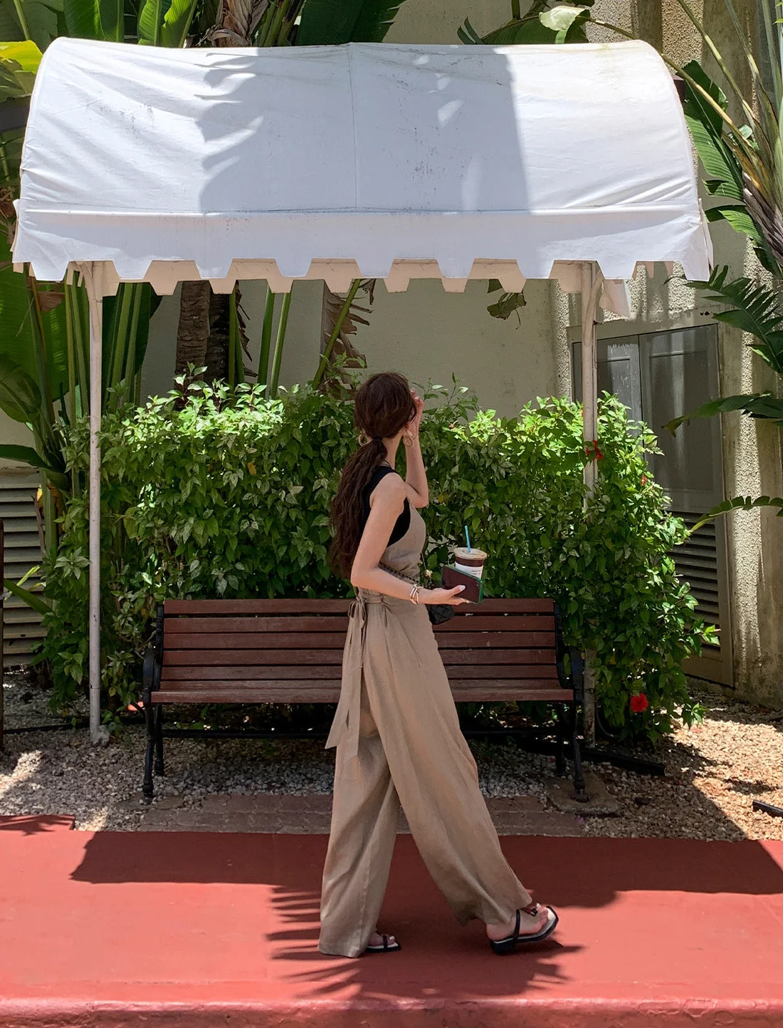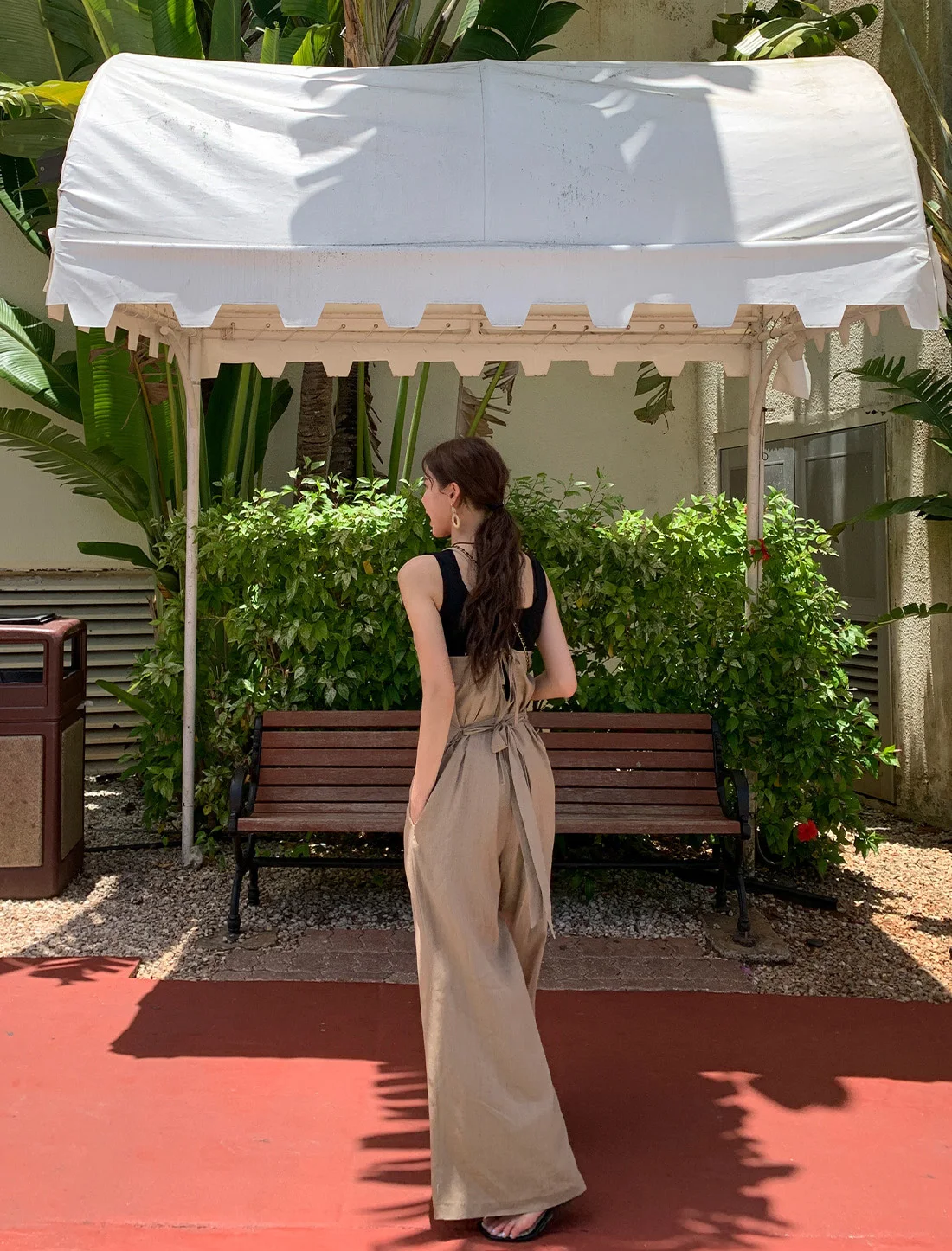 MQTIME - Korean Style Summer Female Jumpsuits Elegant Loose Cross Strap High Waist Backless Women Wide Legs Rompers Casual Lady Overalls