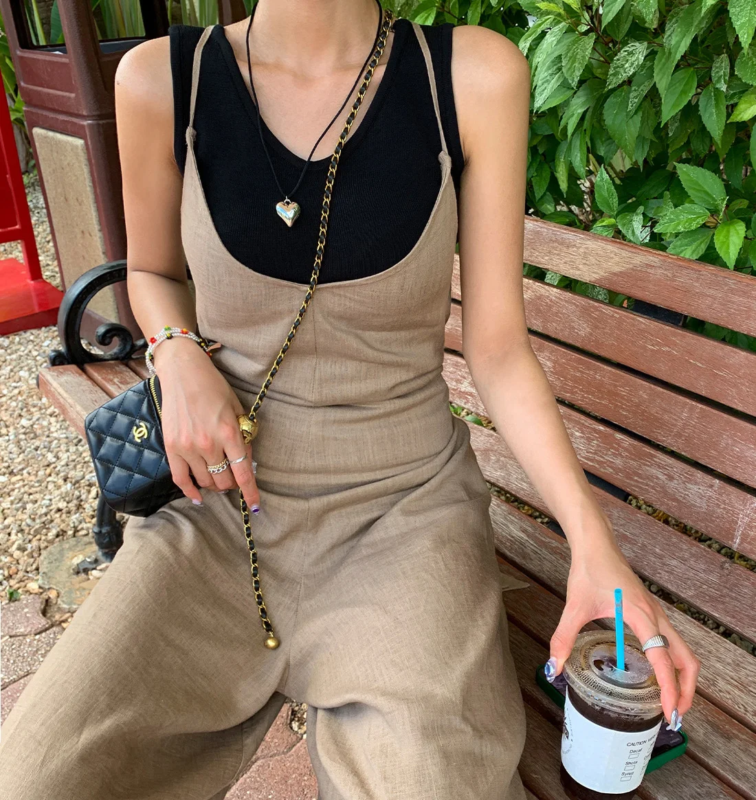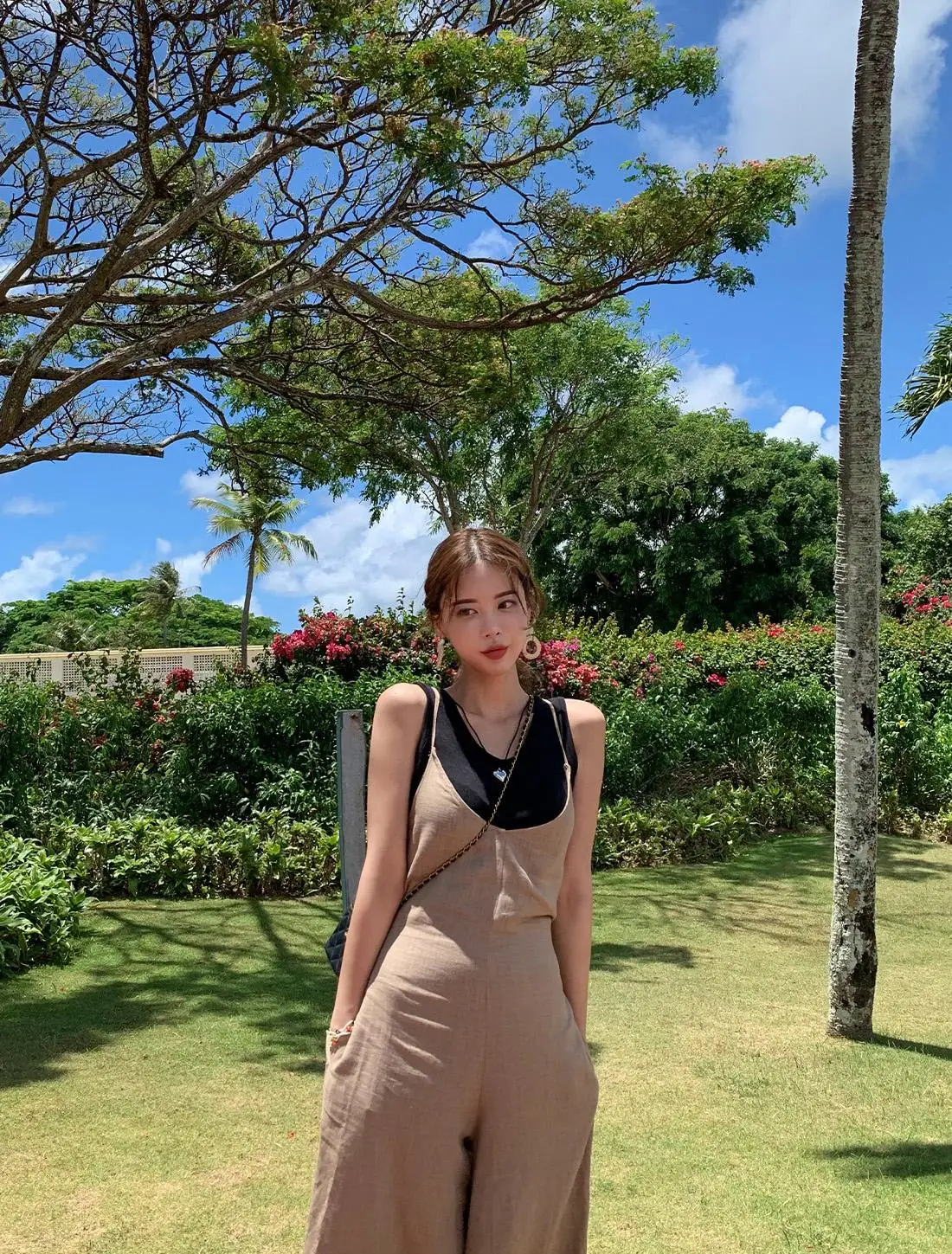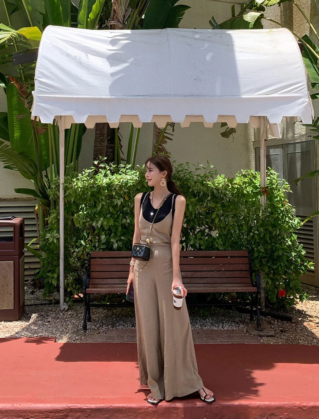 MQTIME - Korean Style Summer Female Jumpsuits Elegant Loose Cross Strap High Waist Backless Women Wide Legs Rompers Casual Lady Overalls