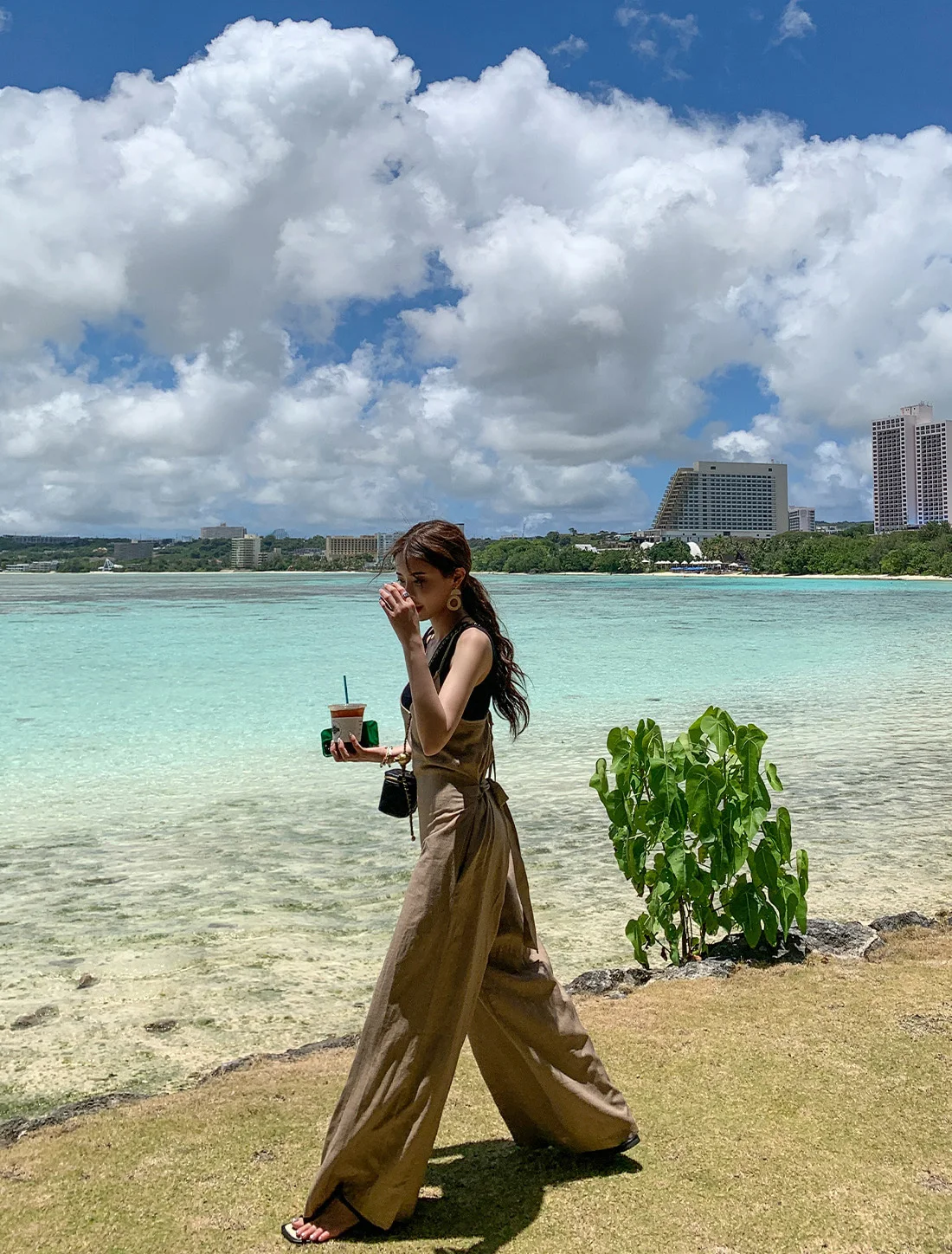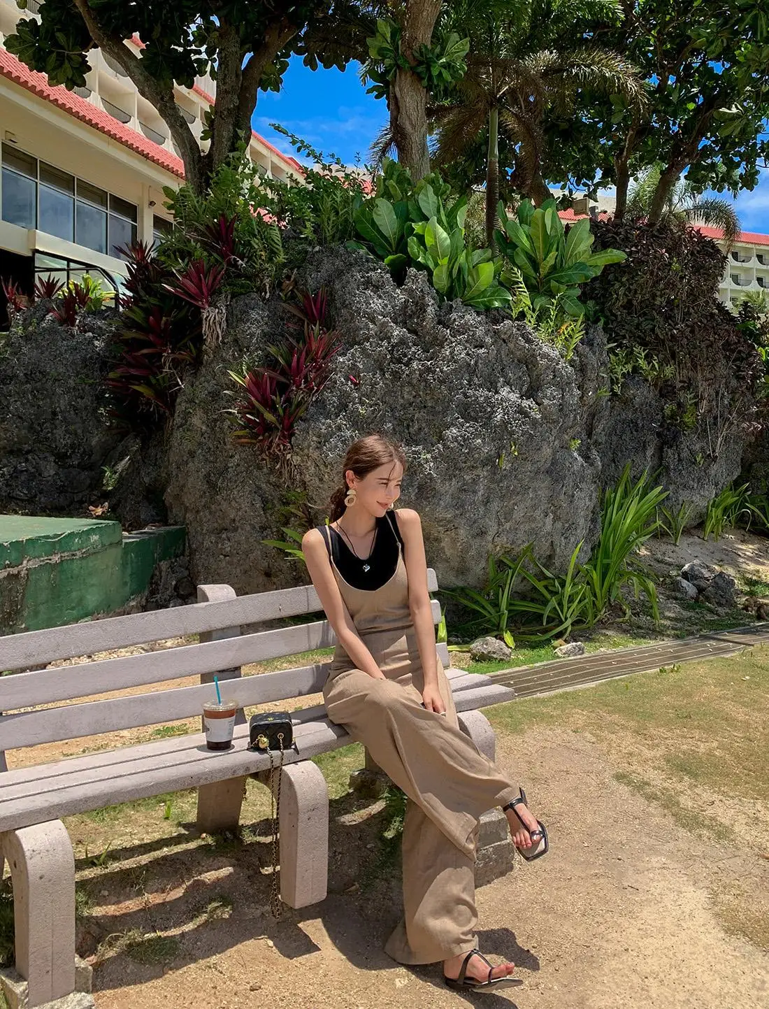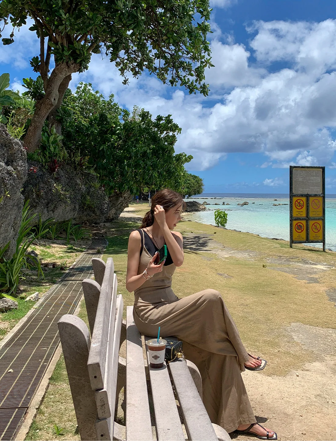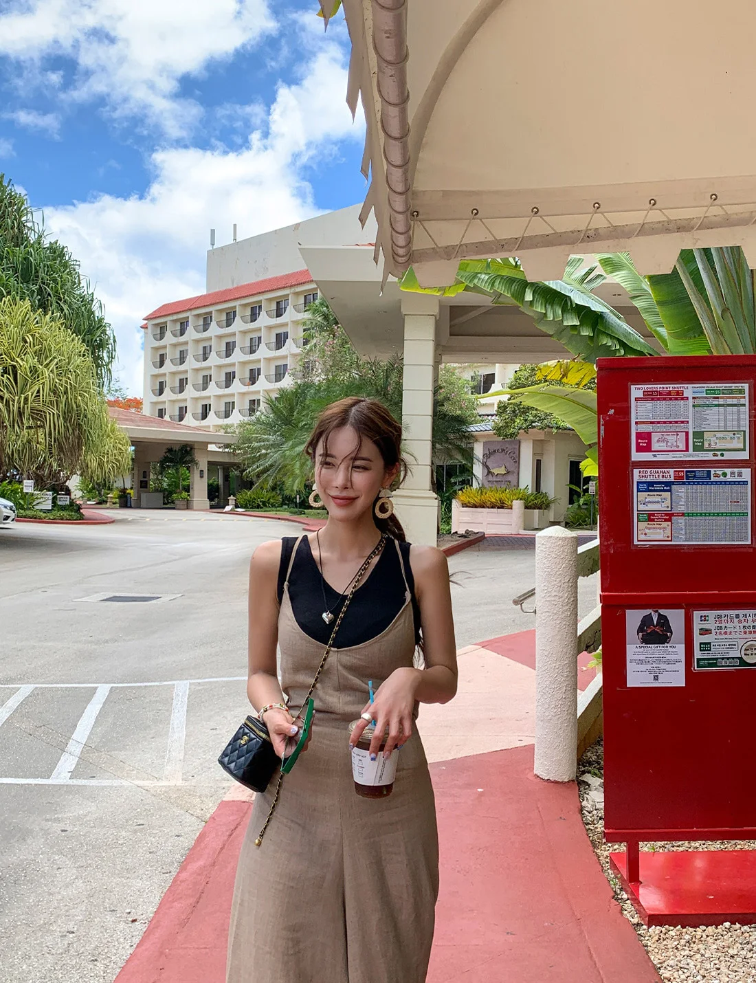 MQTIME - Korean Style Summer Female Jumpsuits Elegant Loose Cross Strap High Waist Backless Women Wide Legs Rompers Casual Lady Overalls