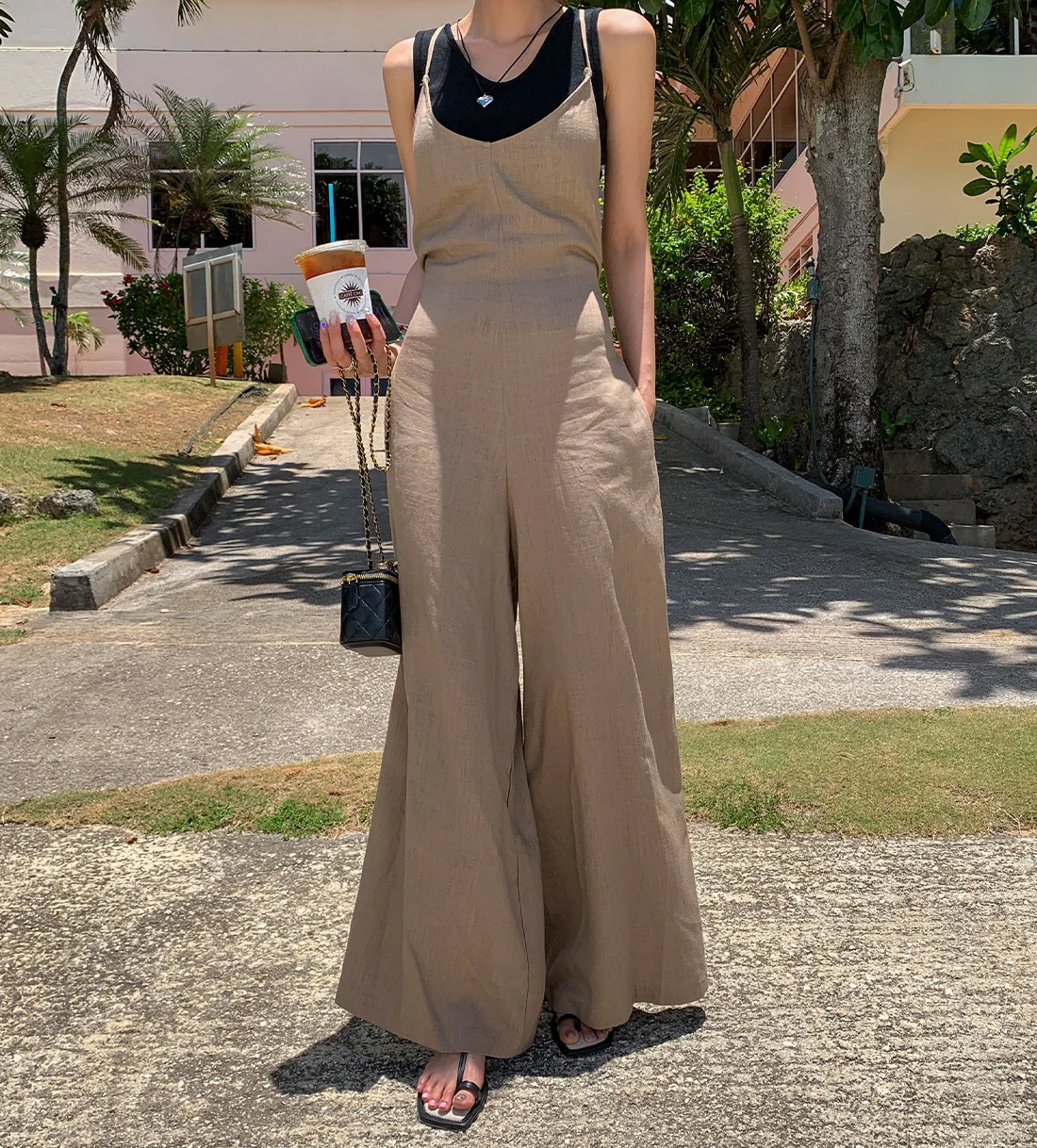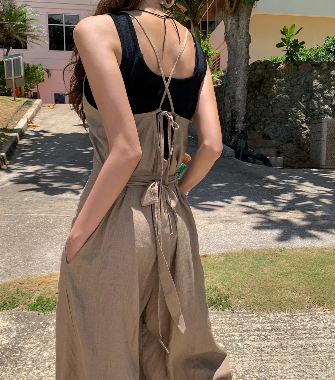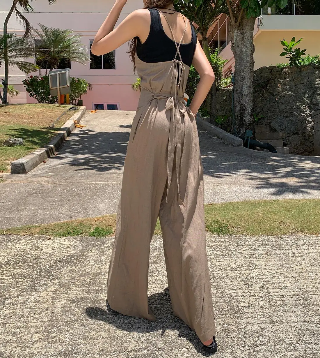MQTIME  -  Korean Style Summer Female Jumpsuits Elegant Loose Cross Strap High Waist Backless Women Wide Legs Rompers Casual Lady Overalls