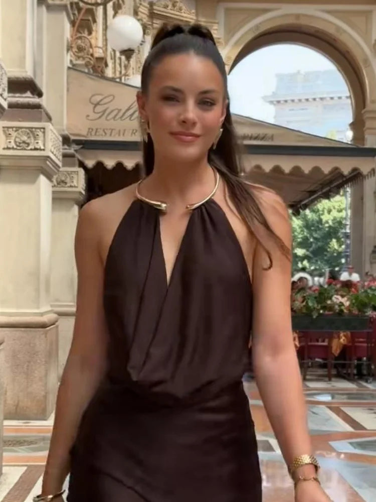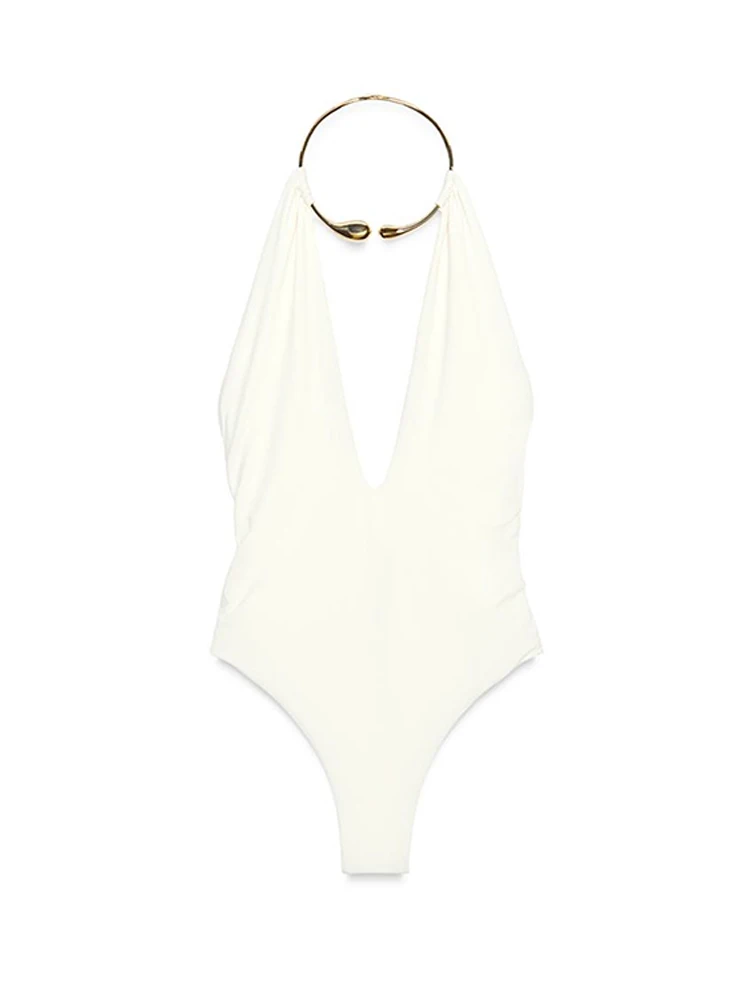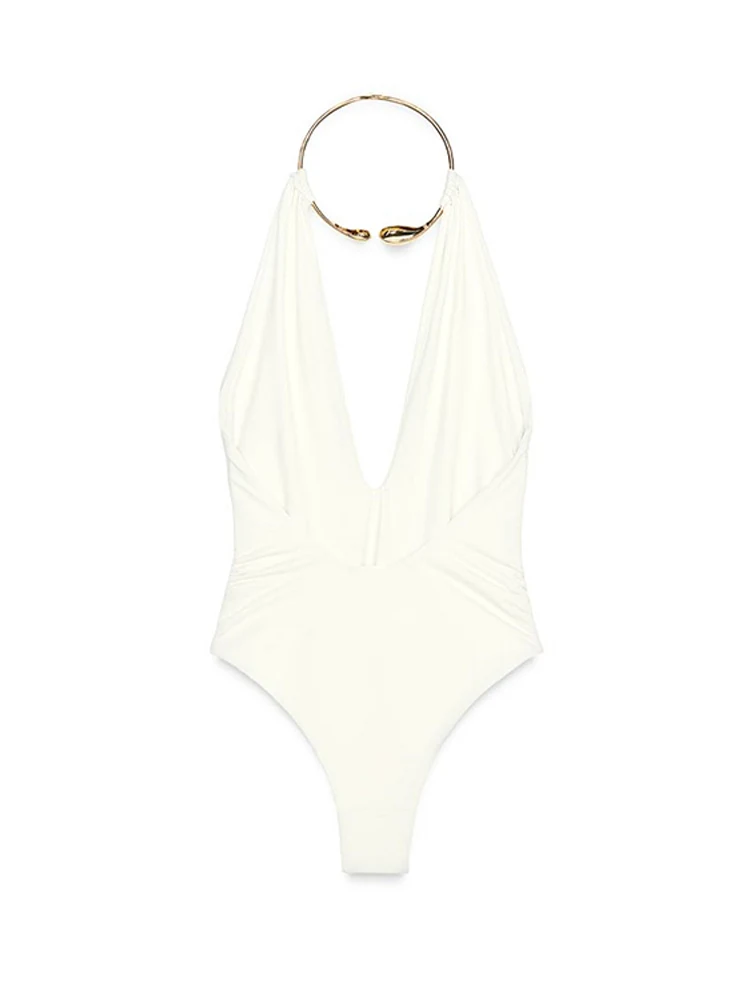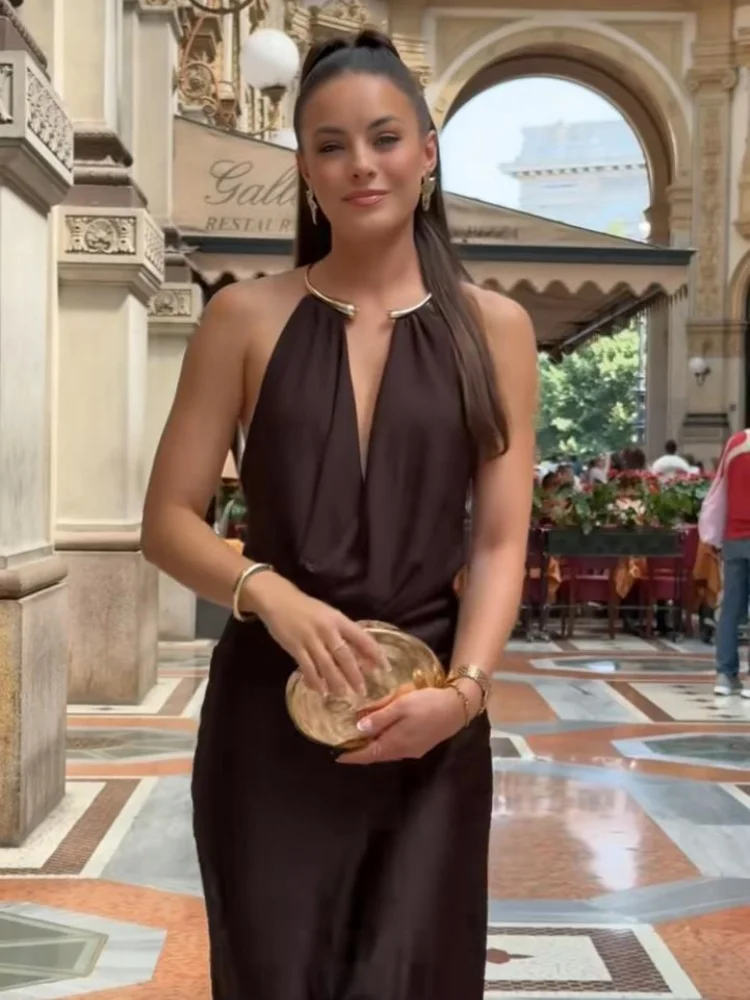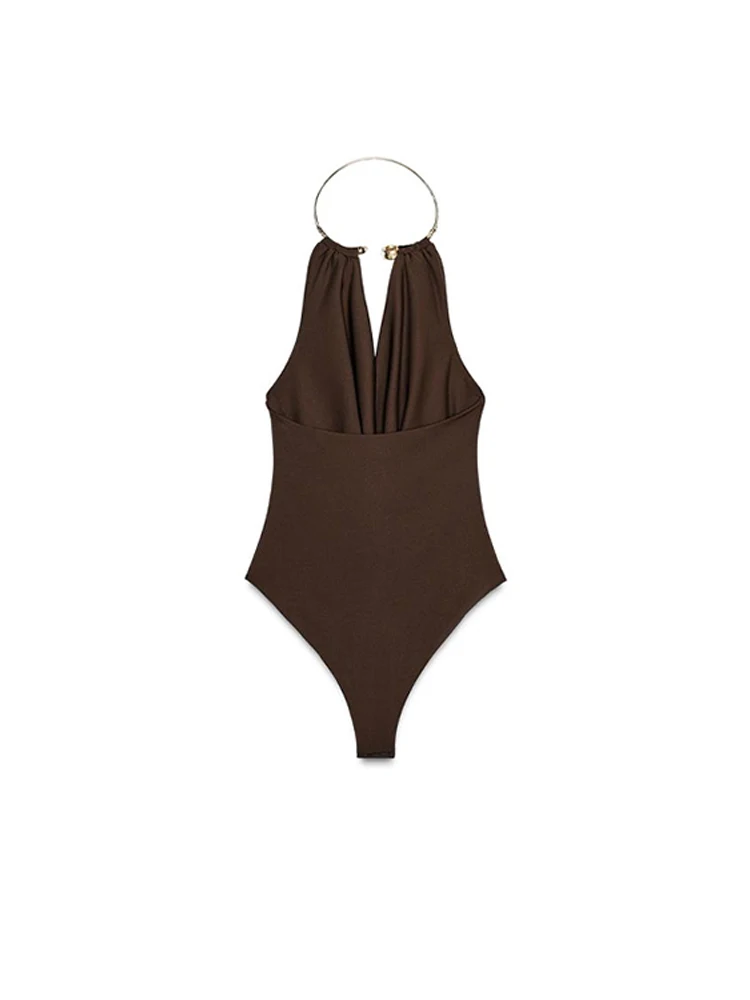MQTIME - Lady Jewelry Necklace Jumpsuit Golden Circular Hanging Neck Deep V Collar Sexy Backless Fashion Bodysuit Siamese Women's Clothes