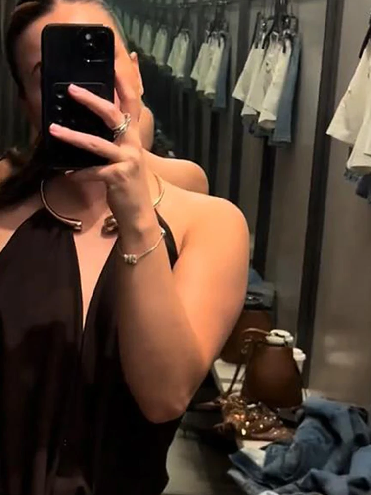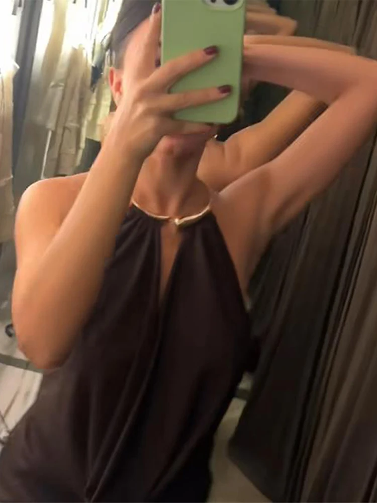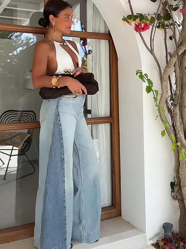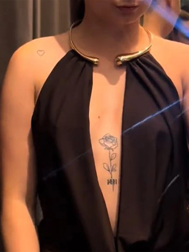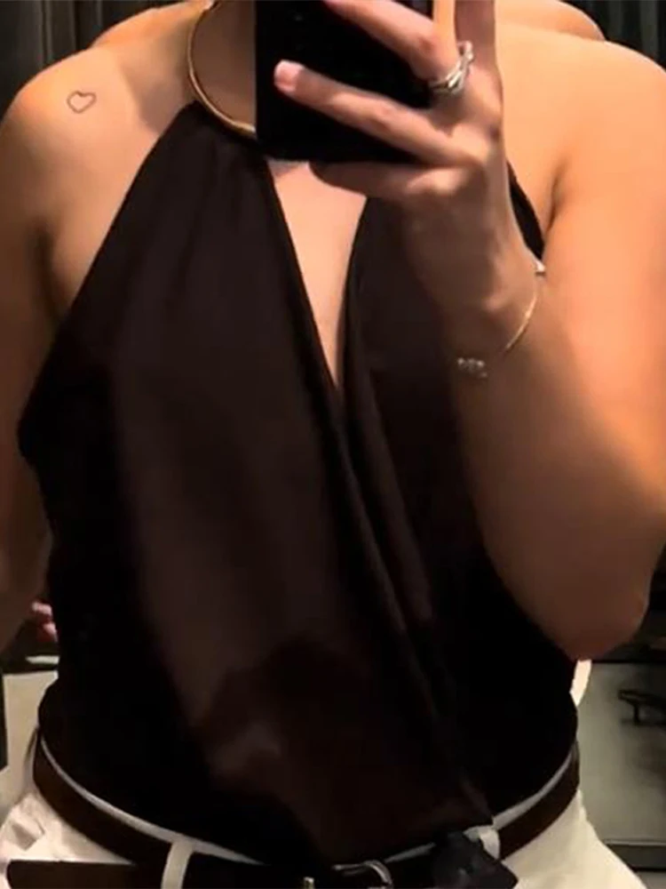 MQTIME - Lady Jewelry Necklace Jumpsuit Golden Circular Hanging Neck Deep V Collar Sexy Backless Fashion Bodysuit Siamese Women's Clothes