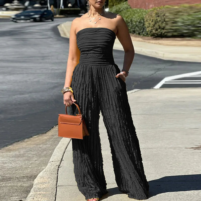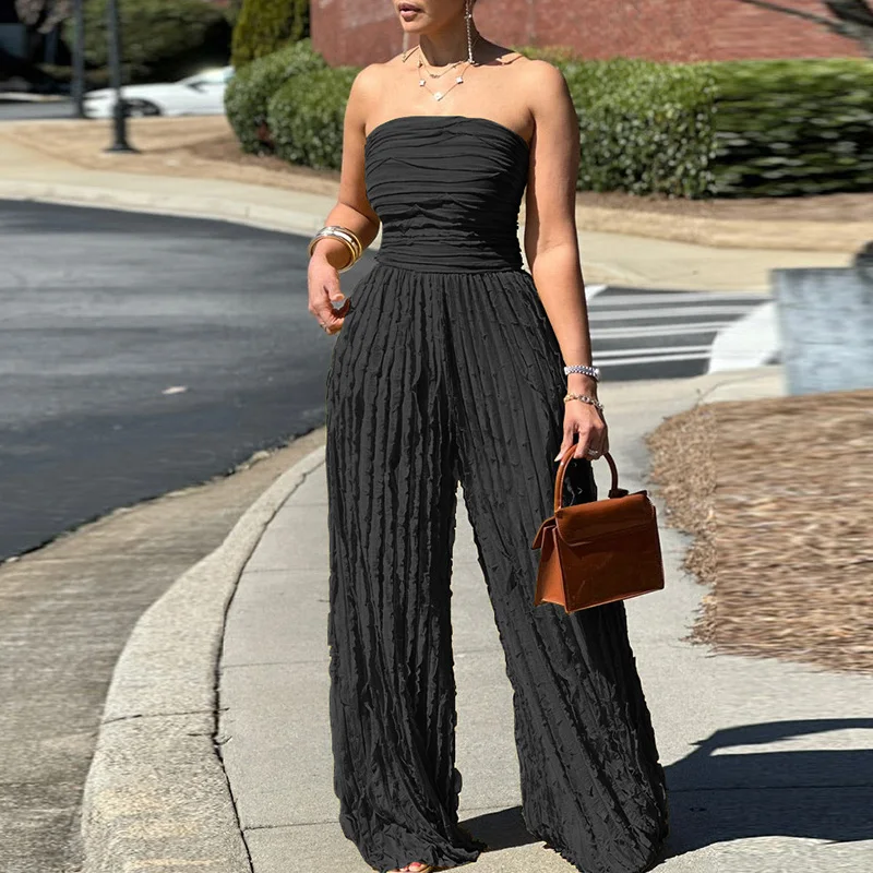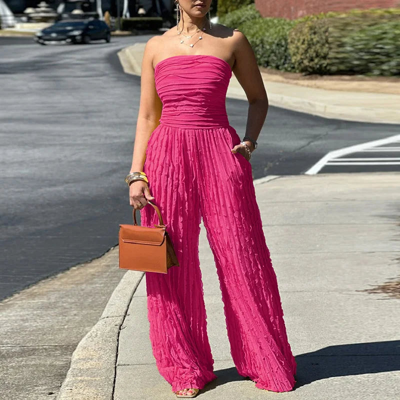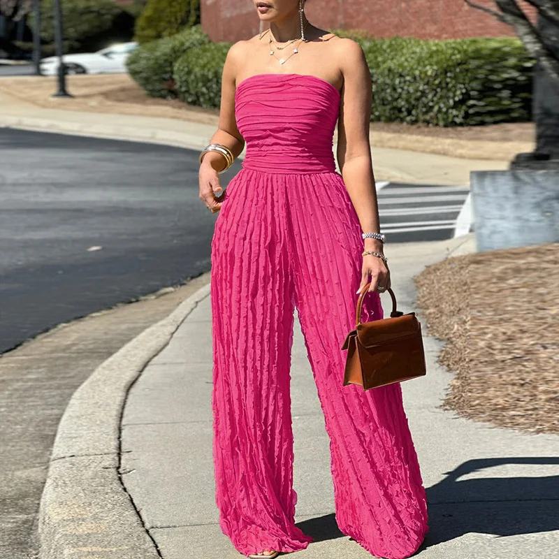 MQTIME - Sexy Sleeveless Wide Leg Playsuits Daily Casual Ruched Pocket Women's Rompers New Summer Pure Color High Waisted Tube Jumpsuits