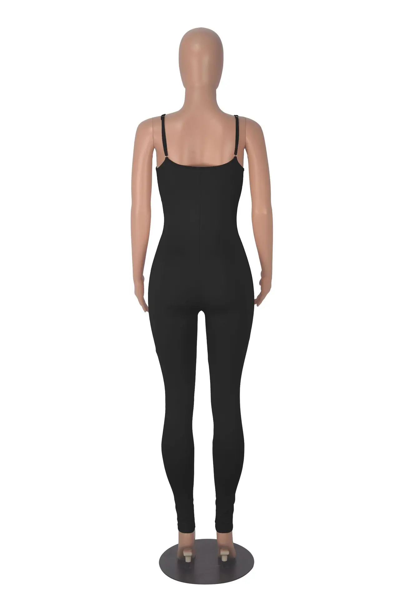 MQTIME - Spaghetti Strap Low Cut Black Skinny Solid Stretchy Summer Jumpsuits Backless Streetwear One Piece Romper For Women