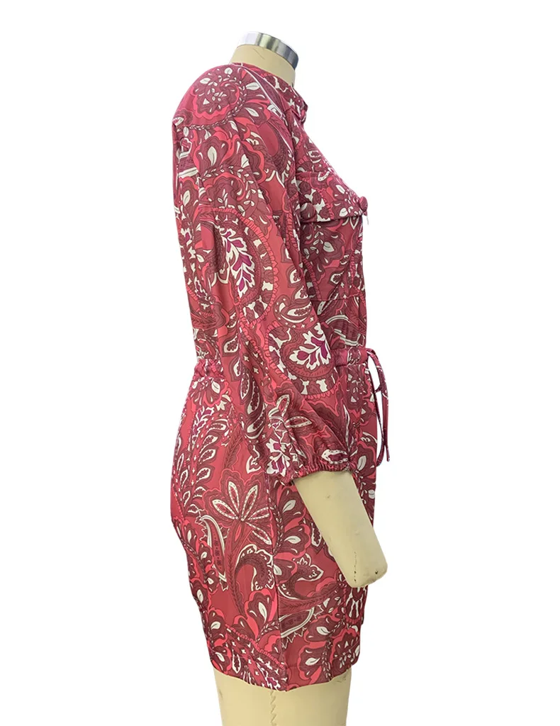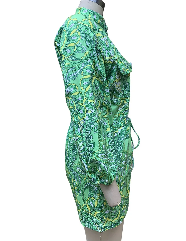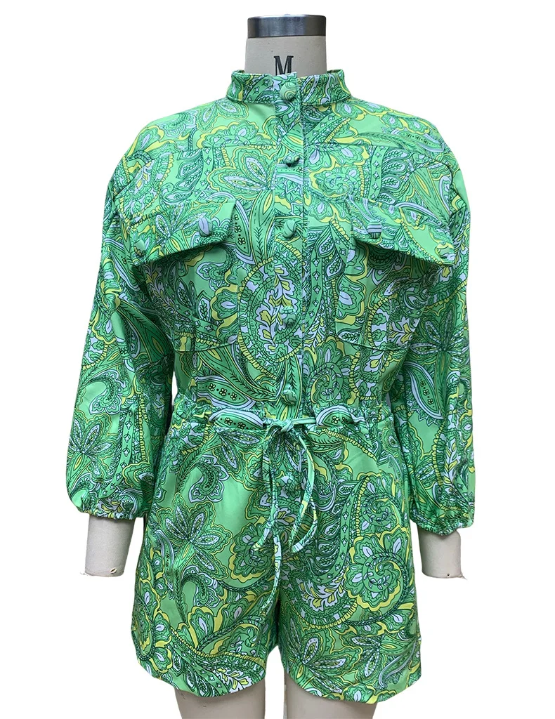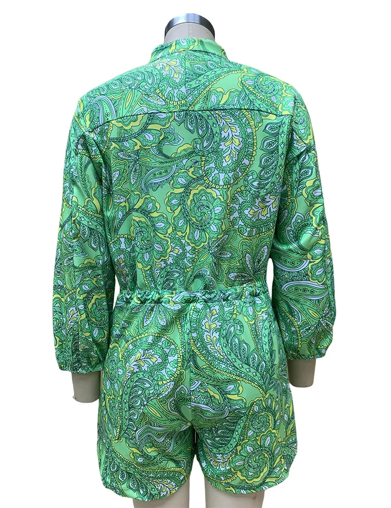 MQTIME  -  Women Summer Long Sleeve Playsuit with Waist Elastic Band Casual Stand Collar Pocket Loose Wide Leg Short Jumpsuit